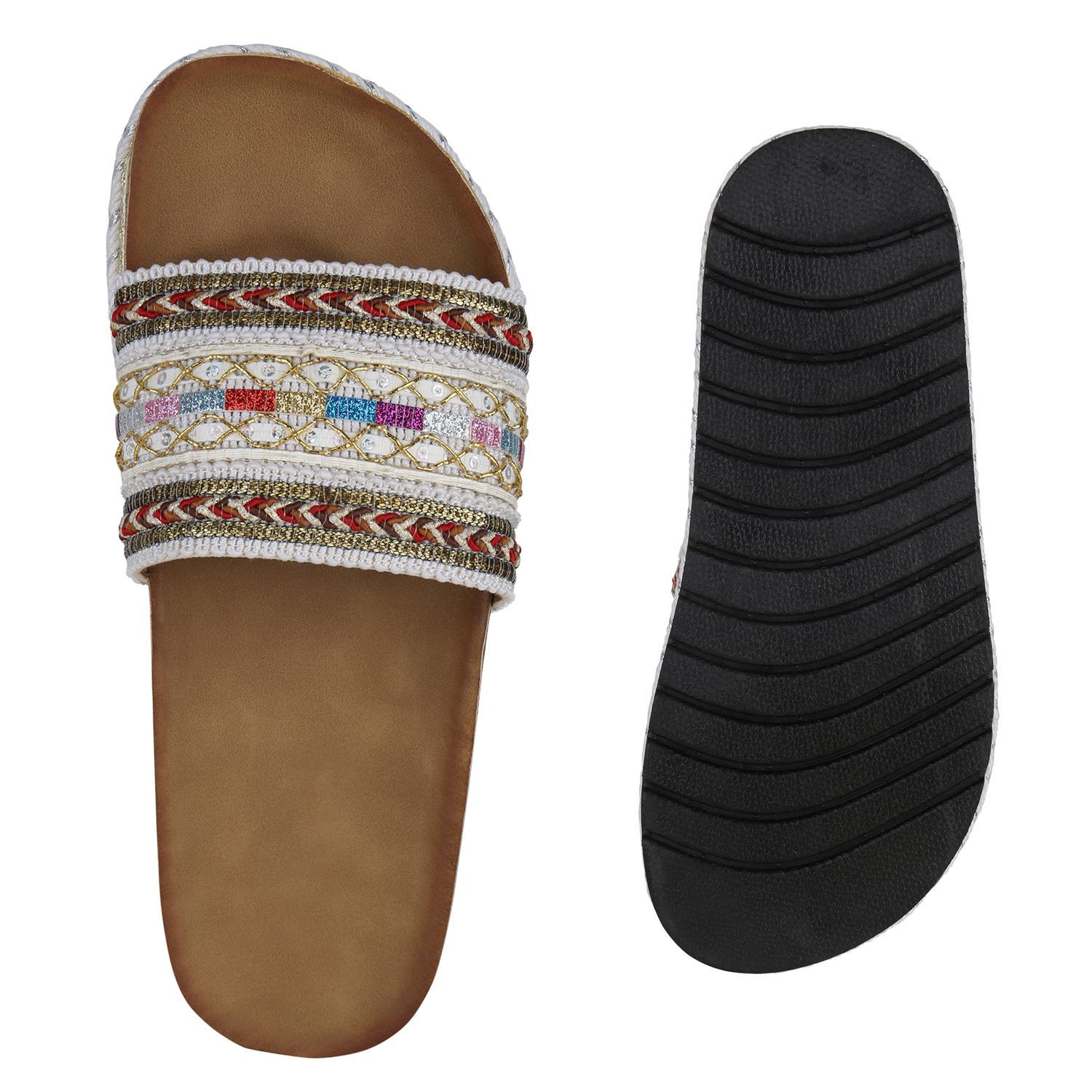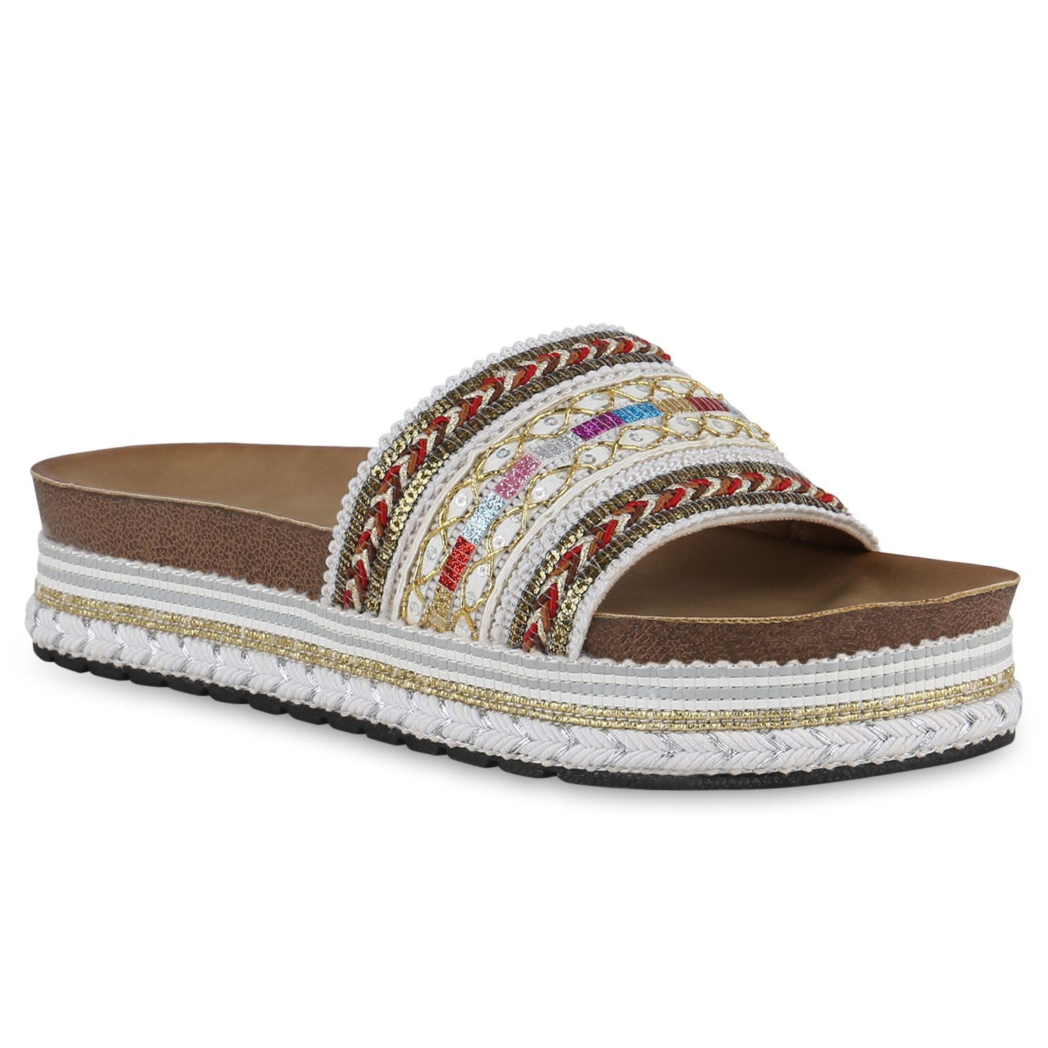 • VAN HILL Damen Pantoletten Sandalen Stickereien Schuhe 841136