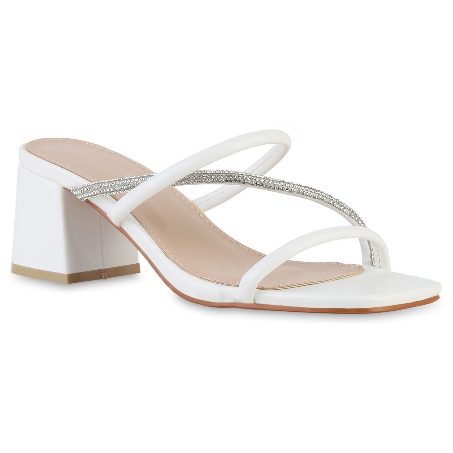 VAN HILL Damen Pantoletten Sandaletten Strass Blockabsatz Freizeit Schuhe 841540