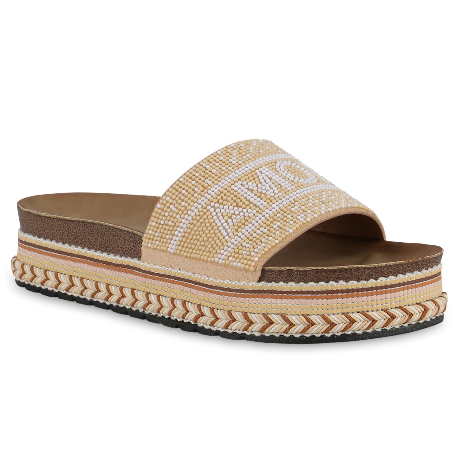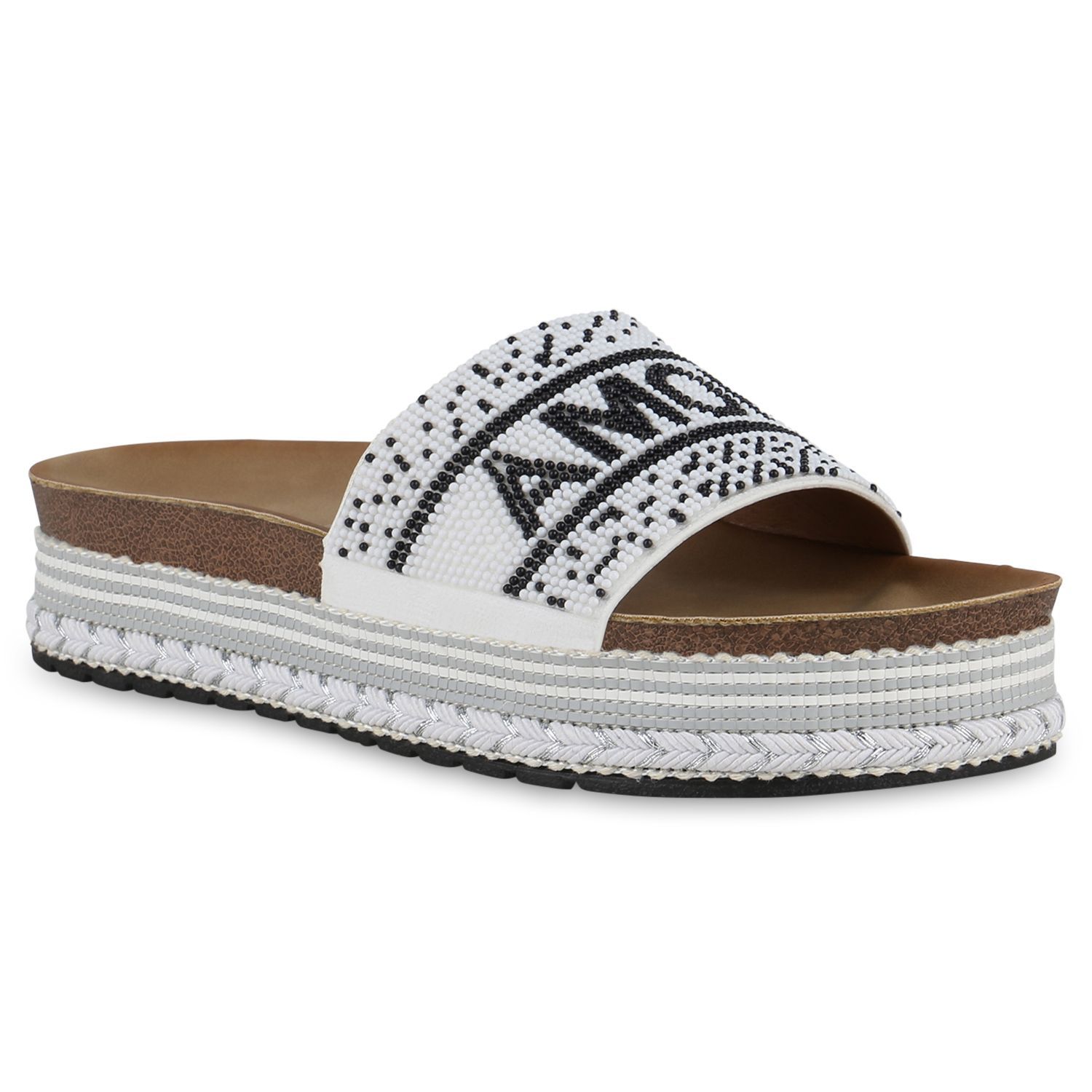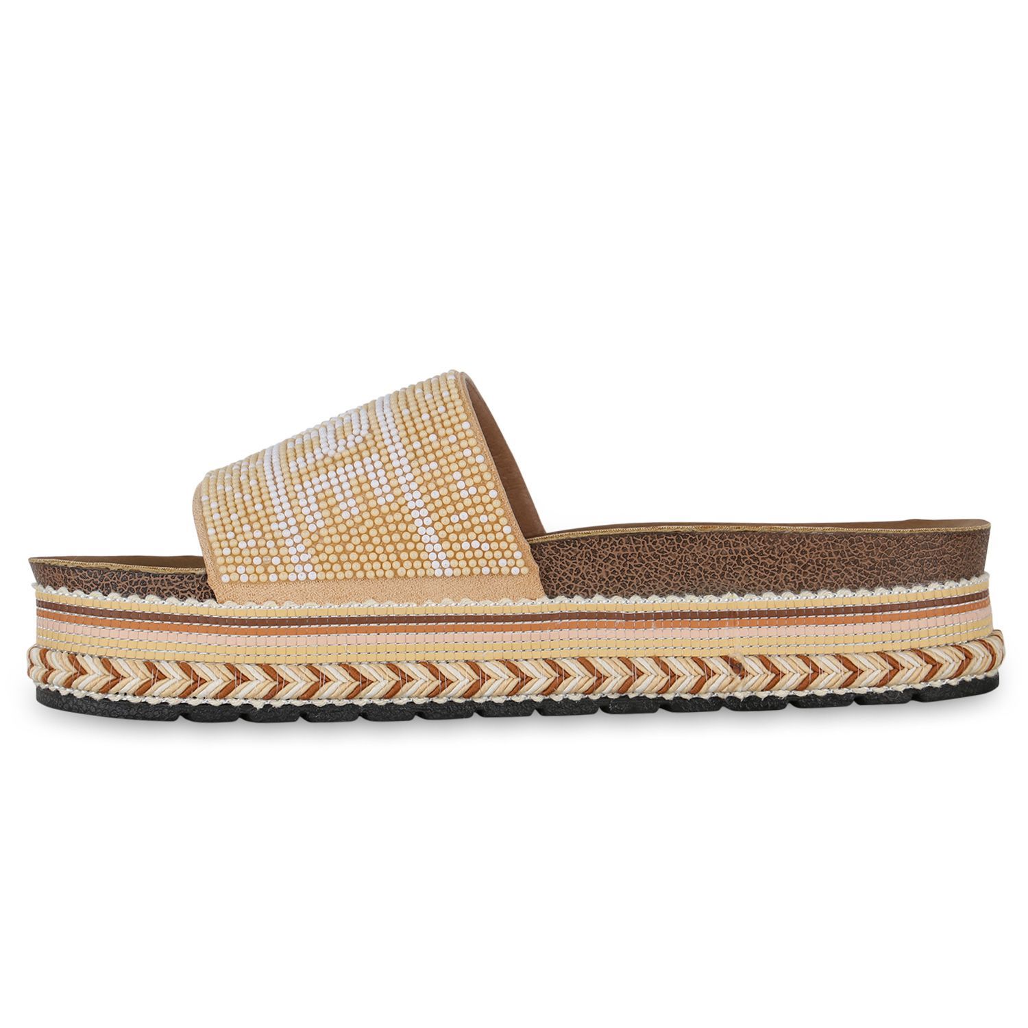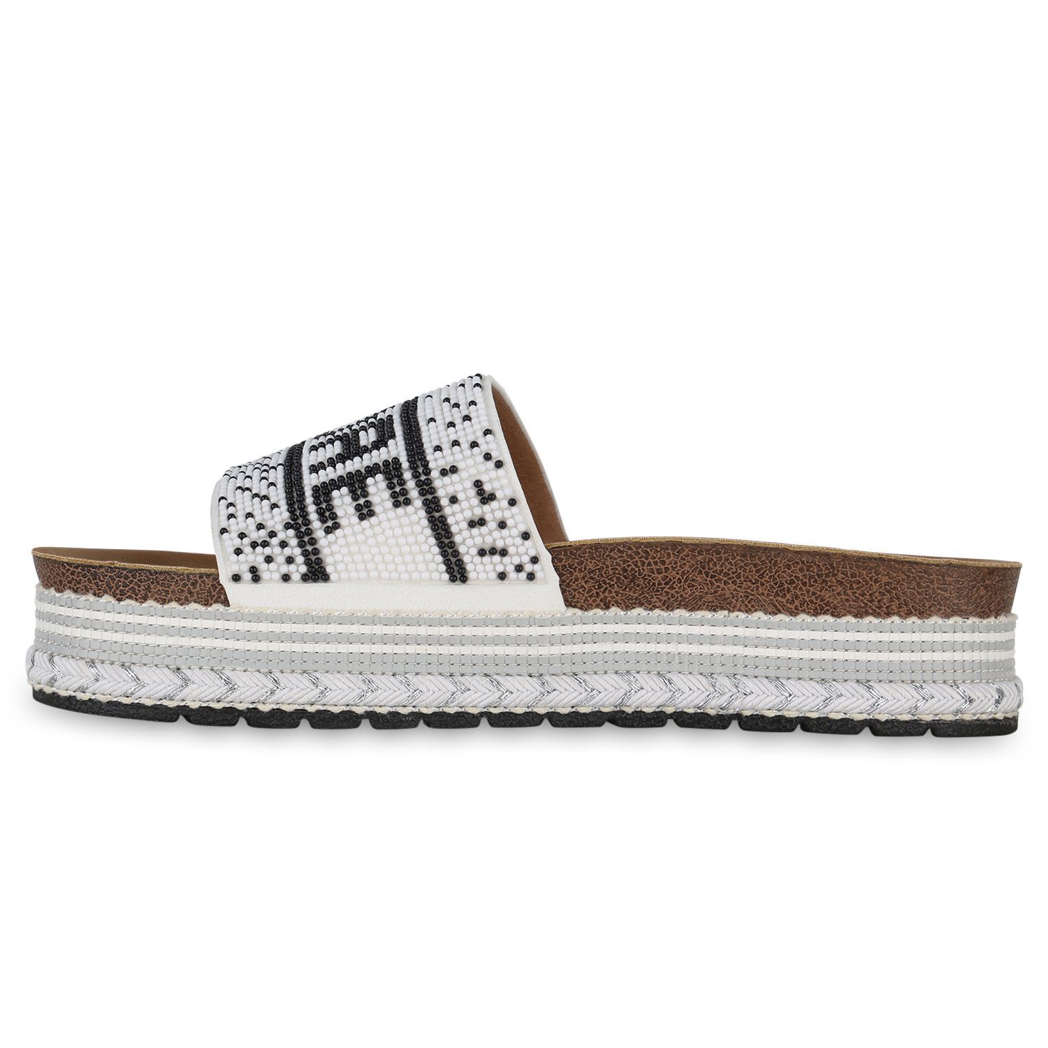 VAN HILL Damen Pantoletten Sandaletten Zierperlen Prints Plateau-Schuhe 841097