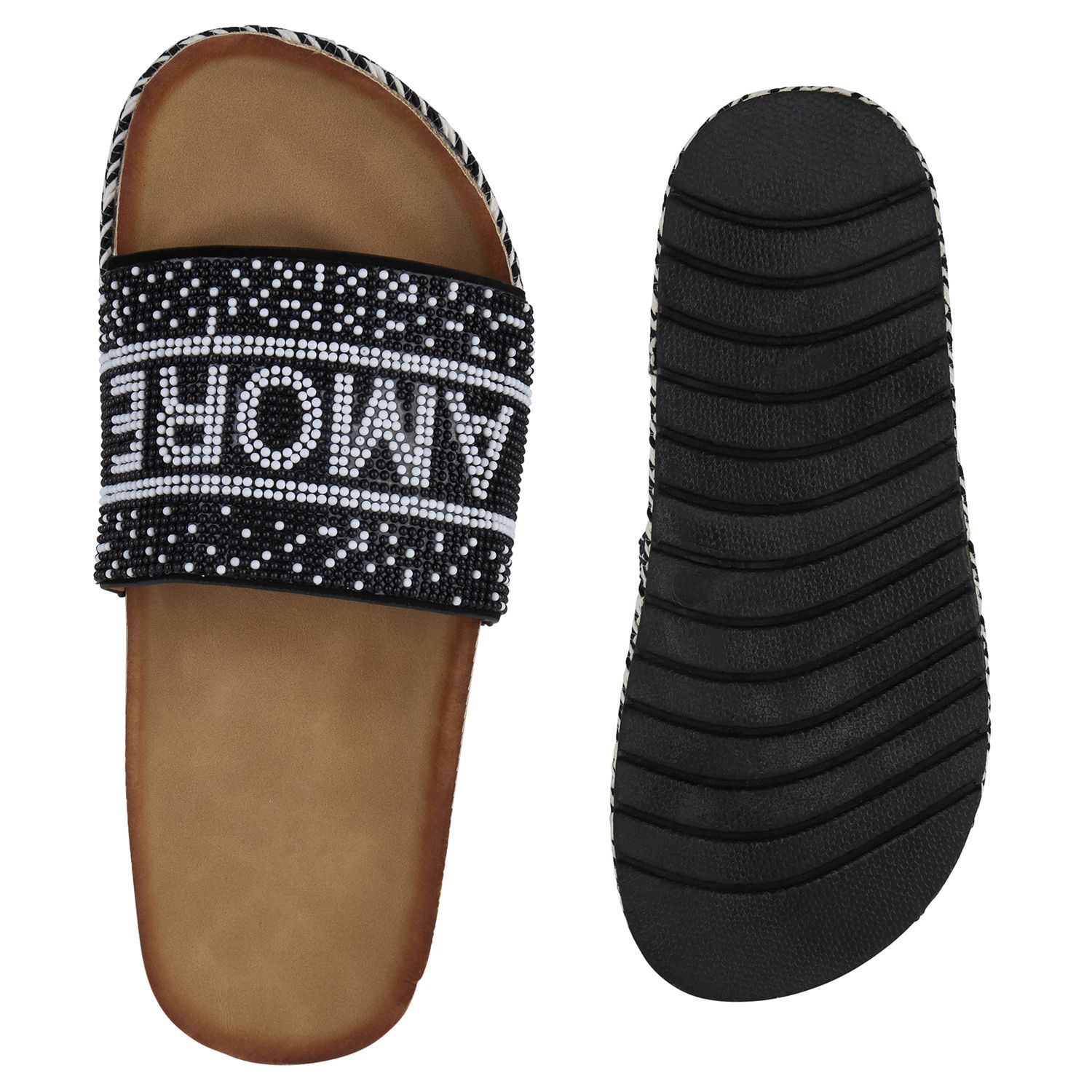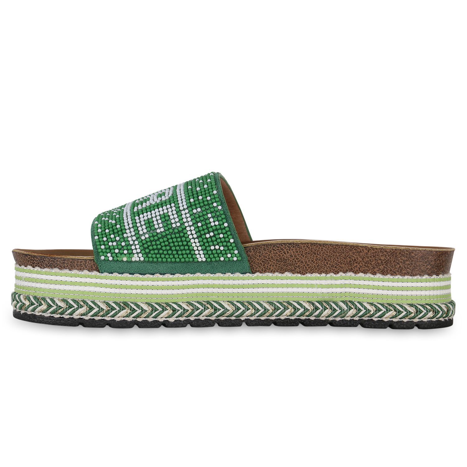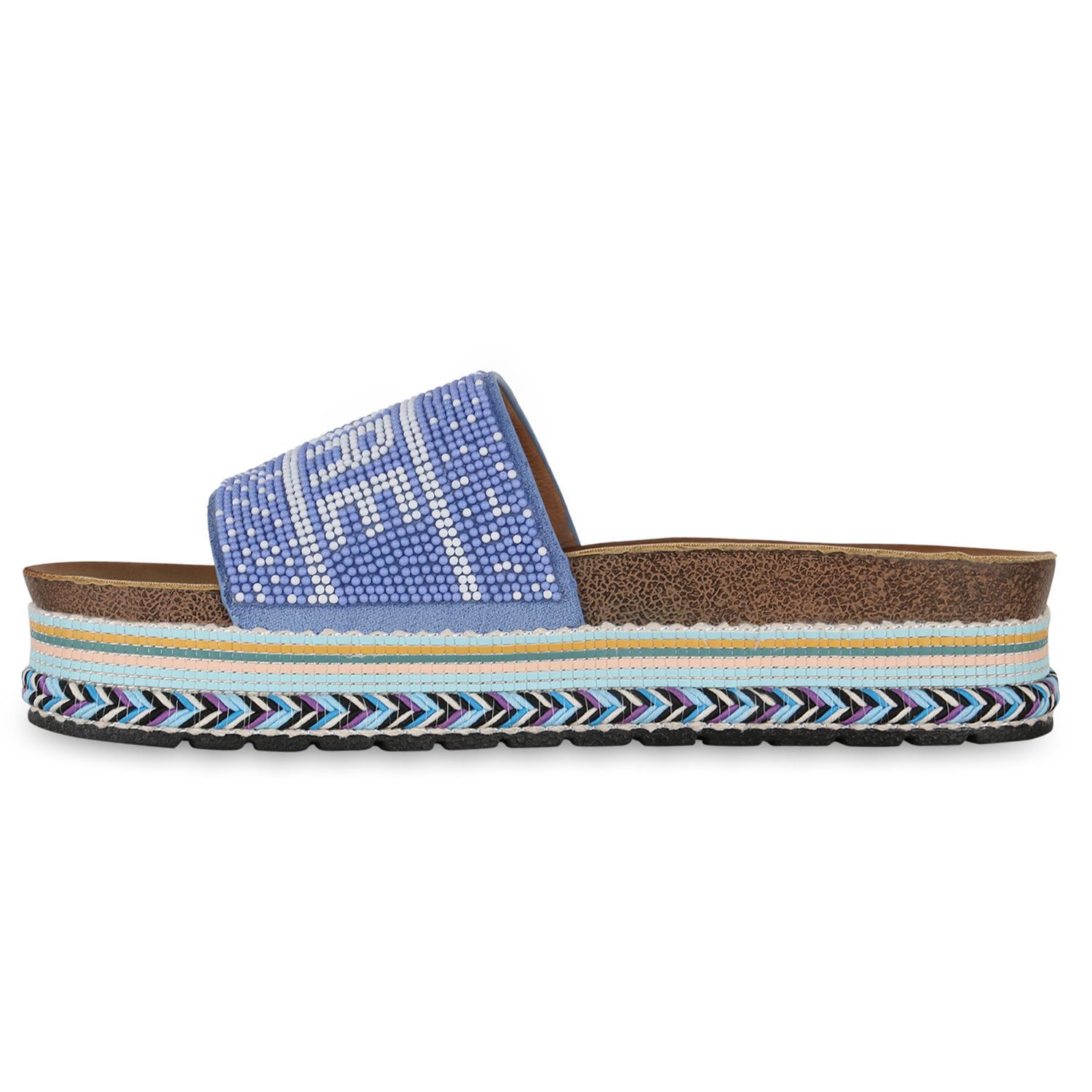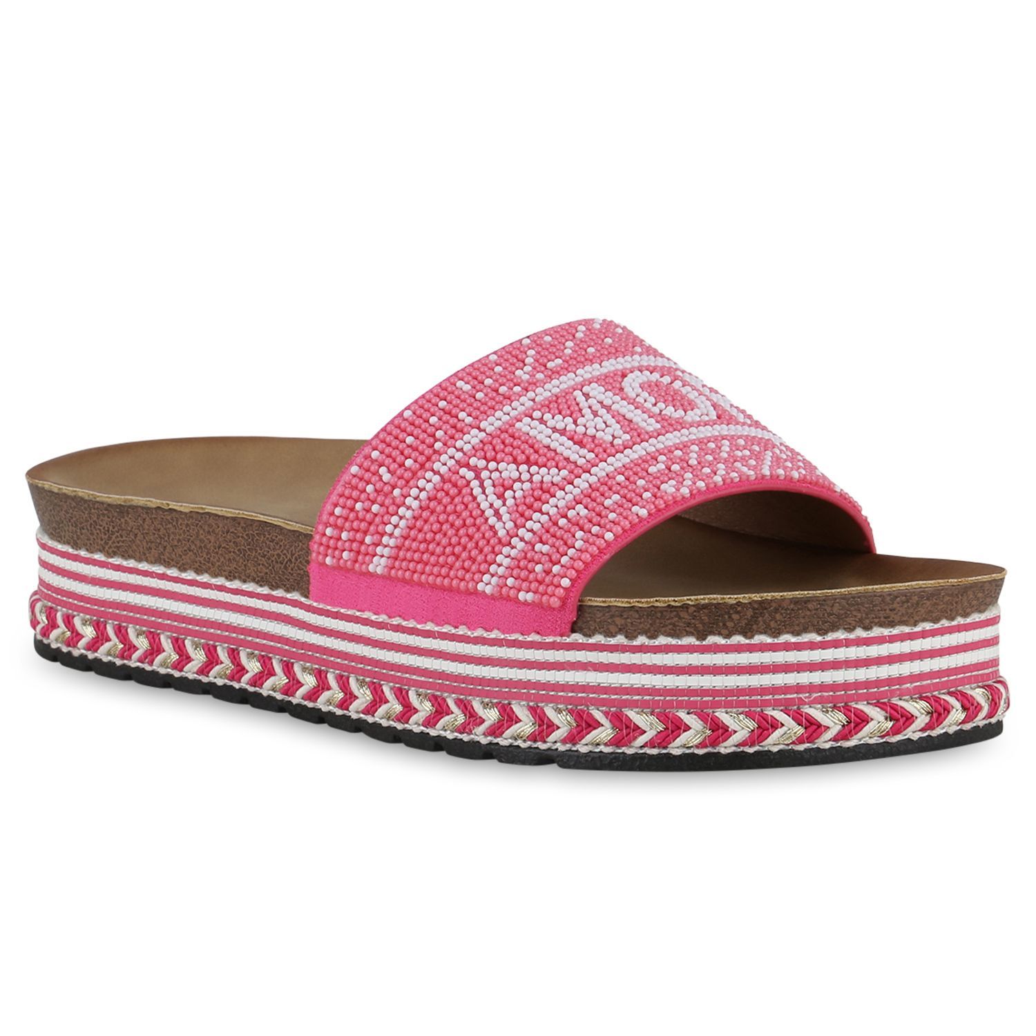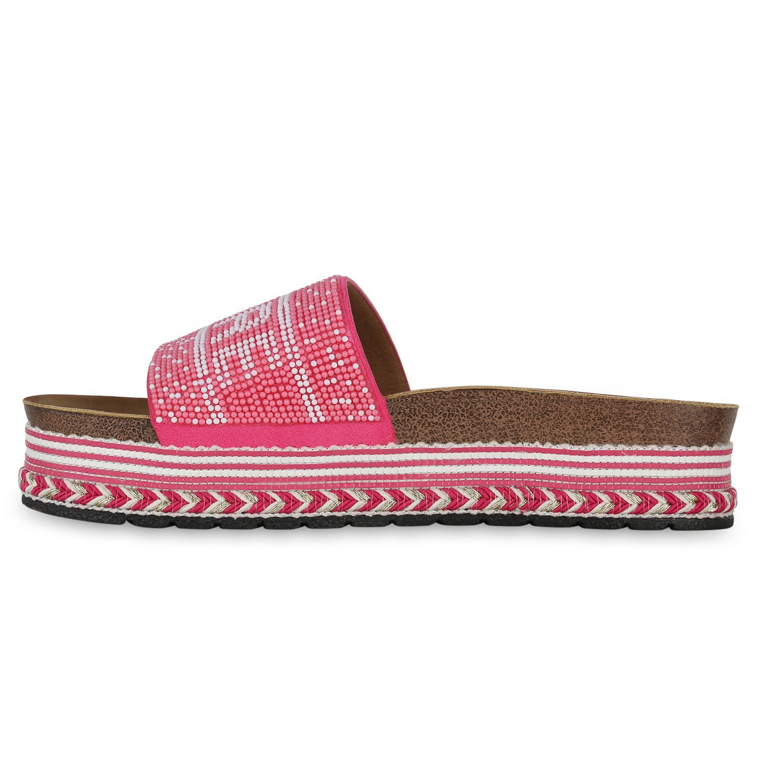 VAN HILL Damen Pantoletten Sandaletten Zierperlen Prints Plateau-Schuhe 841097