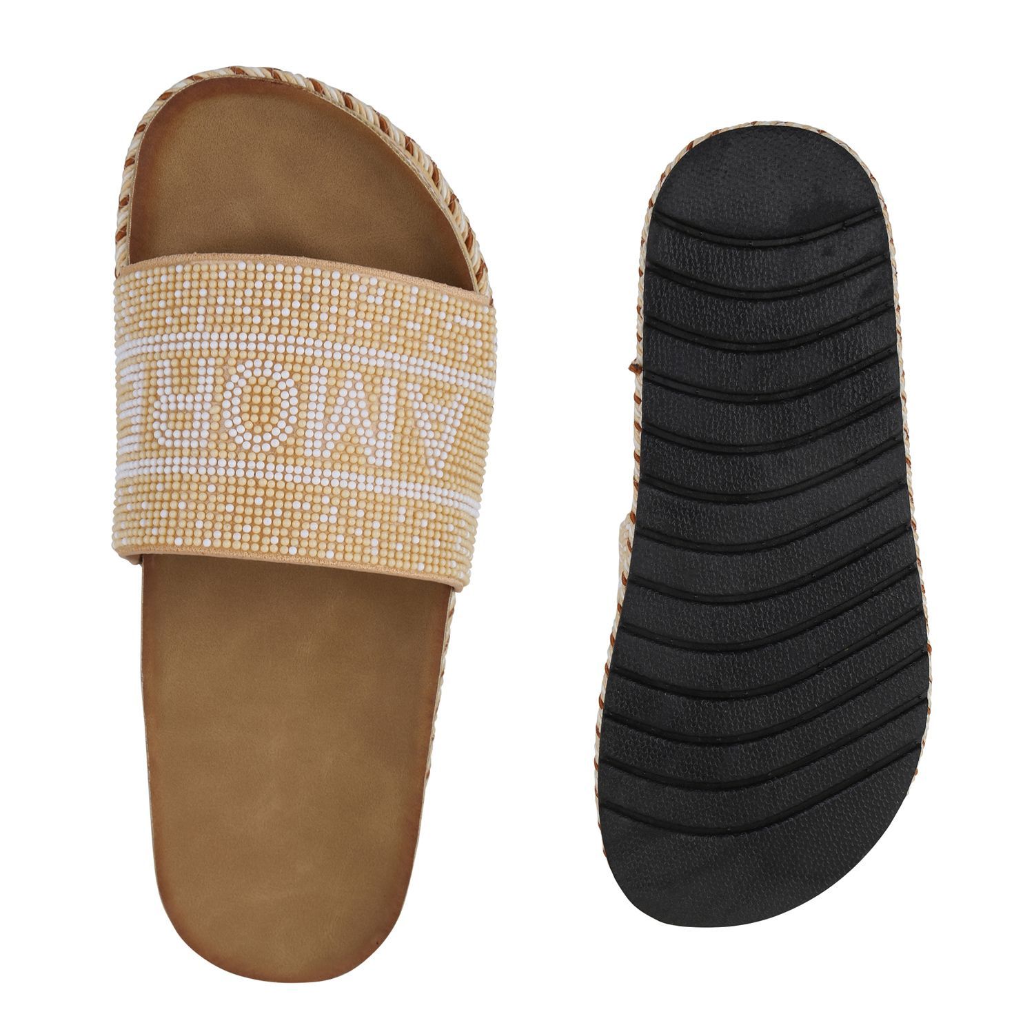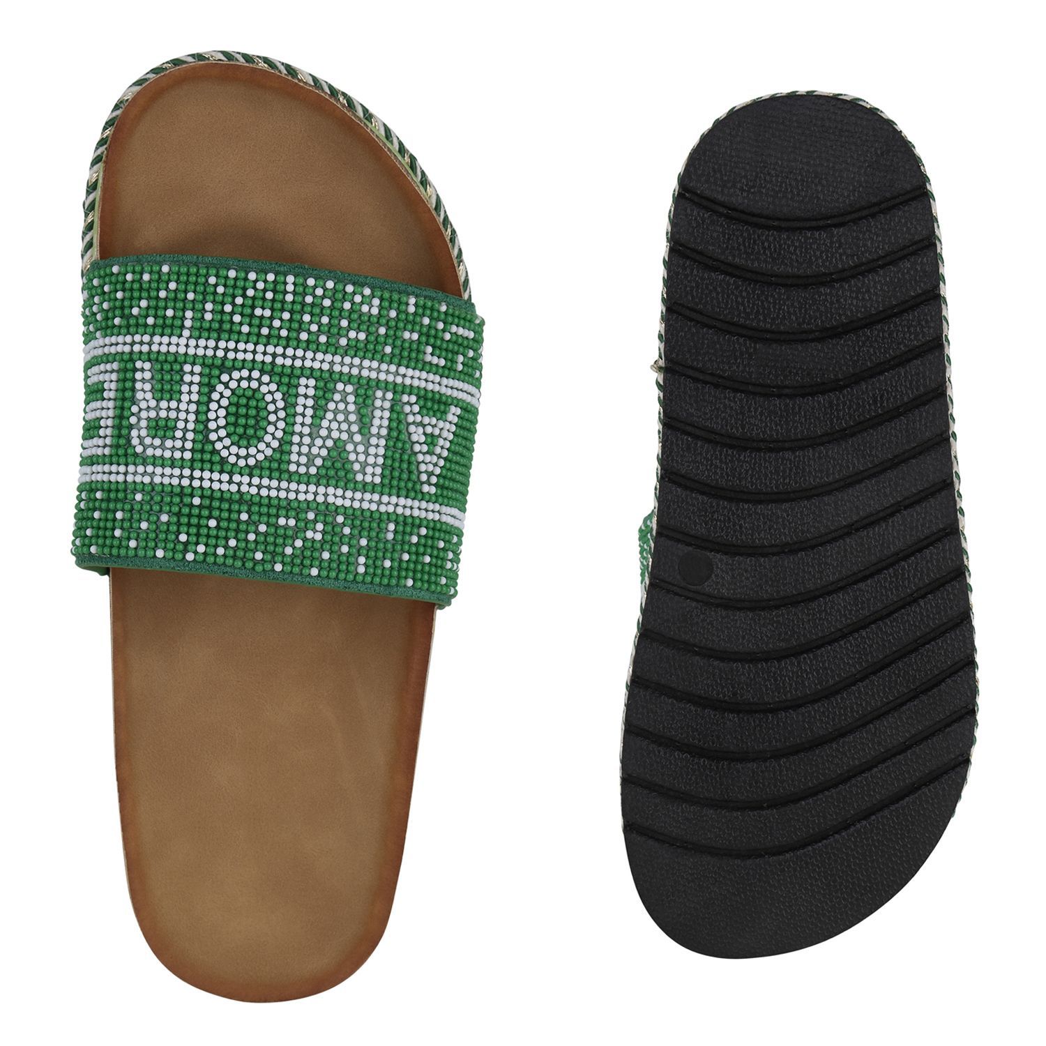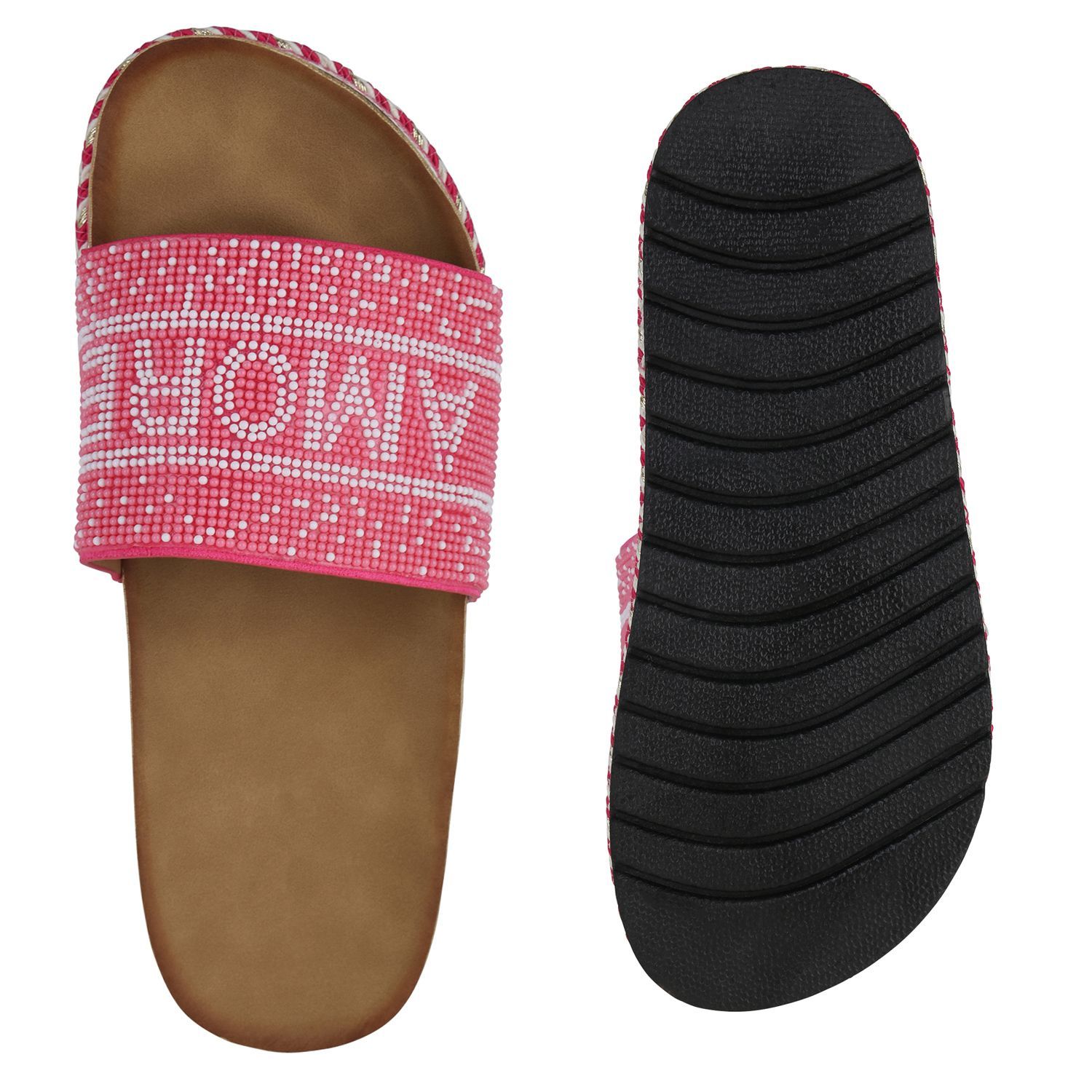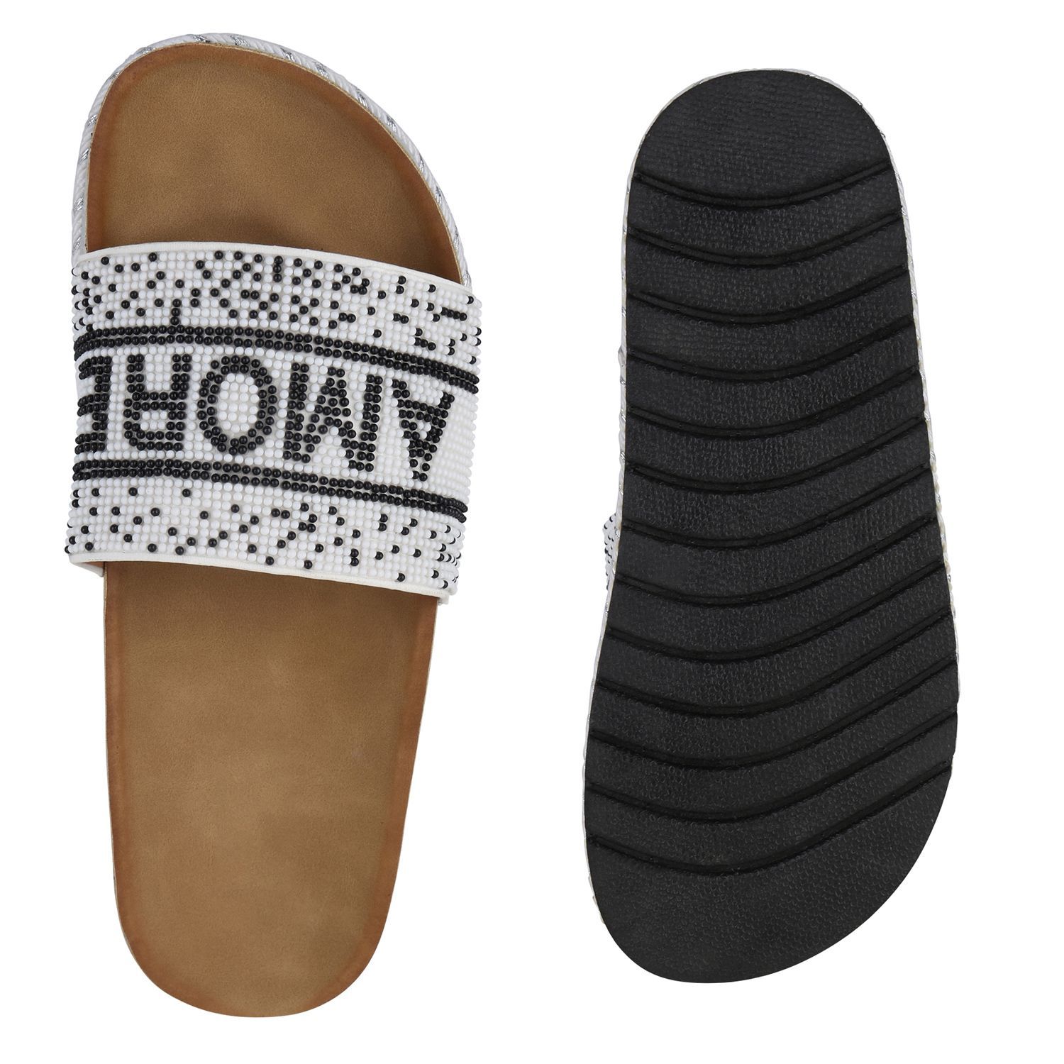 VAN HILL Damen Pantoletten Sandaletten Zierperlen Prints Plateau-Schuhe 841097