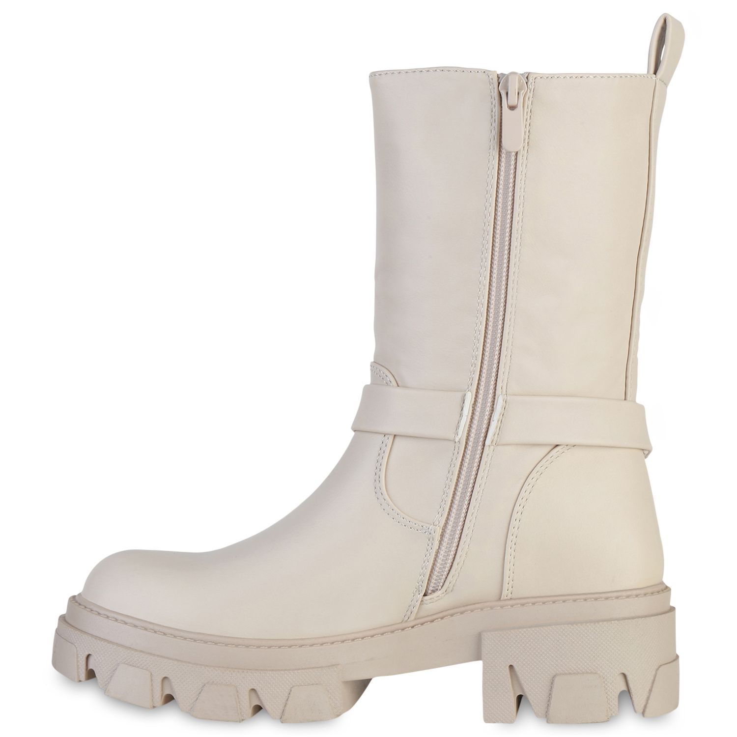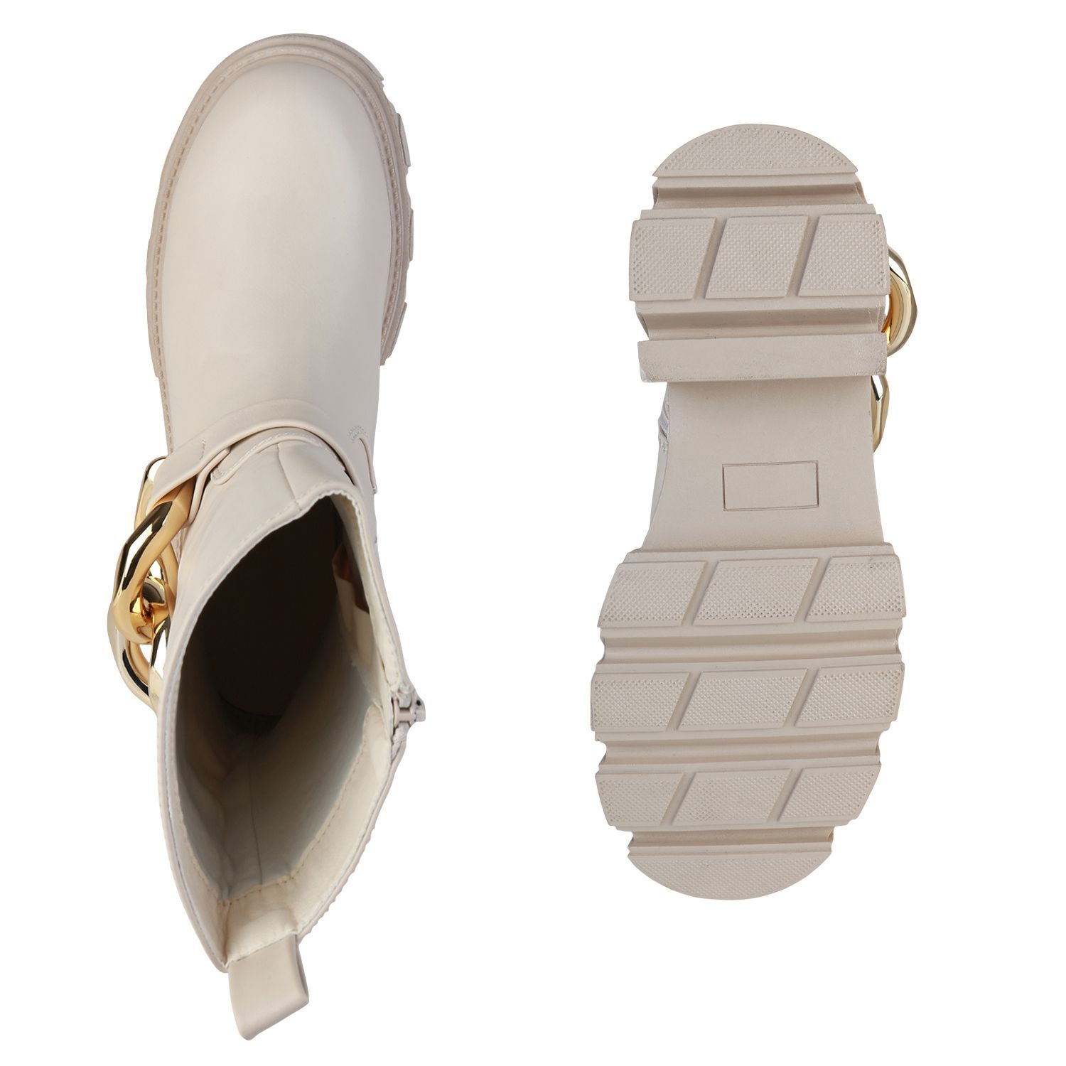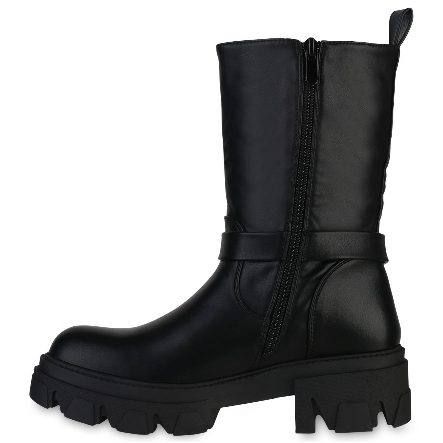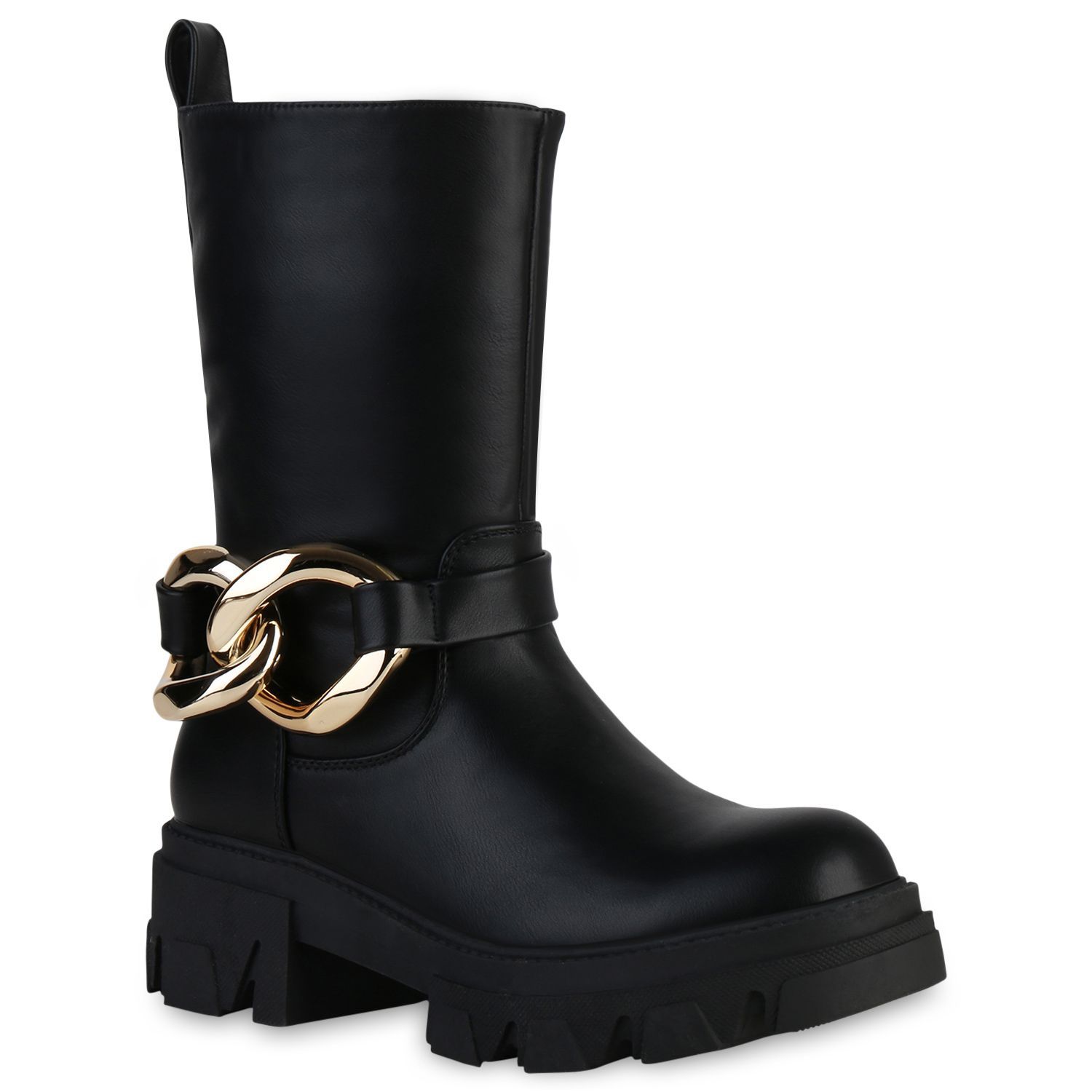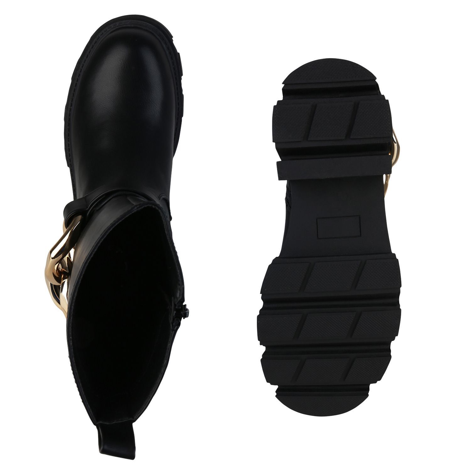 VAN HILL Damen Plateau Boots Stiefeletten Ketten Stiefel Profil-Sohle Schuhe 837957