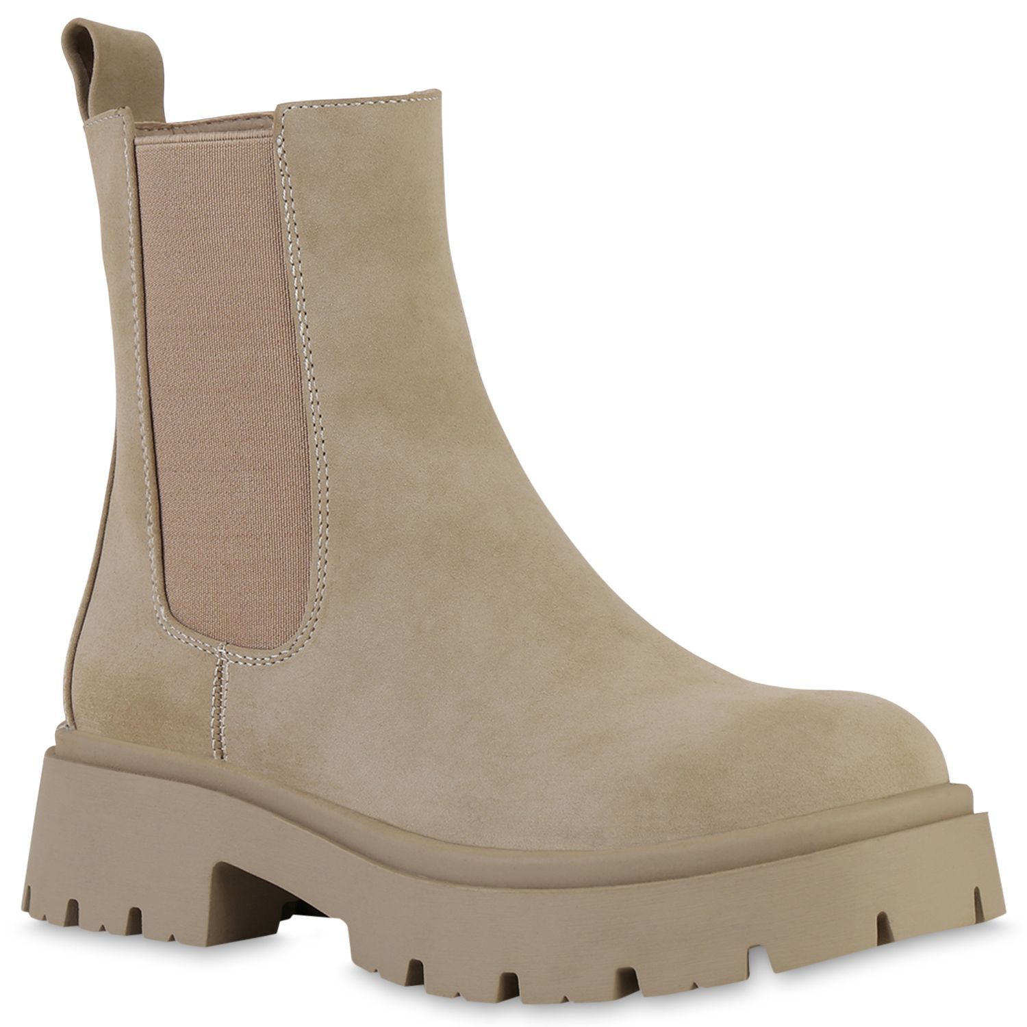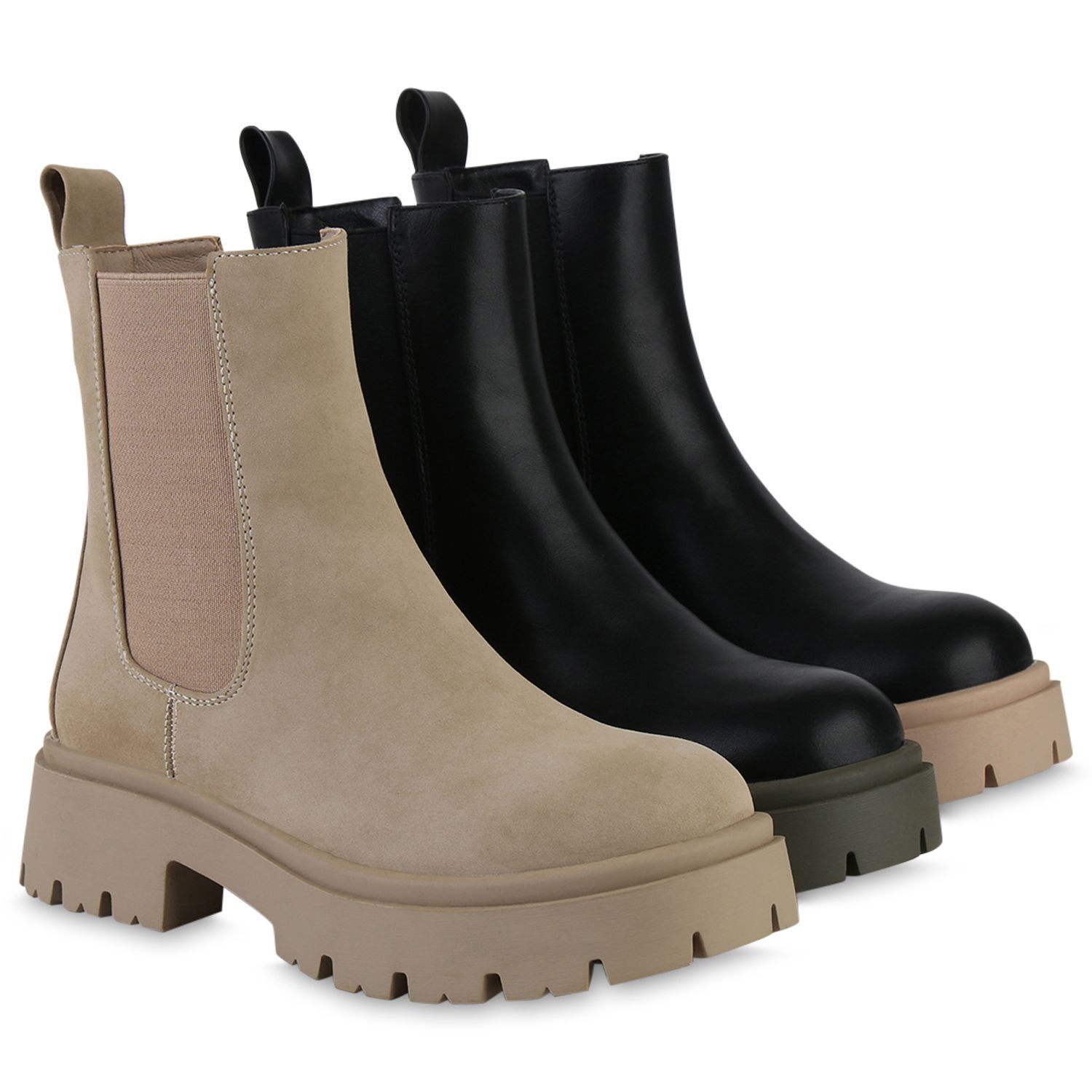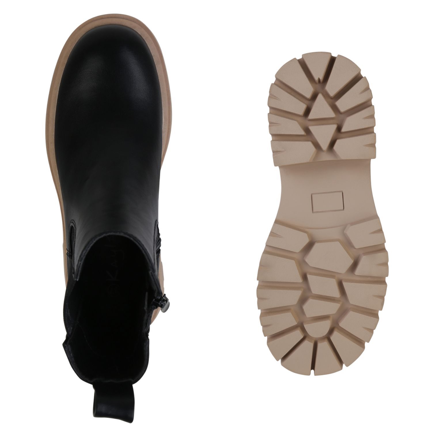 VAN HILL Damen Plateau Boots Stiefeletten Profil-Sohle Schuhe 840280