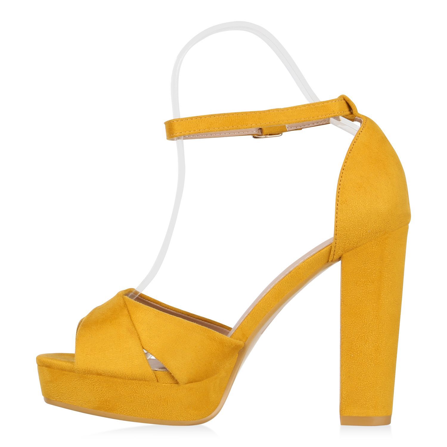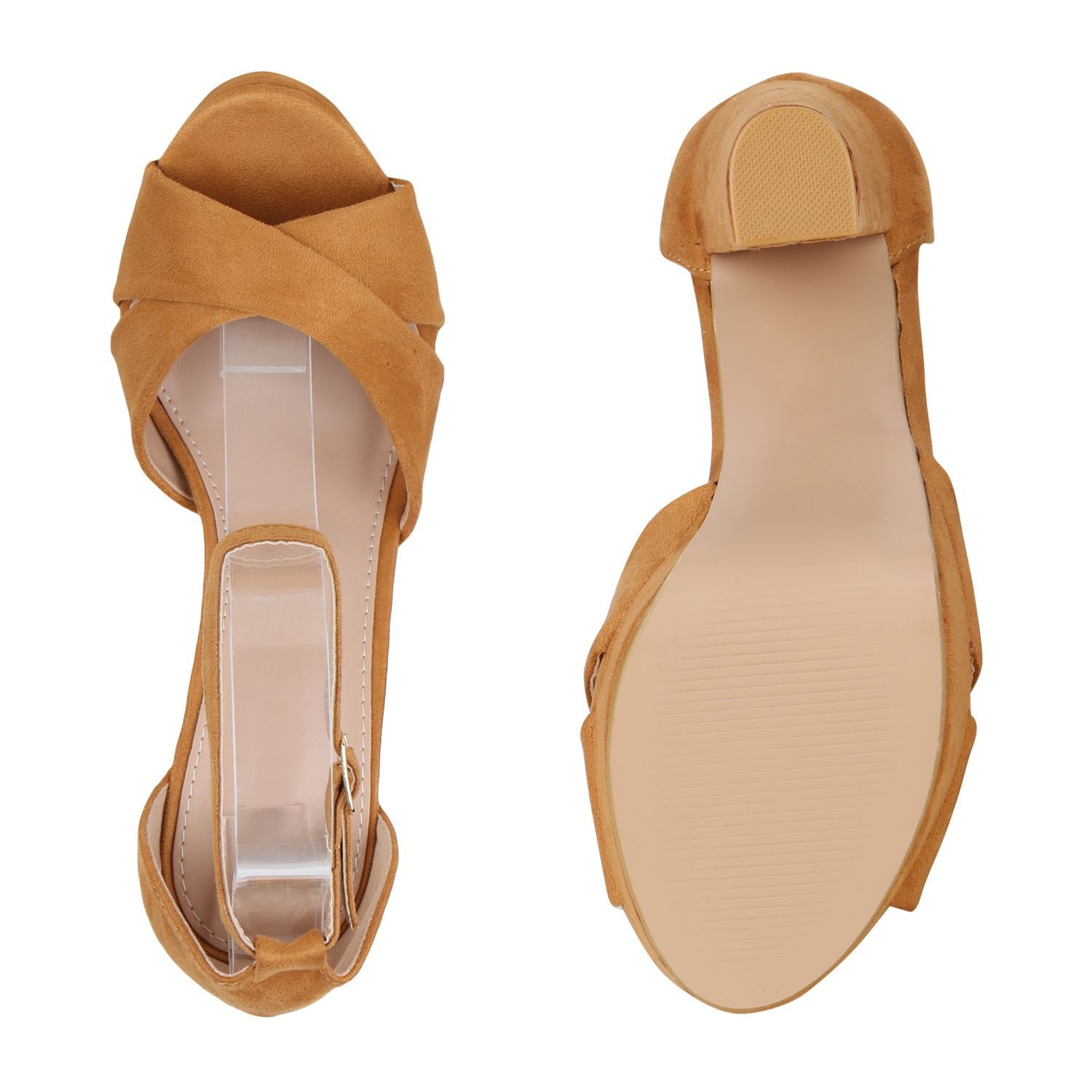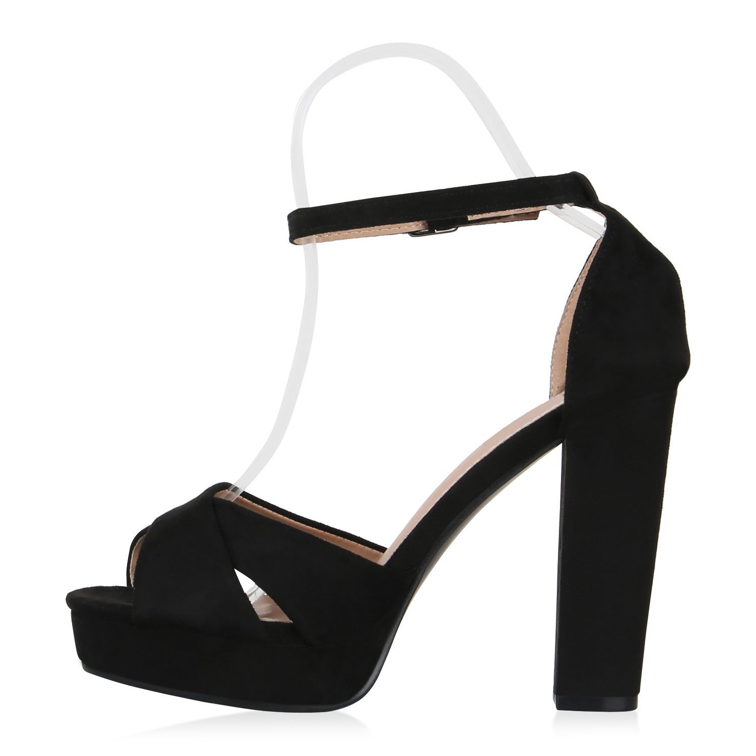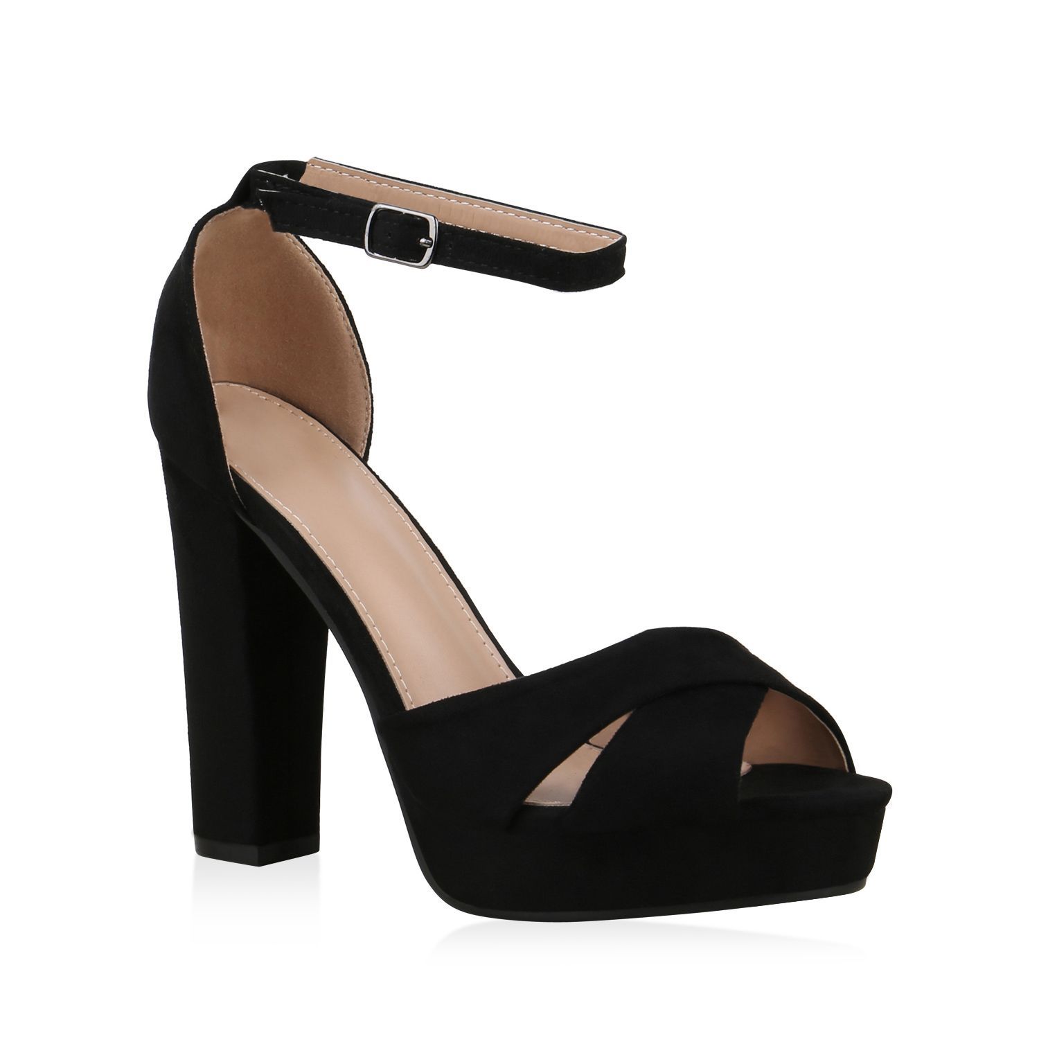 VAN HILL Damen Plateau Sandaletten Blockabsatz Party Schuhe High Heels 830733