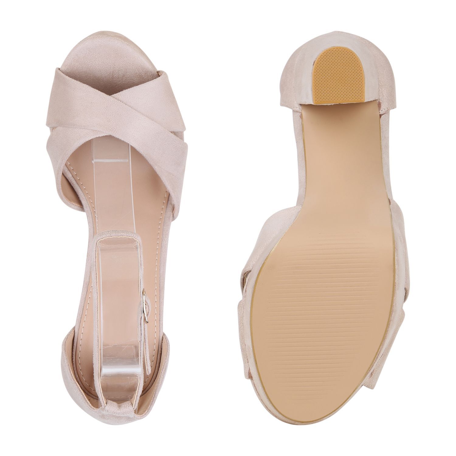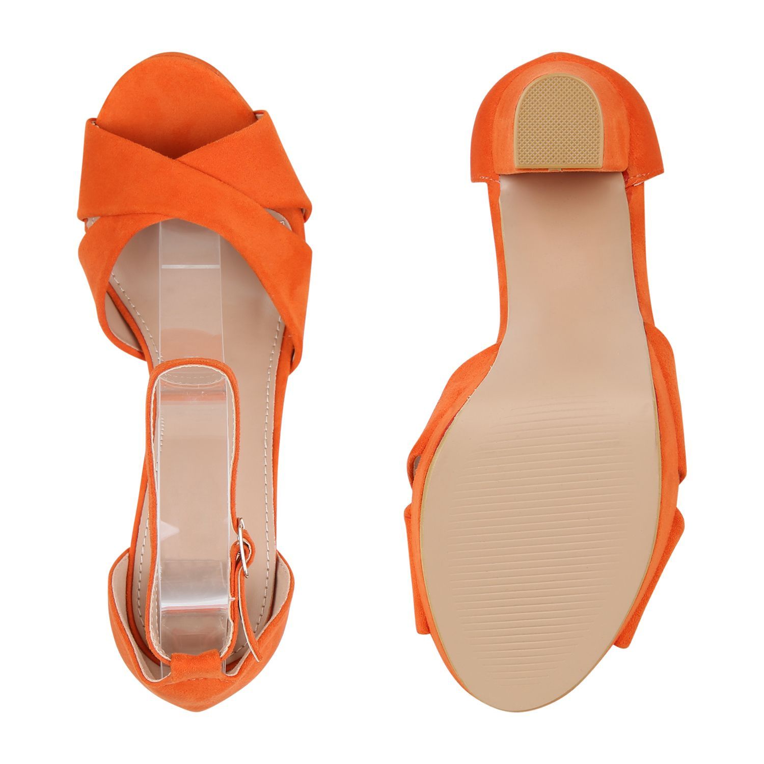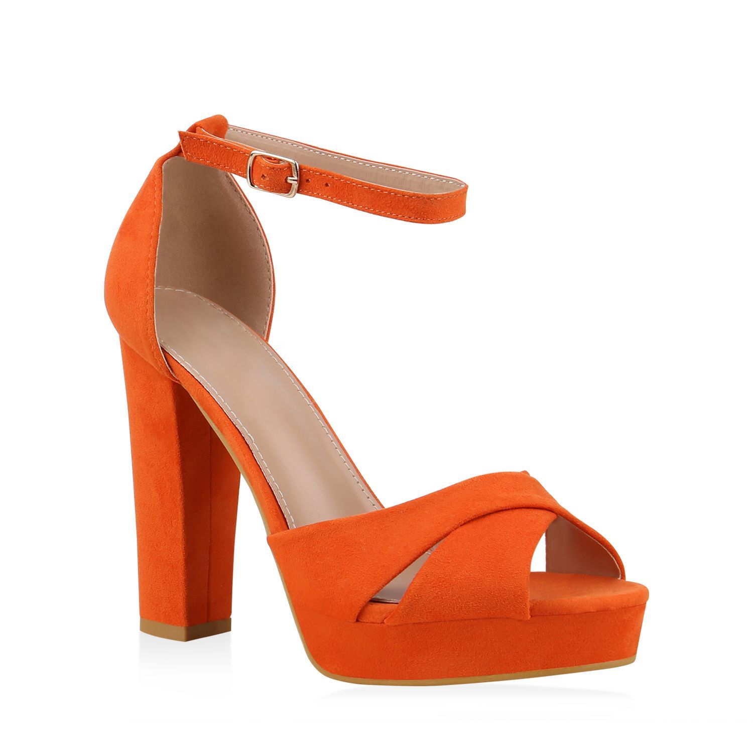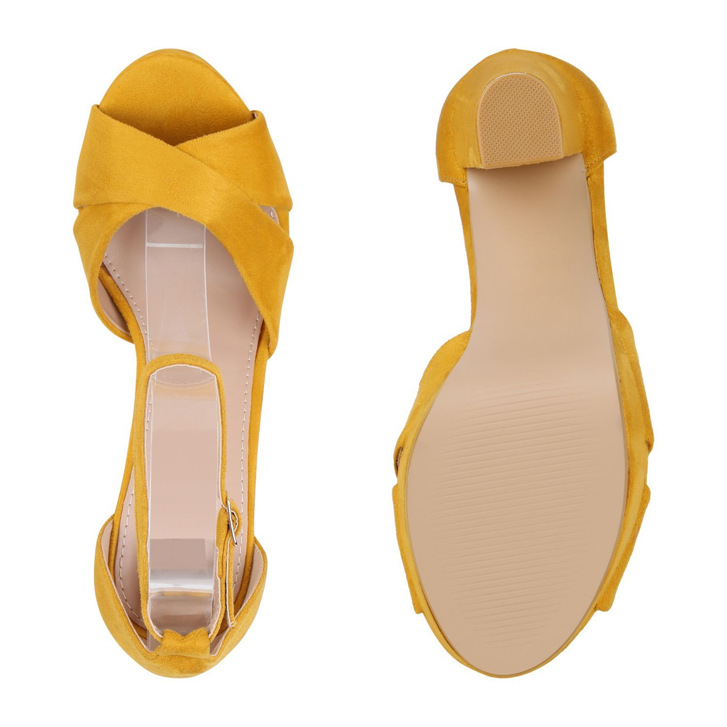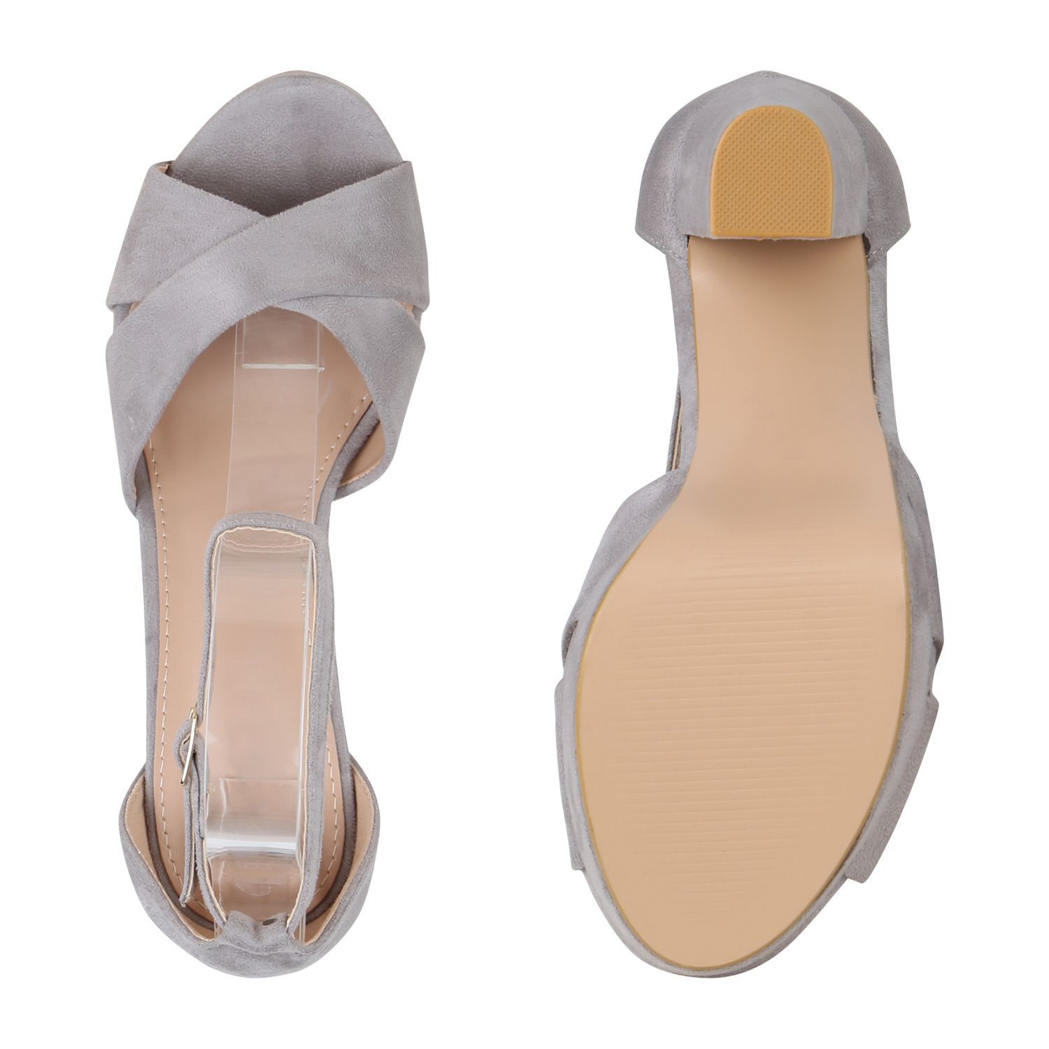 VAN HILL Damen Plateau Sandaletten Blockabsatz Party Schuhe High Heels 830733