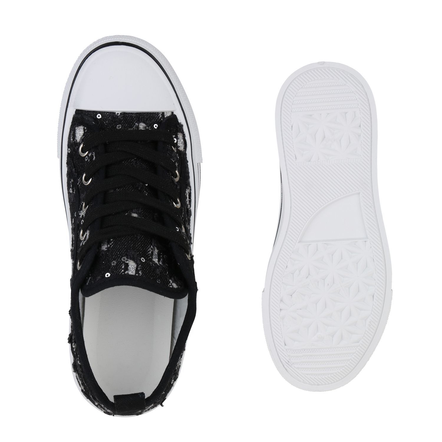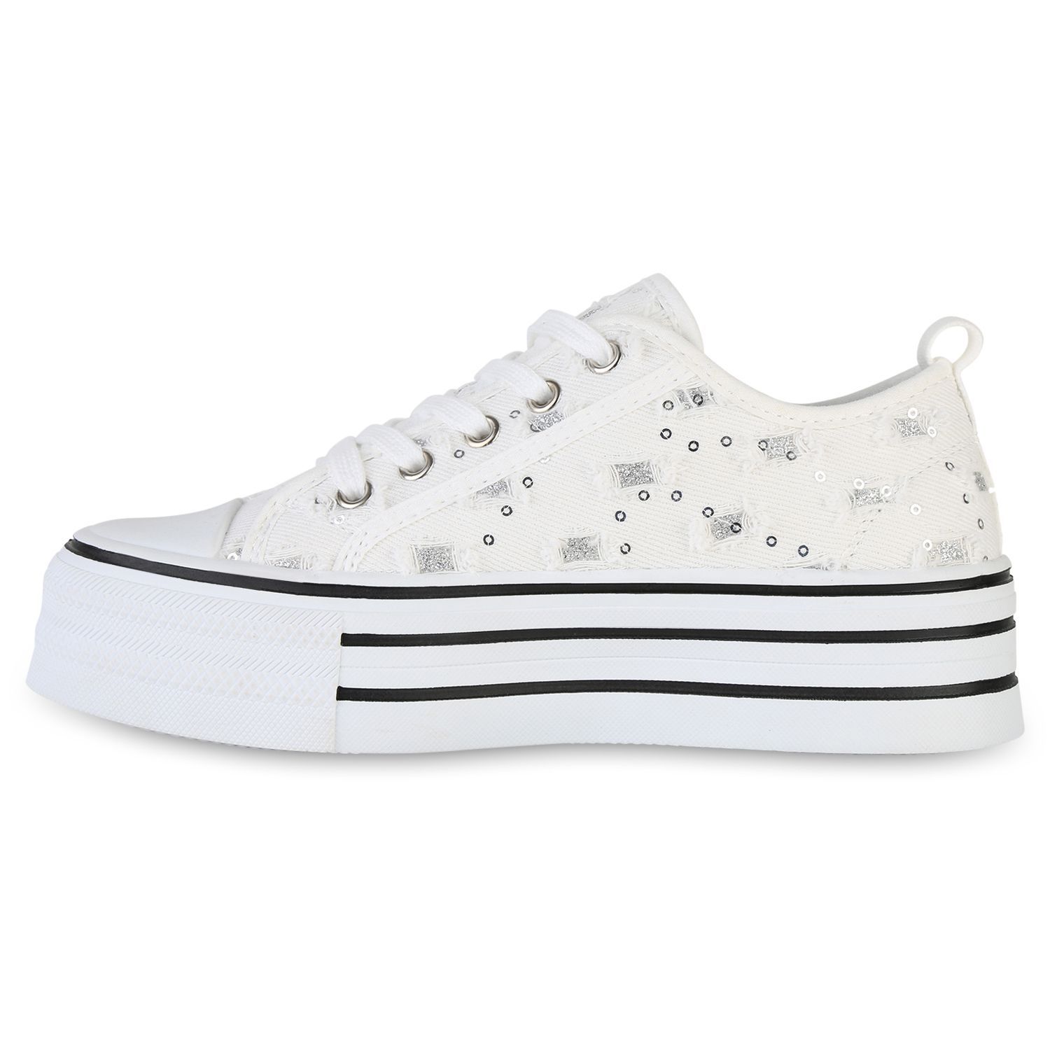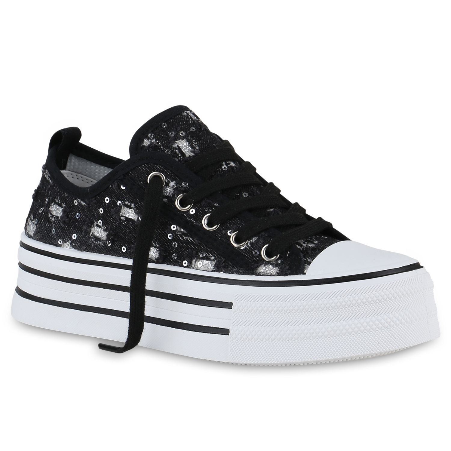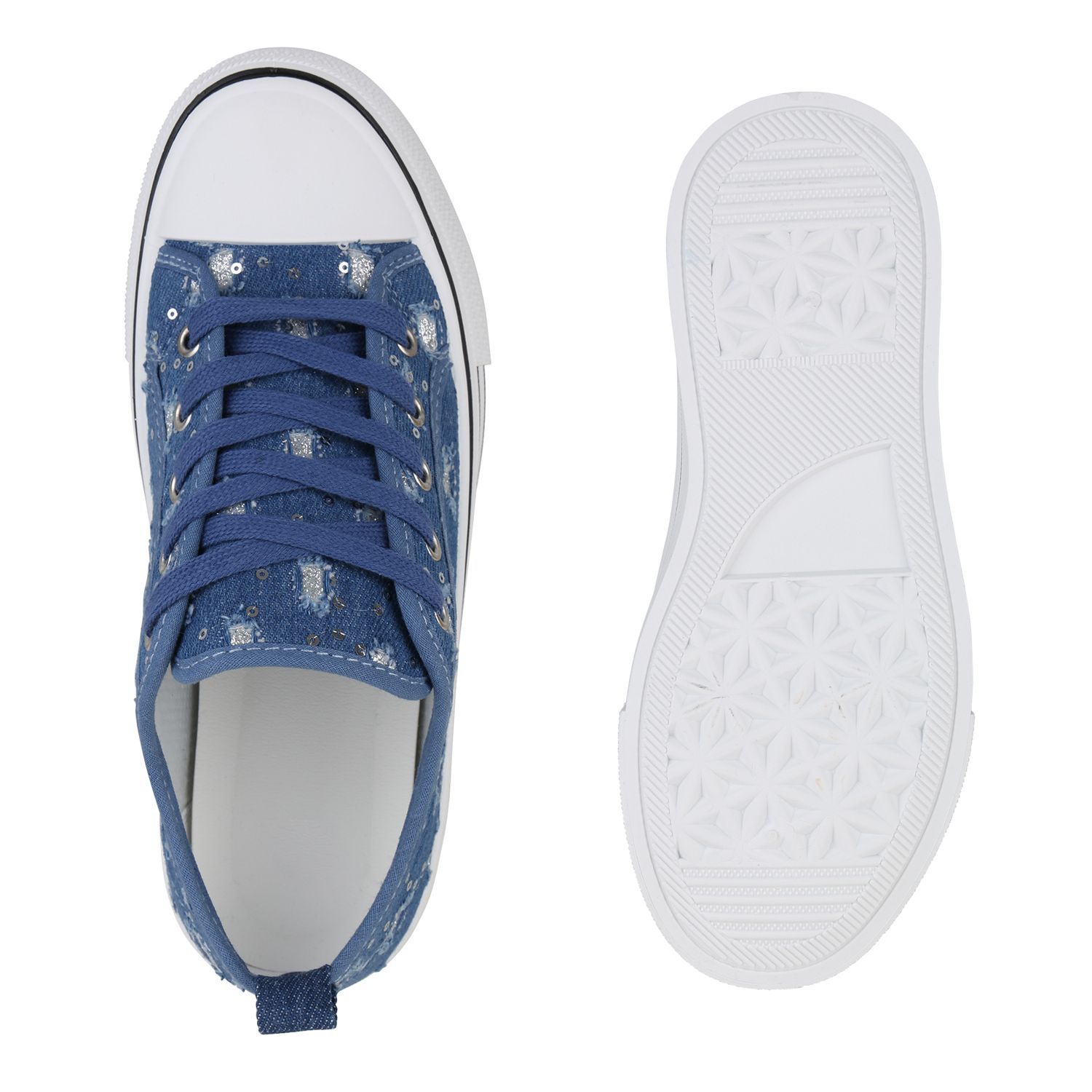 VAN HILL Damen Plateau Sneaker Denim Schnürer Pailletten Glitzer Schuhe 840981