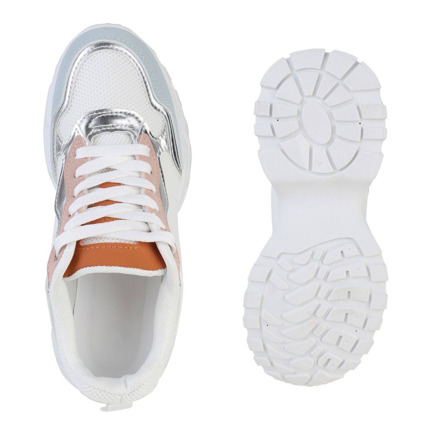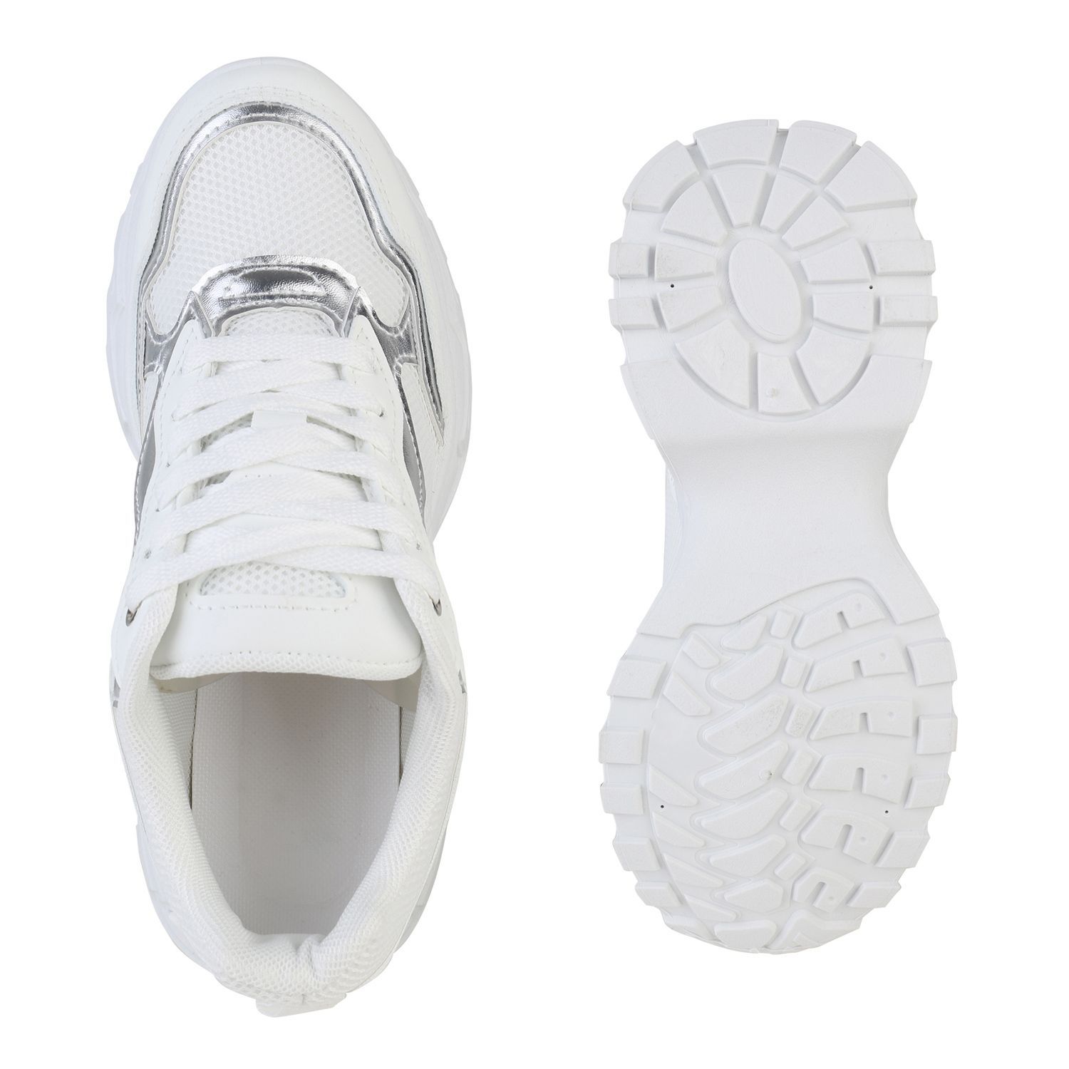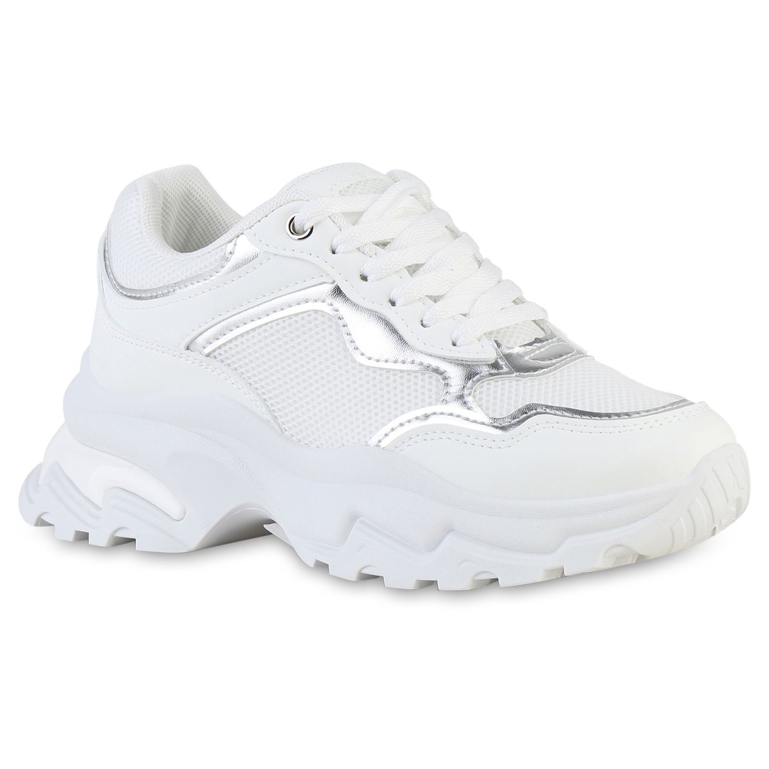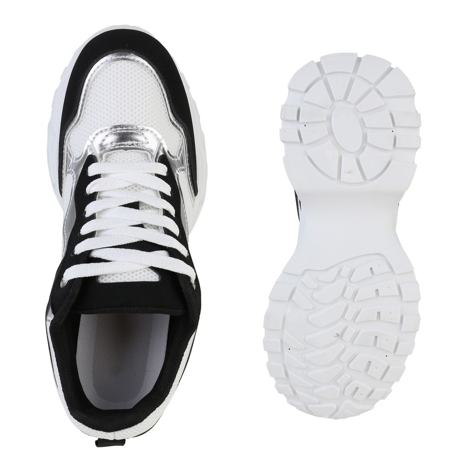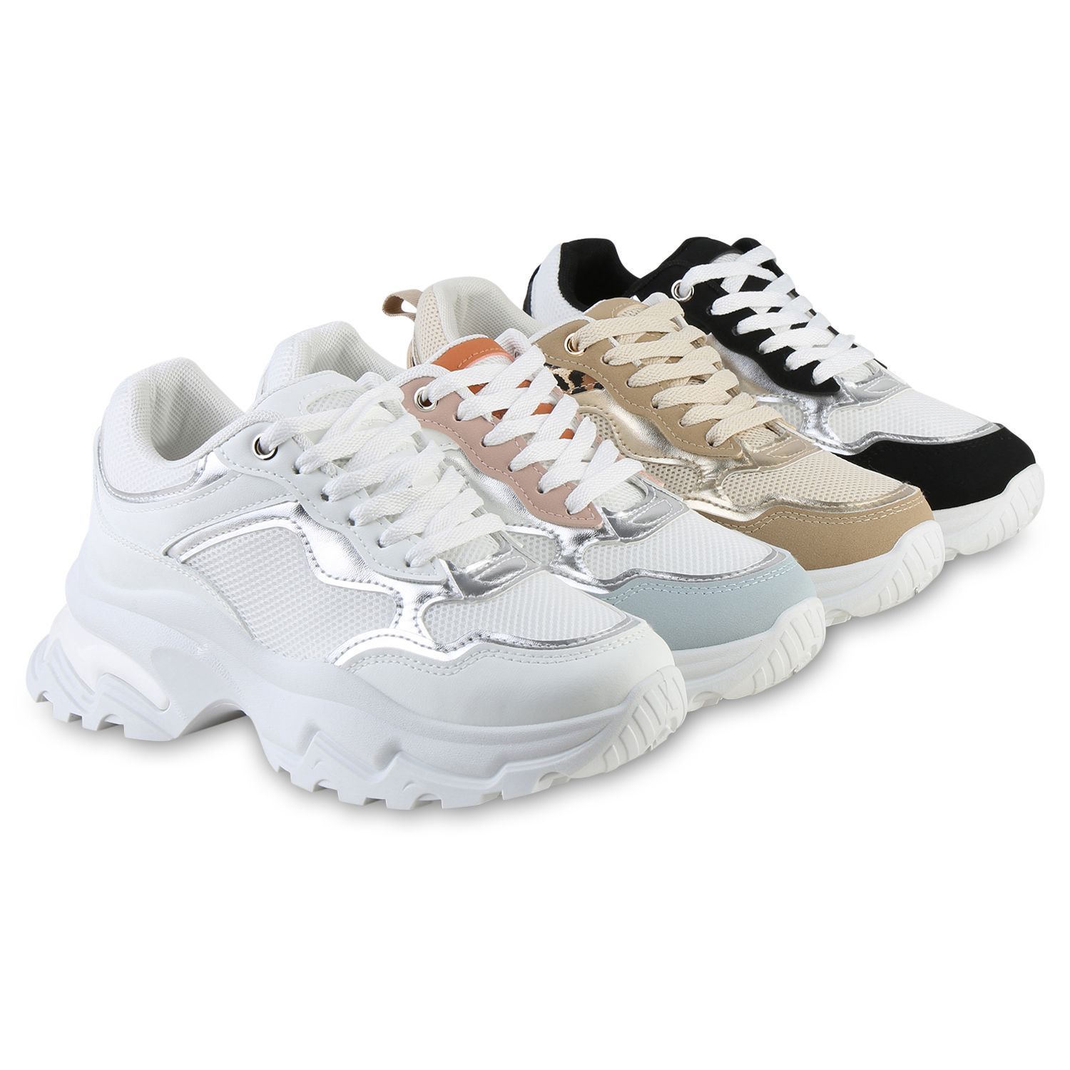 VAN HILL Damen Plateau Sneaker Schnürer Metallic Profil-Sohle Schuhe 841536