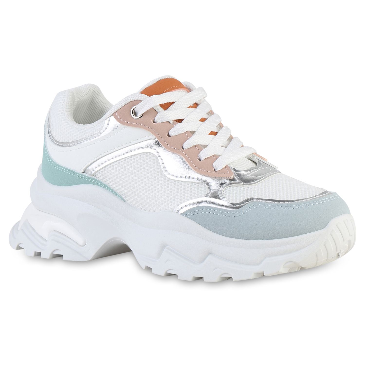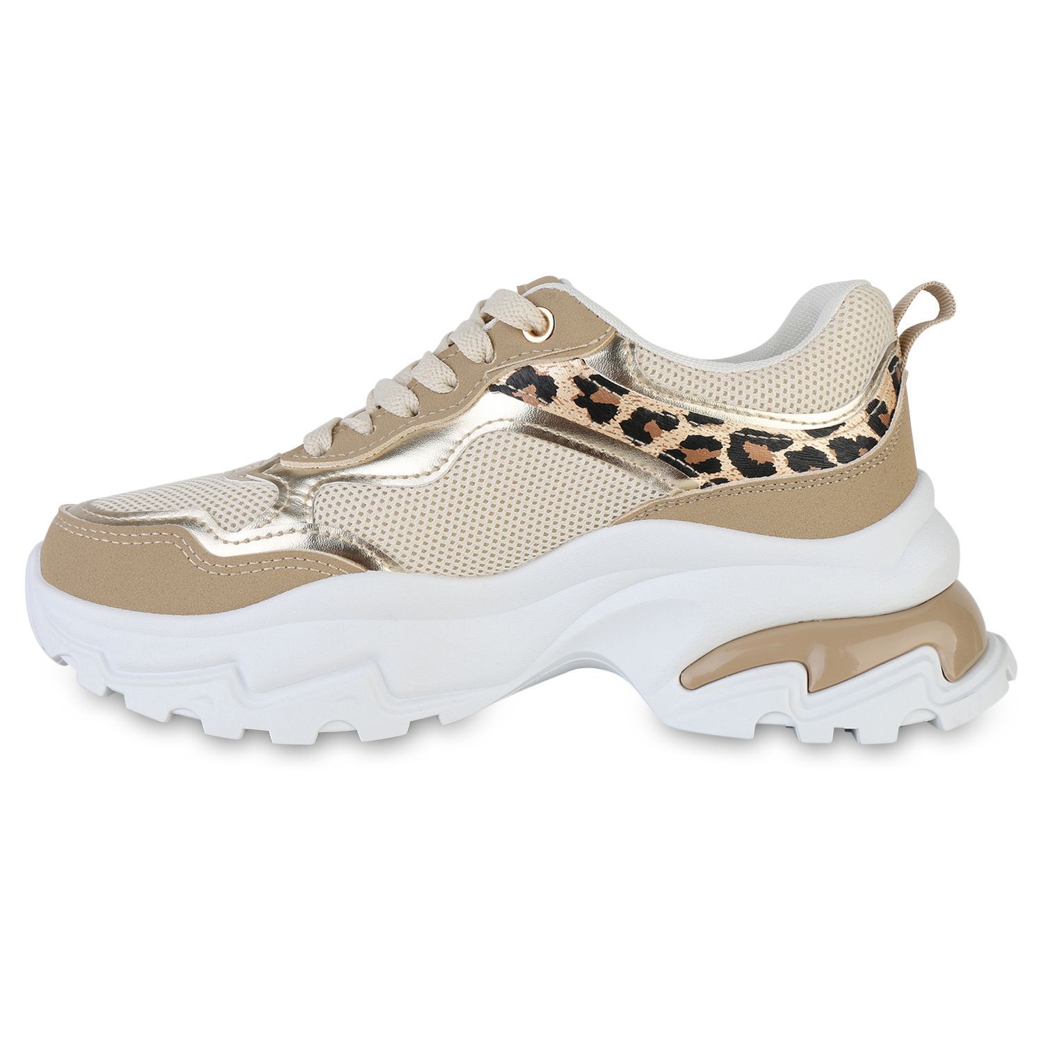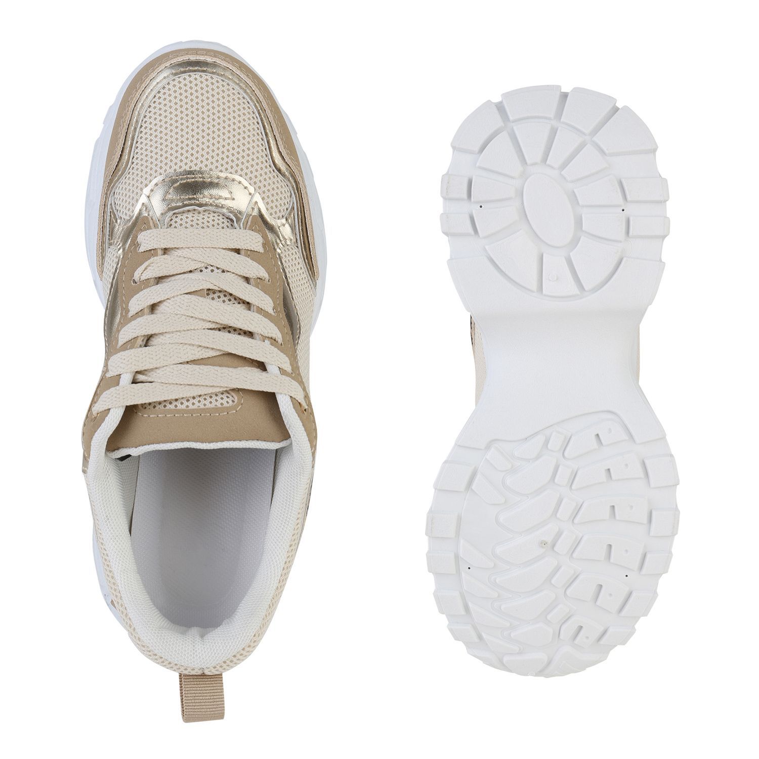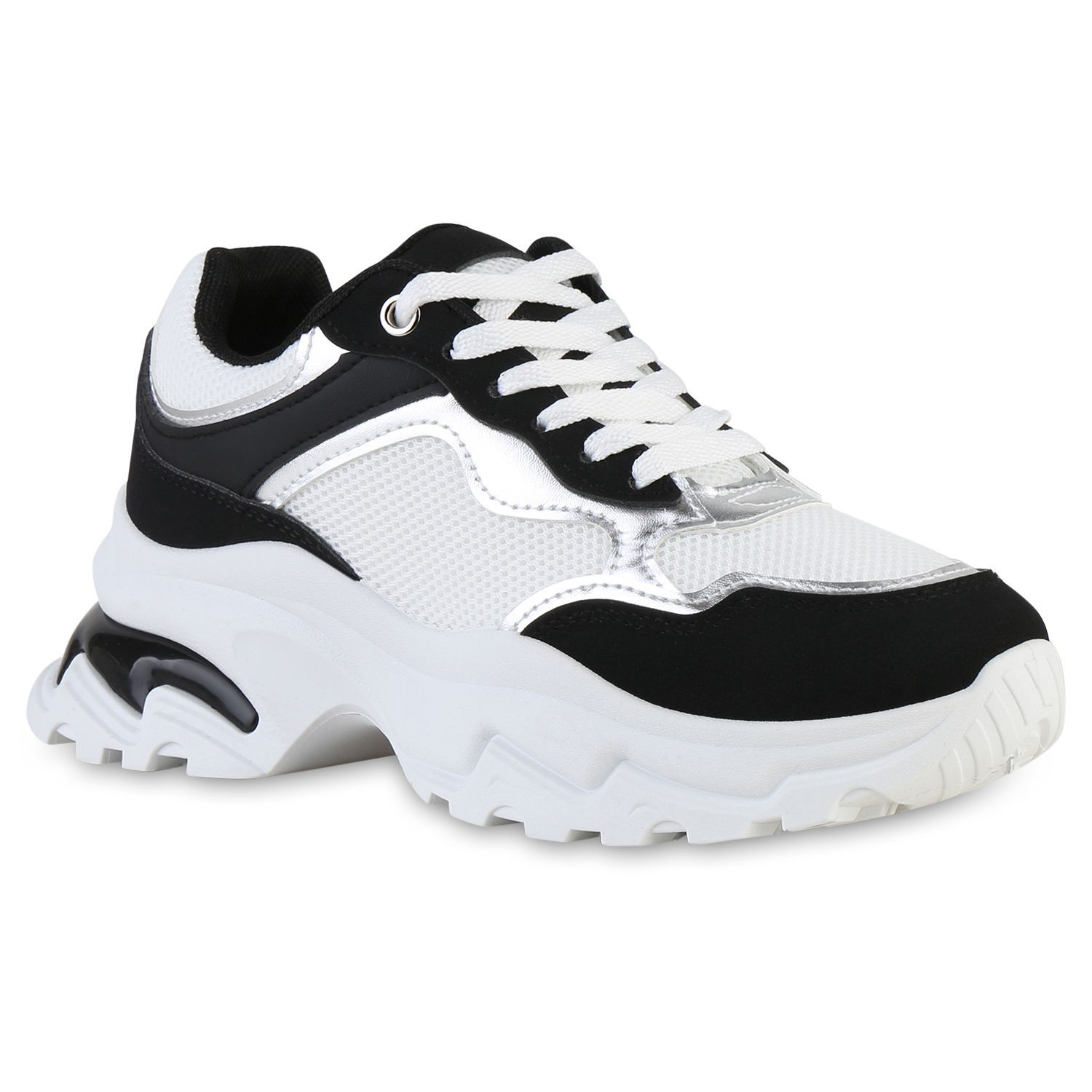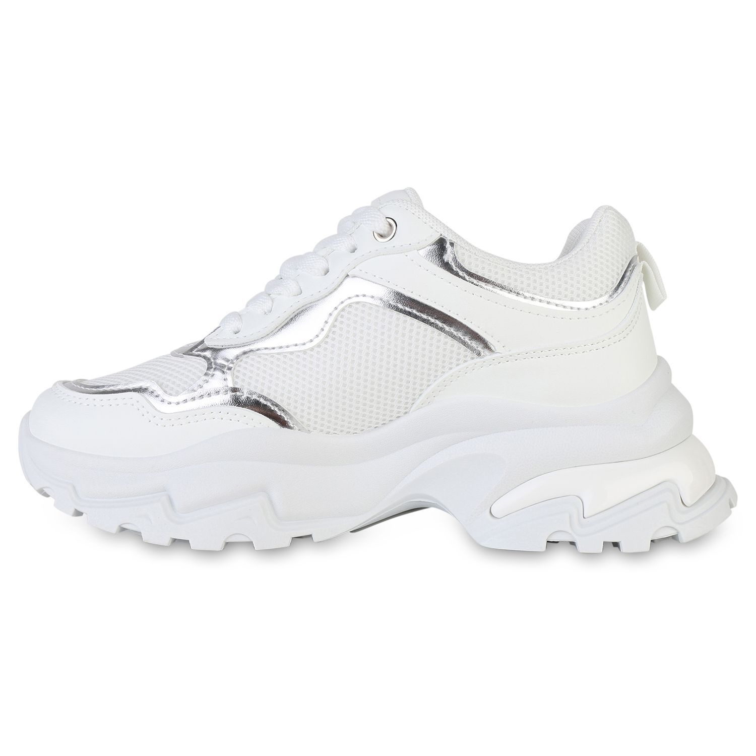 VAN HILL Damen Plateau Sneaker Schnürer Metallic Profil-Sohle Schuhe 841536