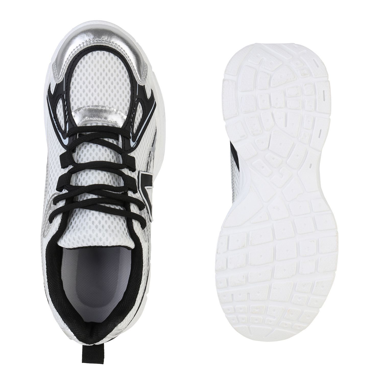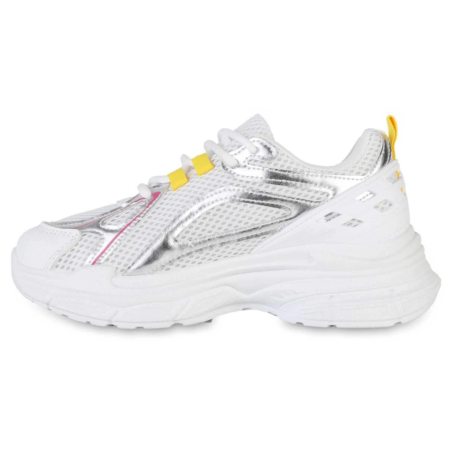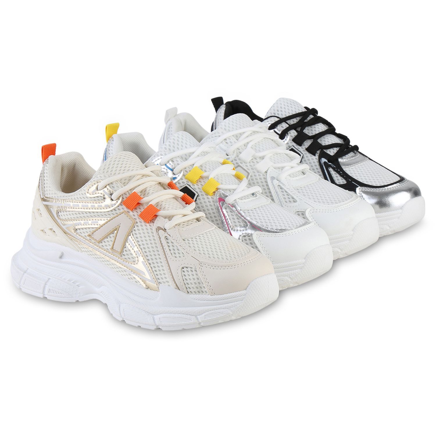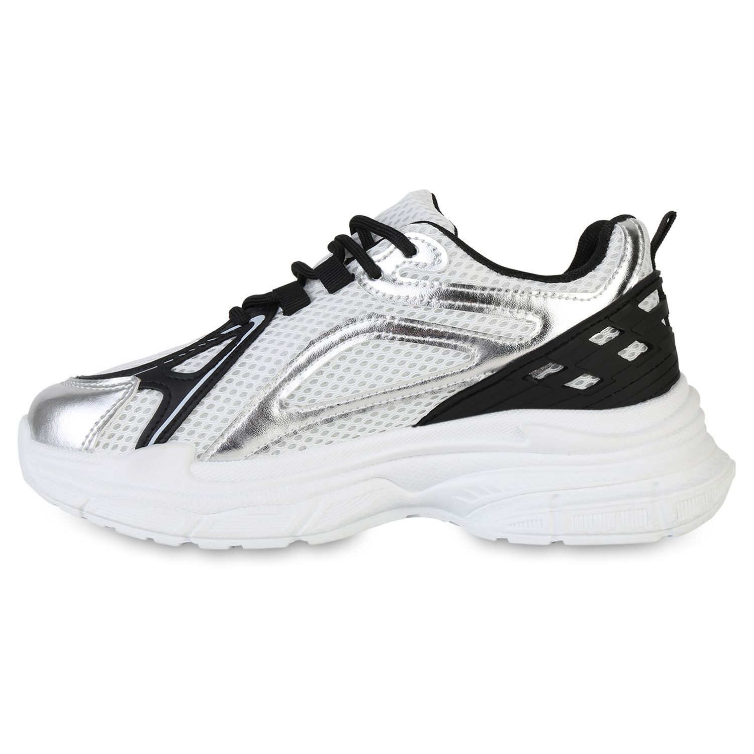 VAN HILL Damen Plateau Sneaker Schnürer Metallic Profil-Sohle Schuhe 841567