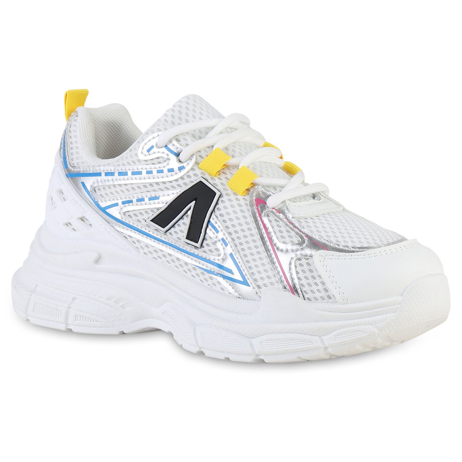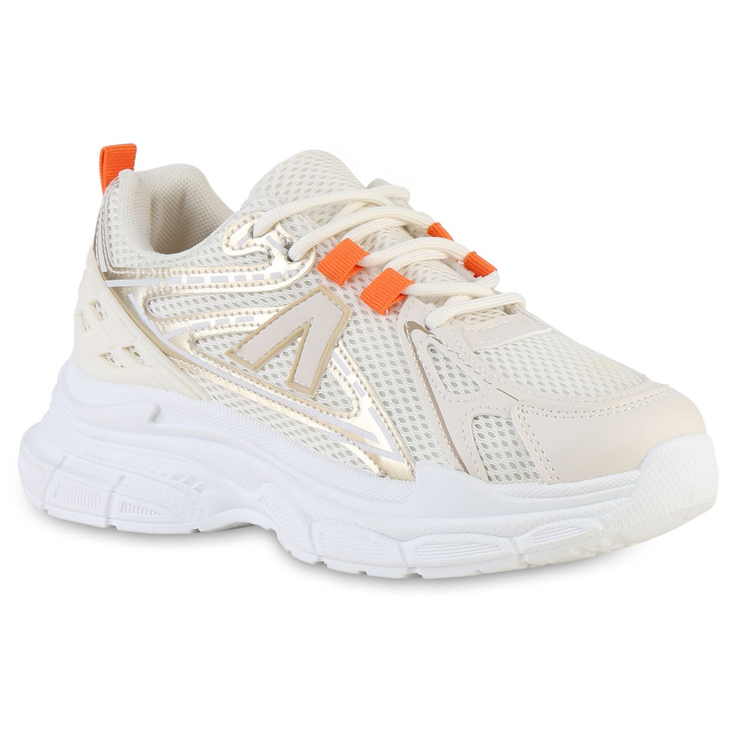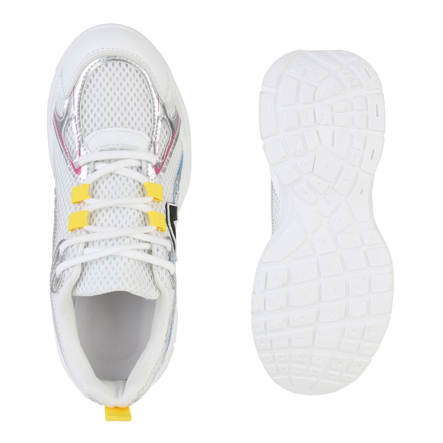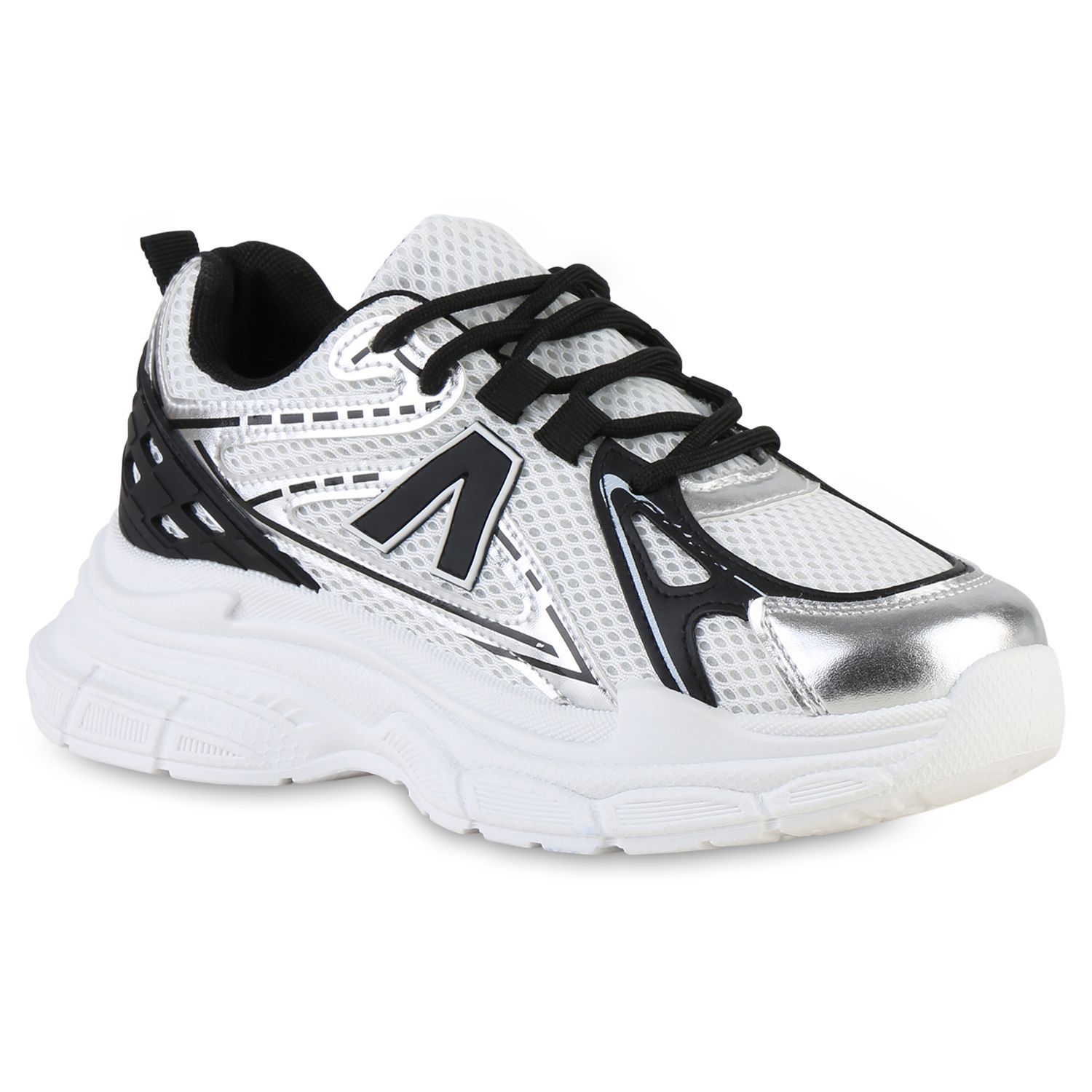 VAN HILL Damen Plateau Sneaker Schnürer Metallic Profil-Sohle Schuhe 841567