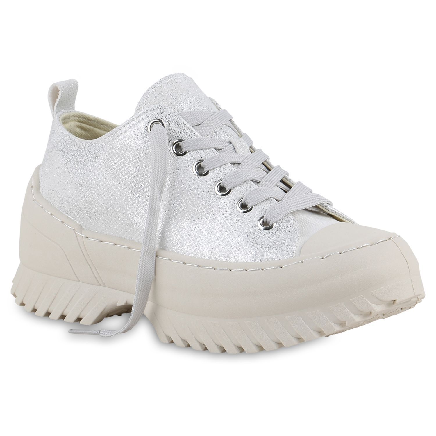 VAN HILL Damen Plateau Sneaker Schnürer Profil-Sohle Freizeit Schuhe 841696