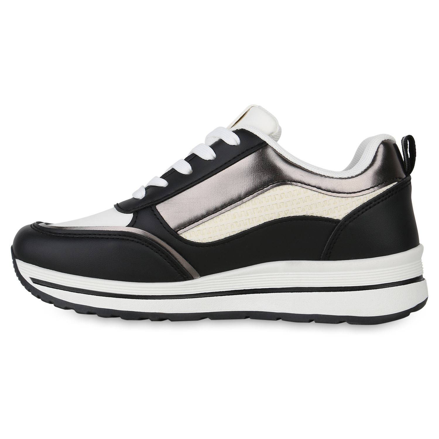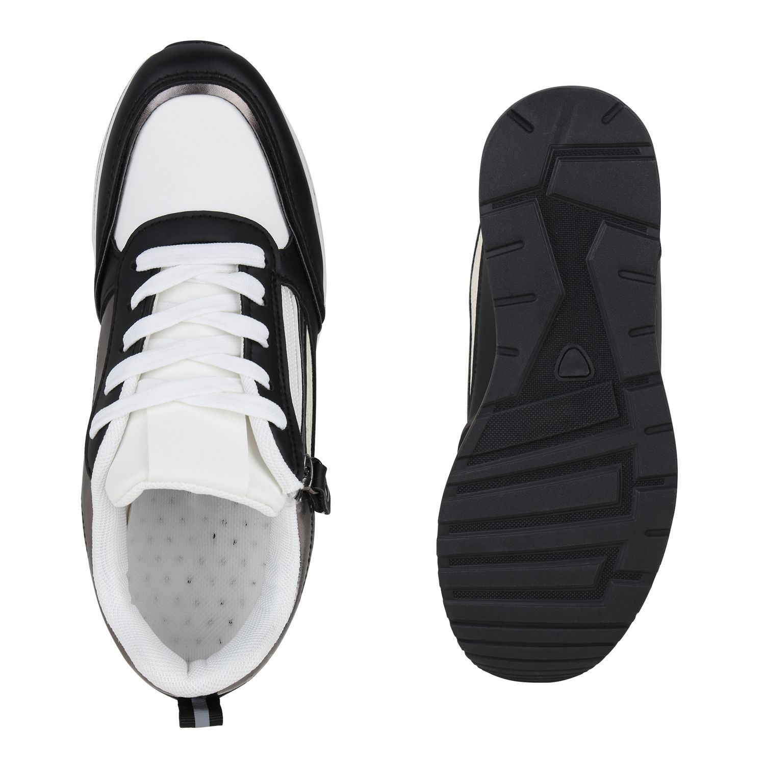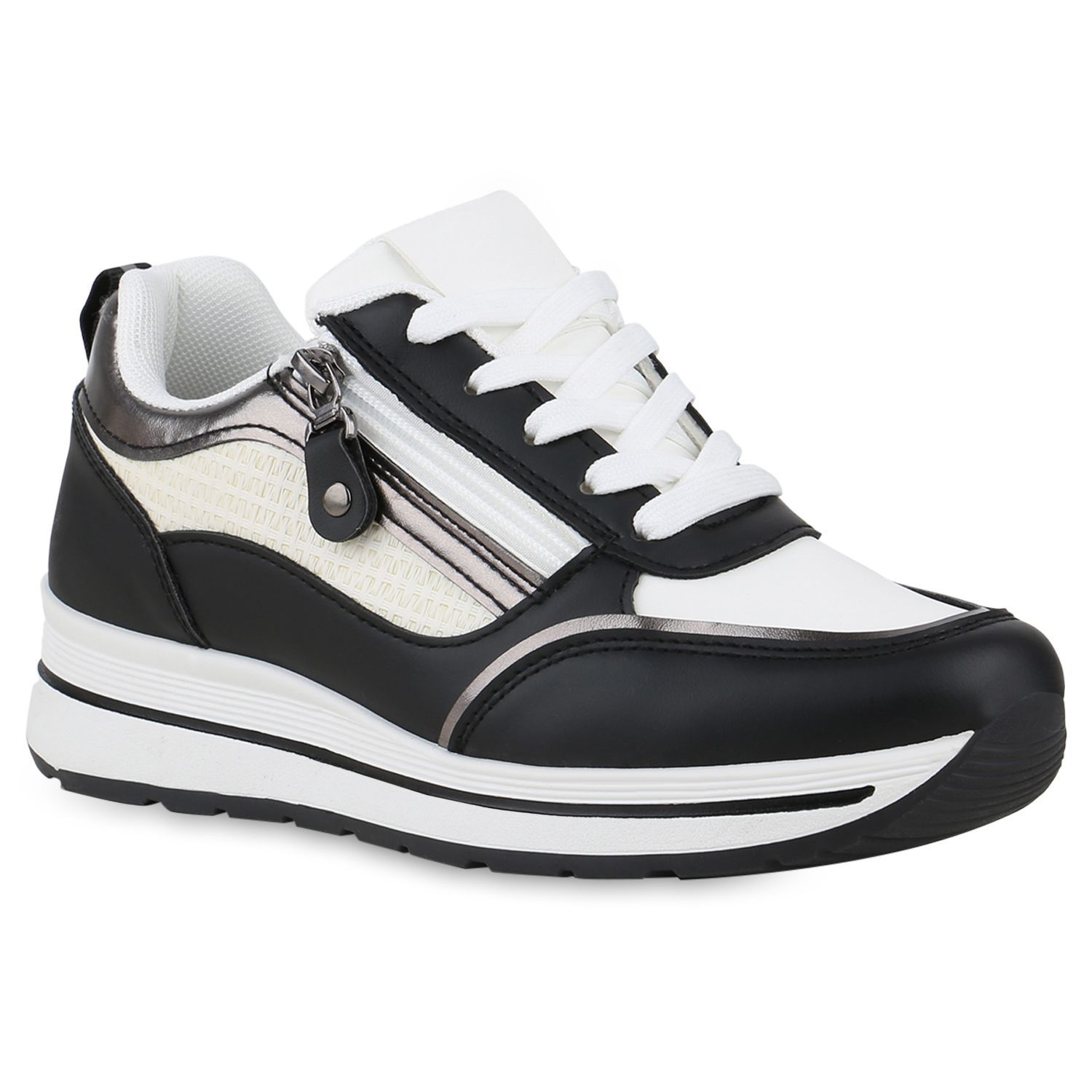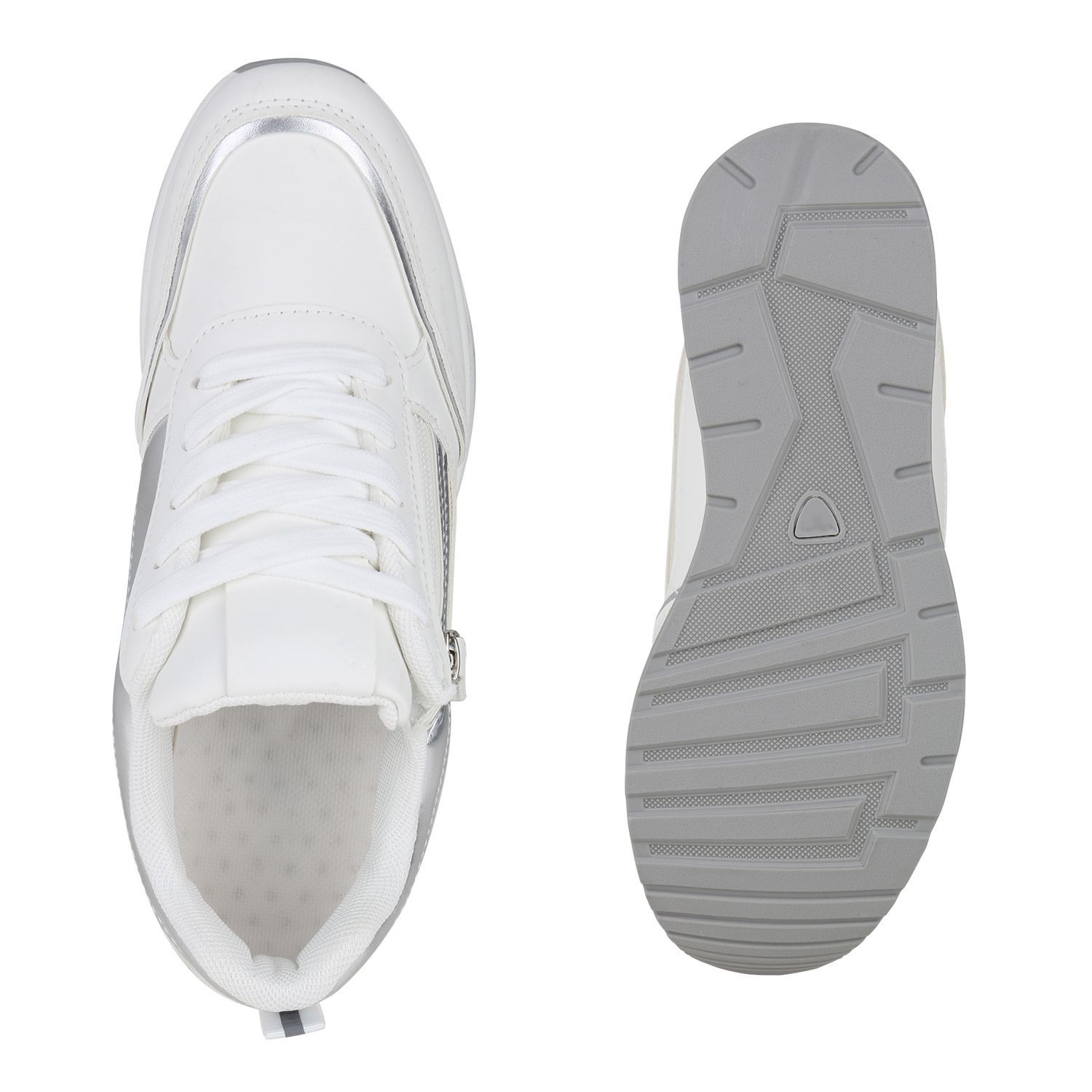 VAN HILL Damen Plateau Sneaker Schnürer Zipper Metallic Profil-Sohle Schuhe 841660