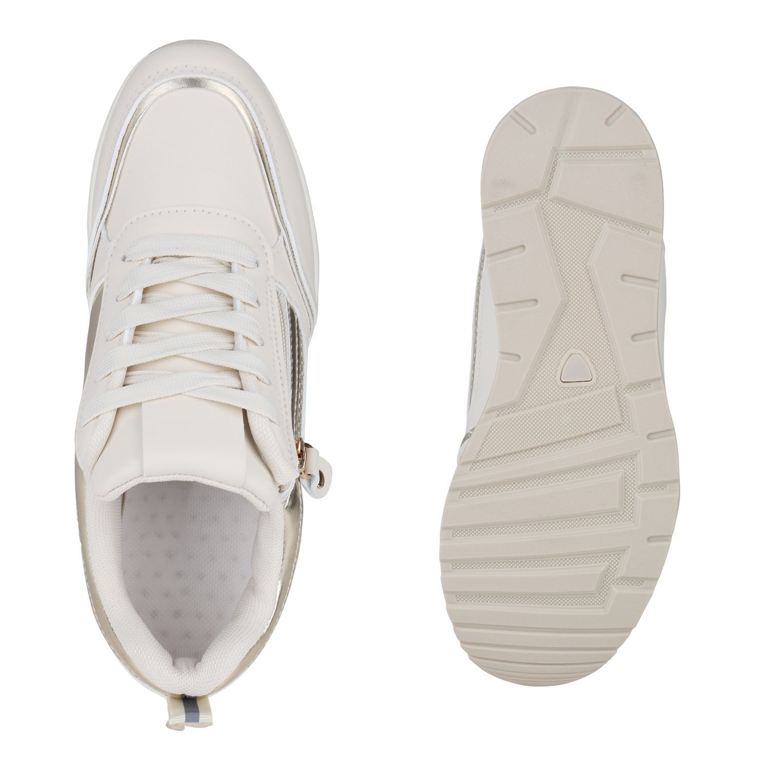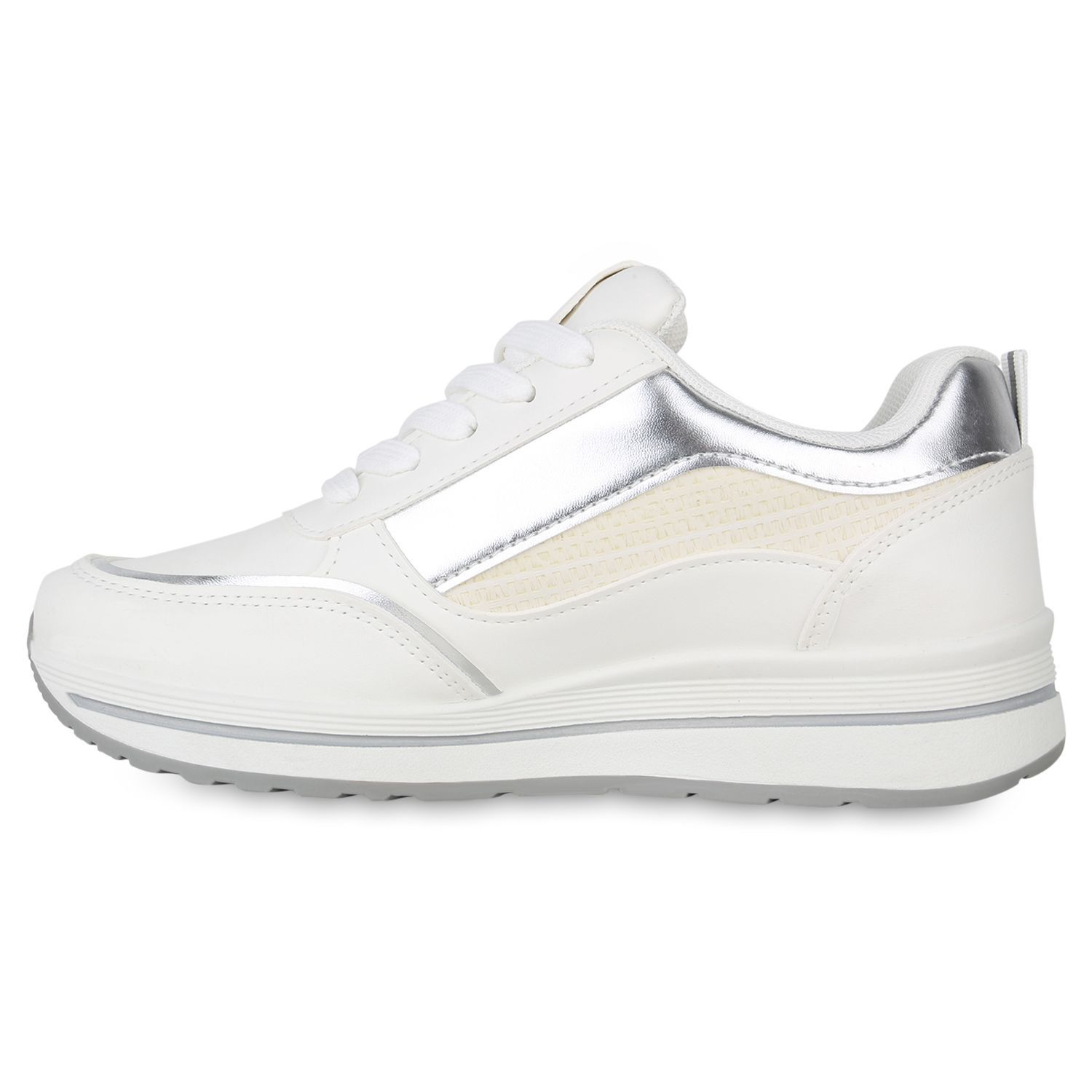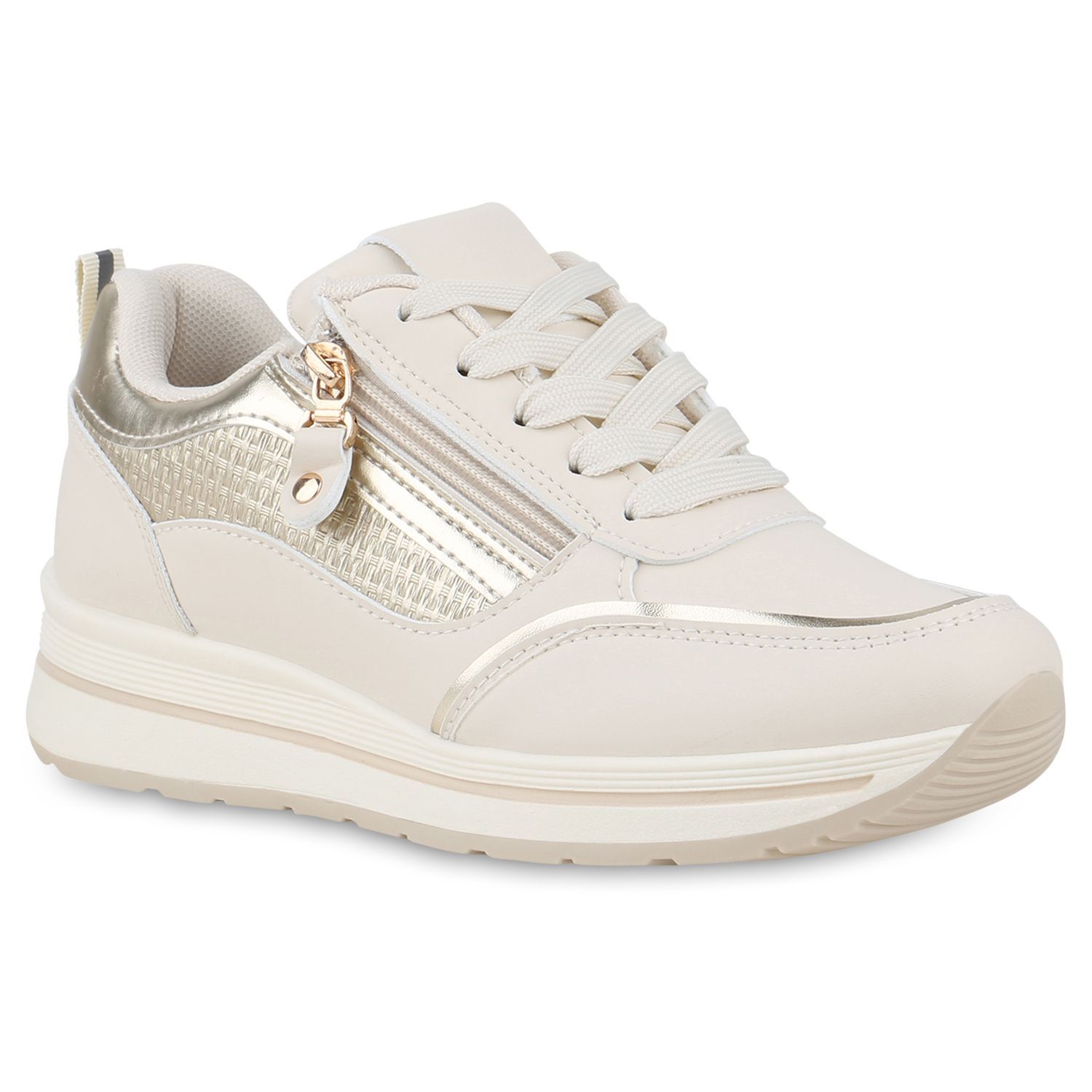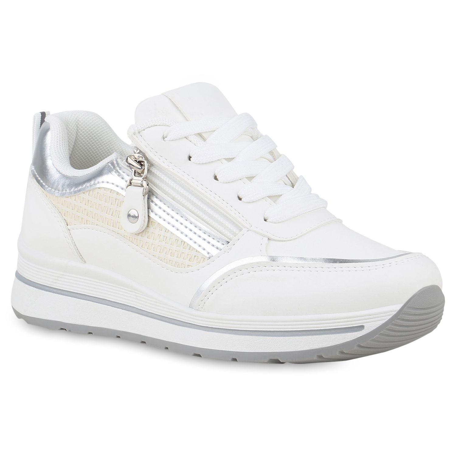 VAN HILL Damen Plateau Sneaker Schnürer Zipper Metallic Profil-Sohle Schuhe 841660