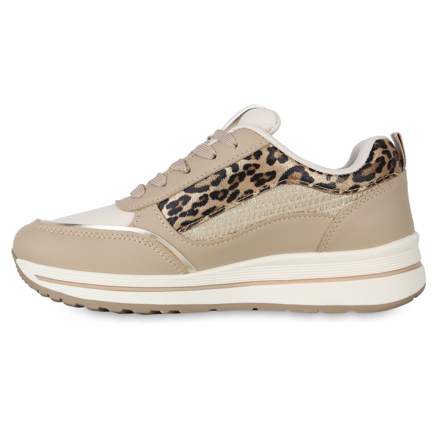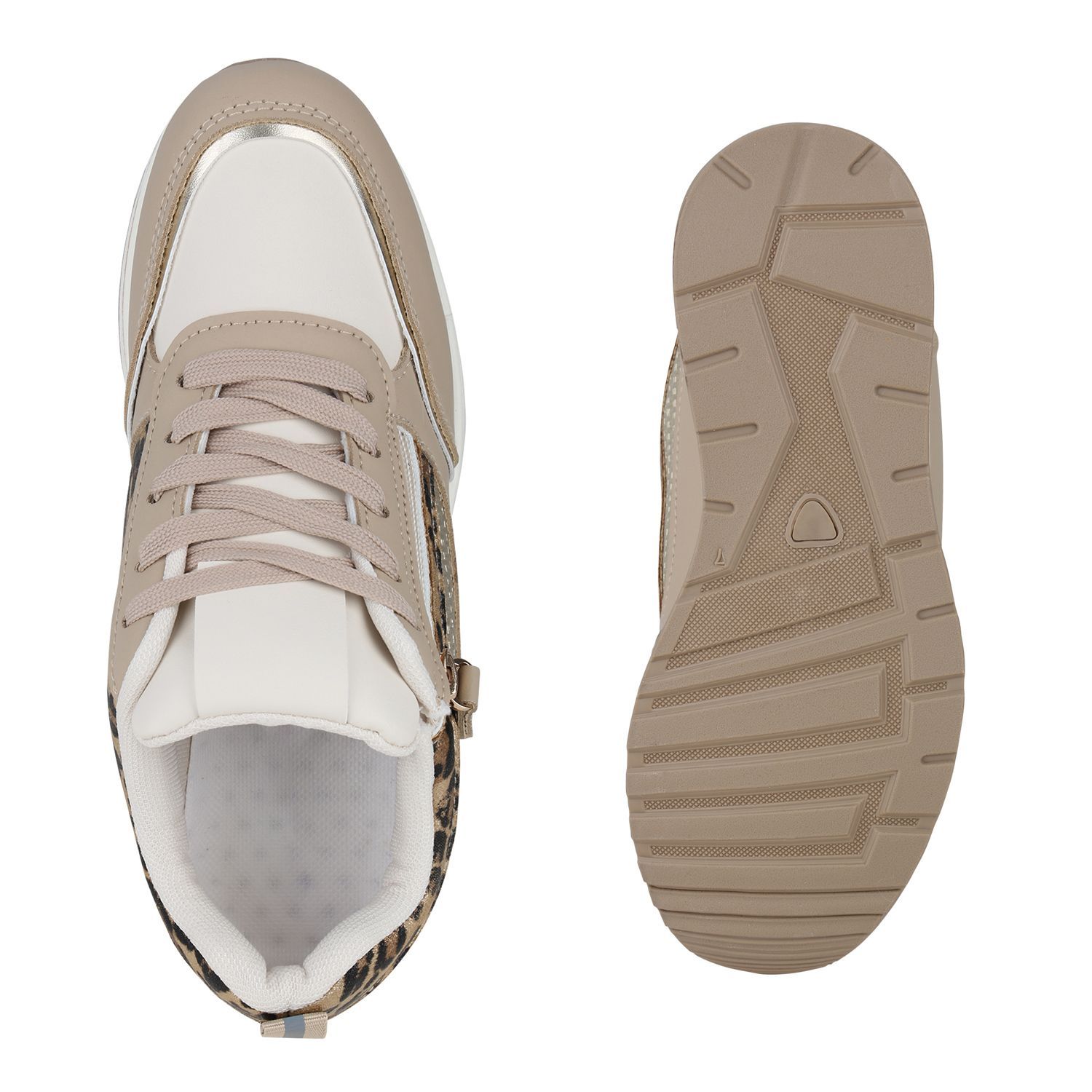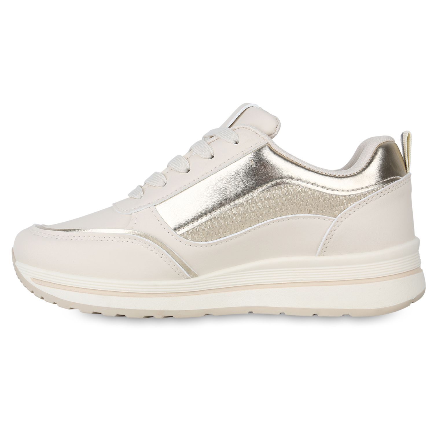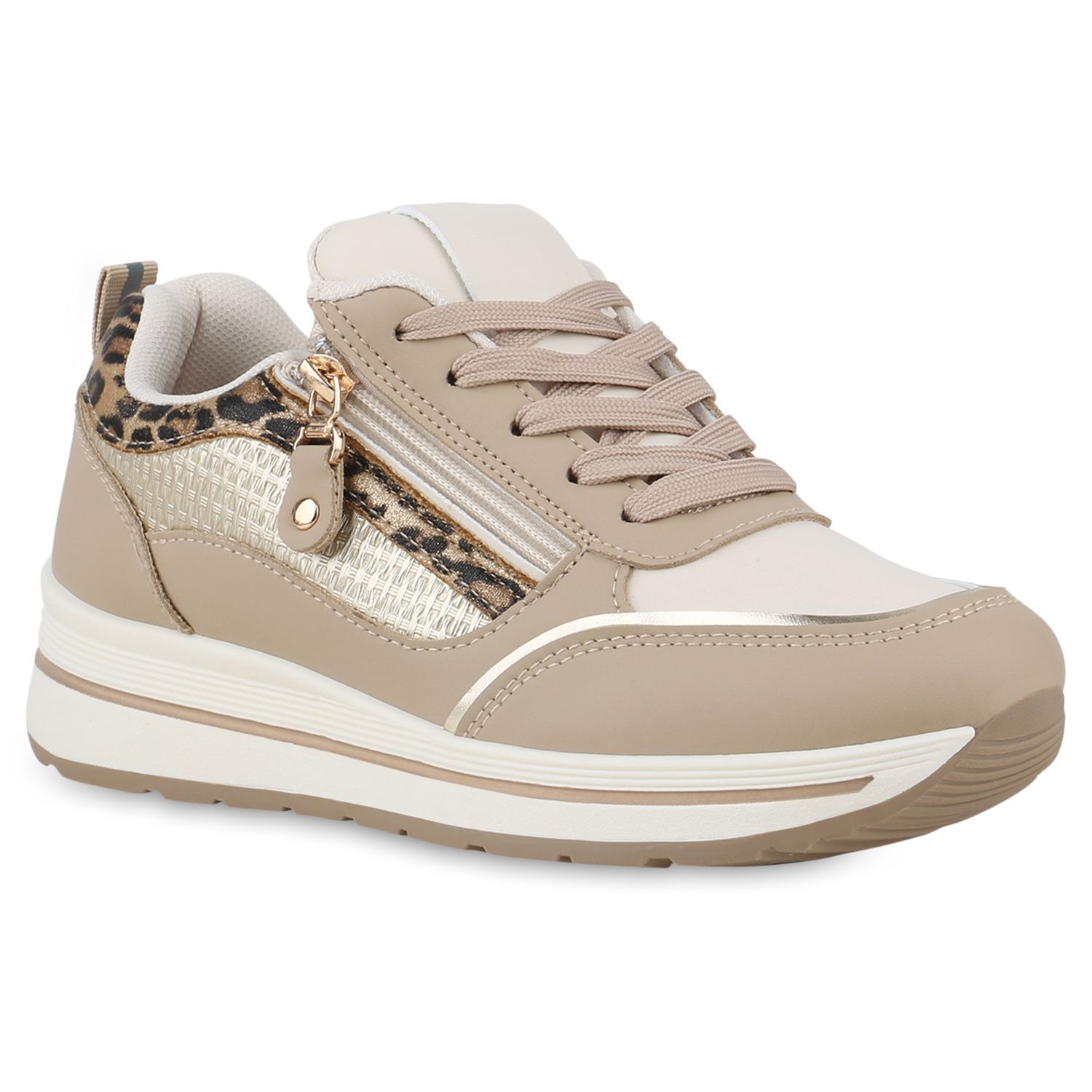 VAN HILL Damen Plateau Sneaker Schnürer Zipper Metallic Profil-Sohle Schuhe 841660