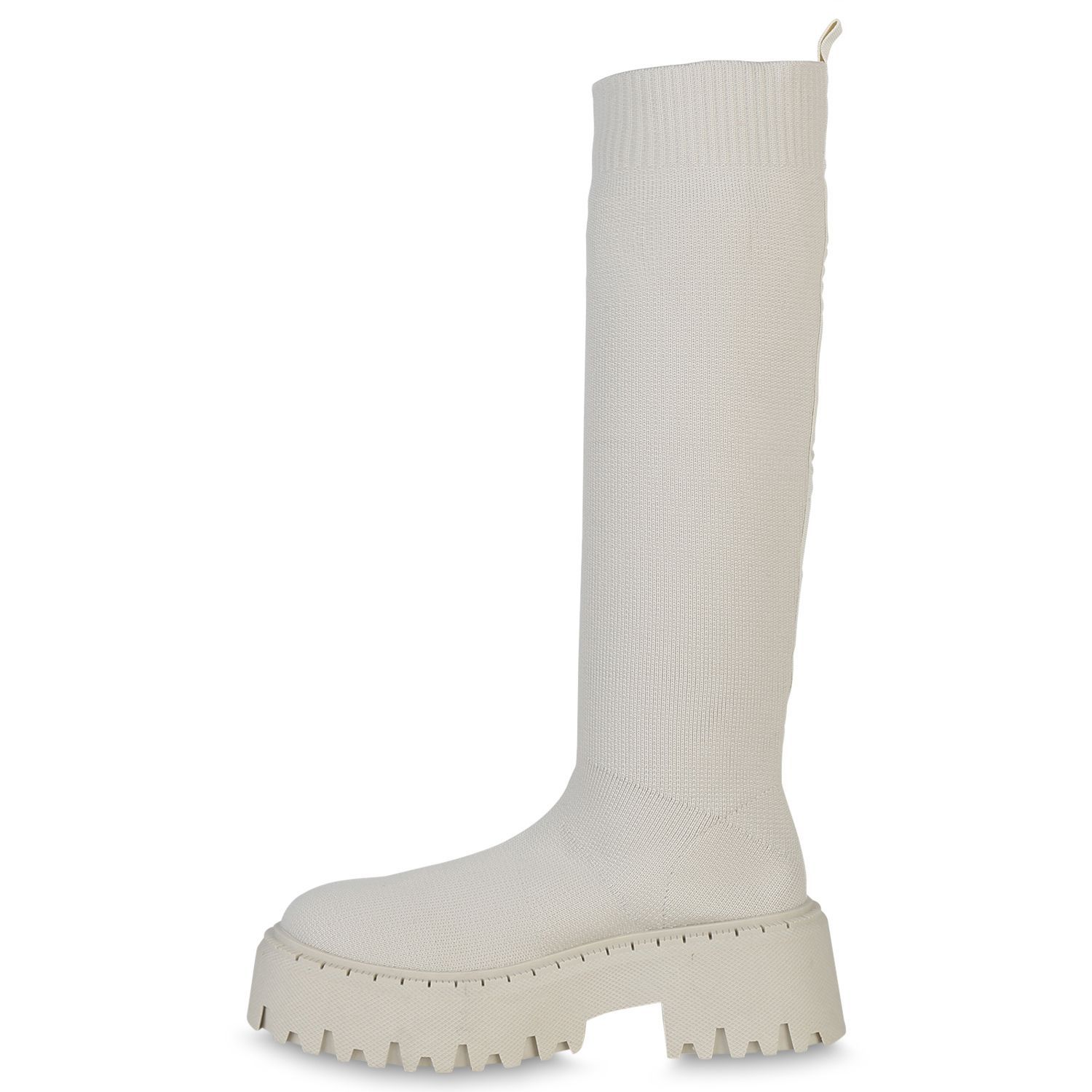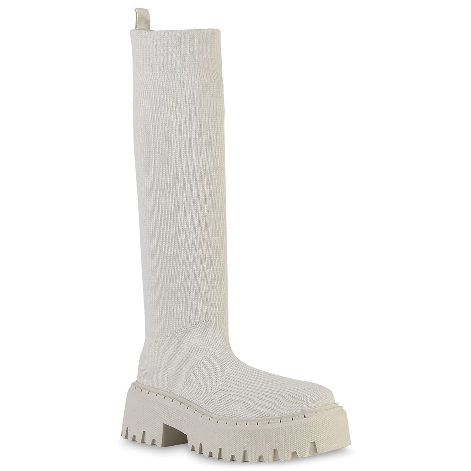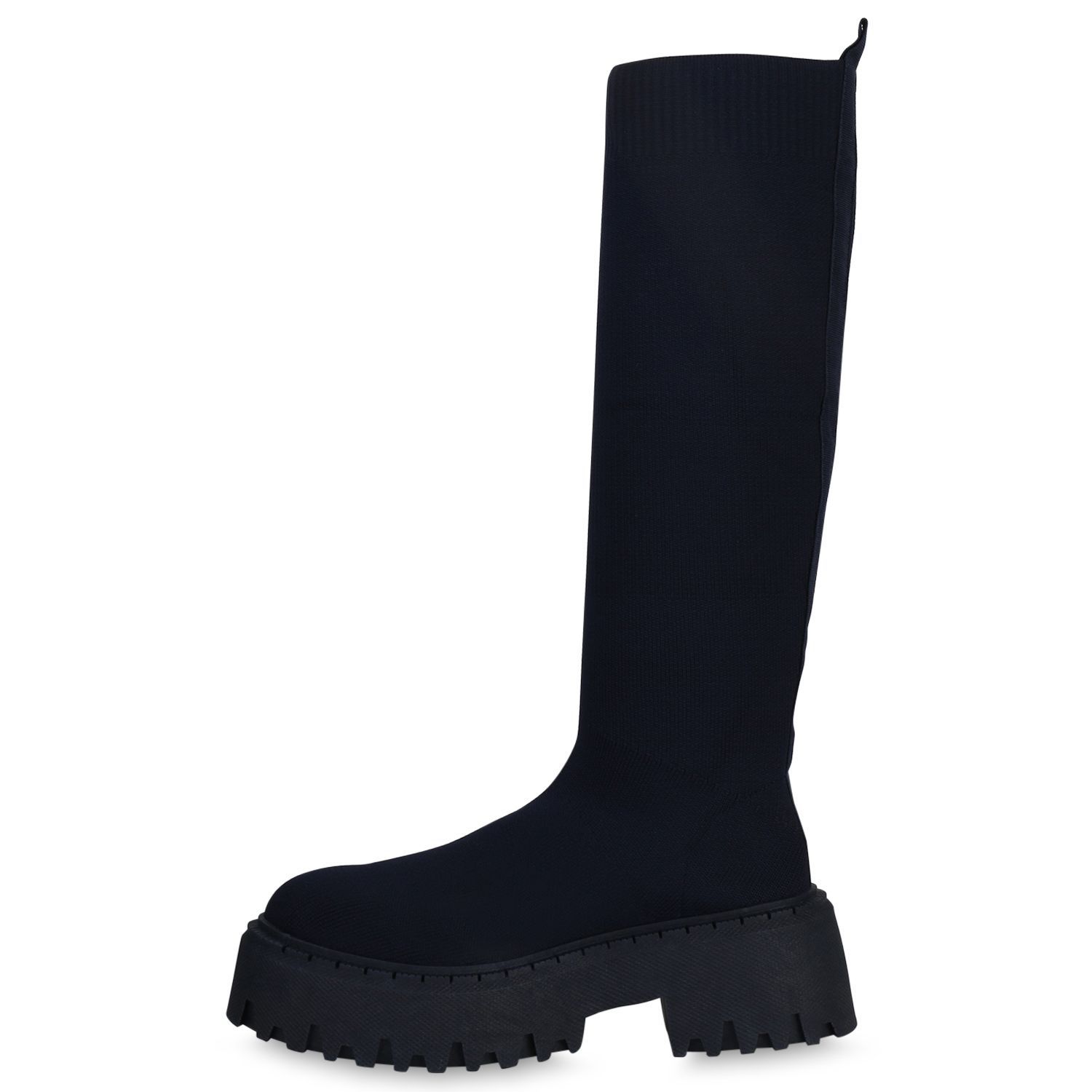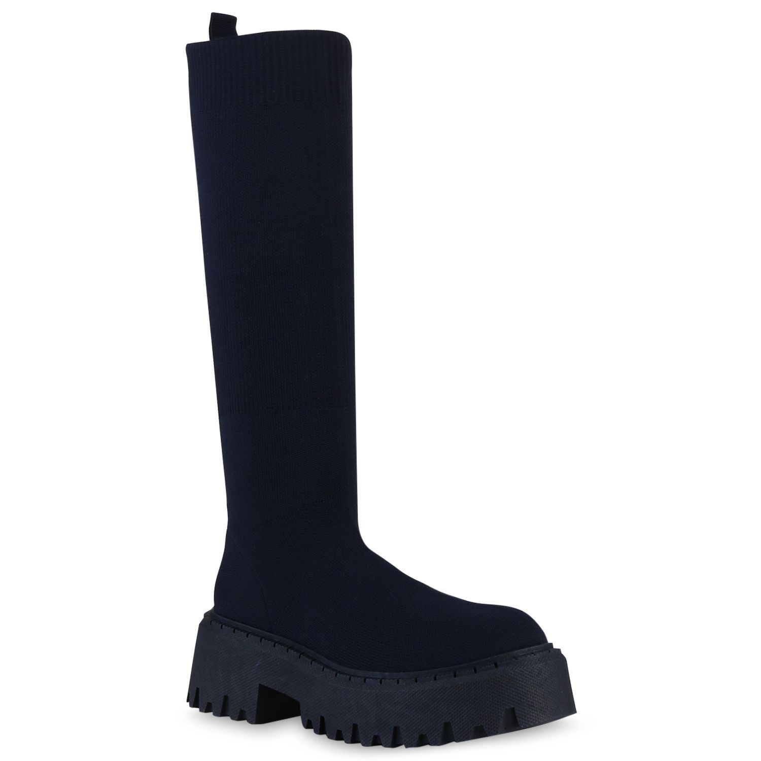VAN HILL Damen Plateaustiefel Stiefel Blockabsatz Strick Profil-Sohle Schuh 839550