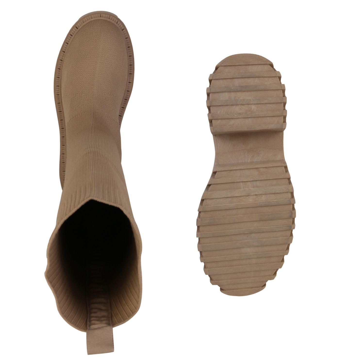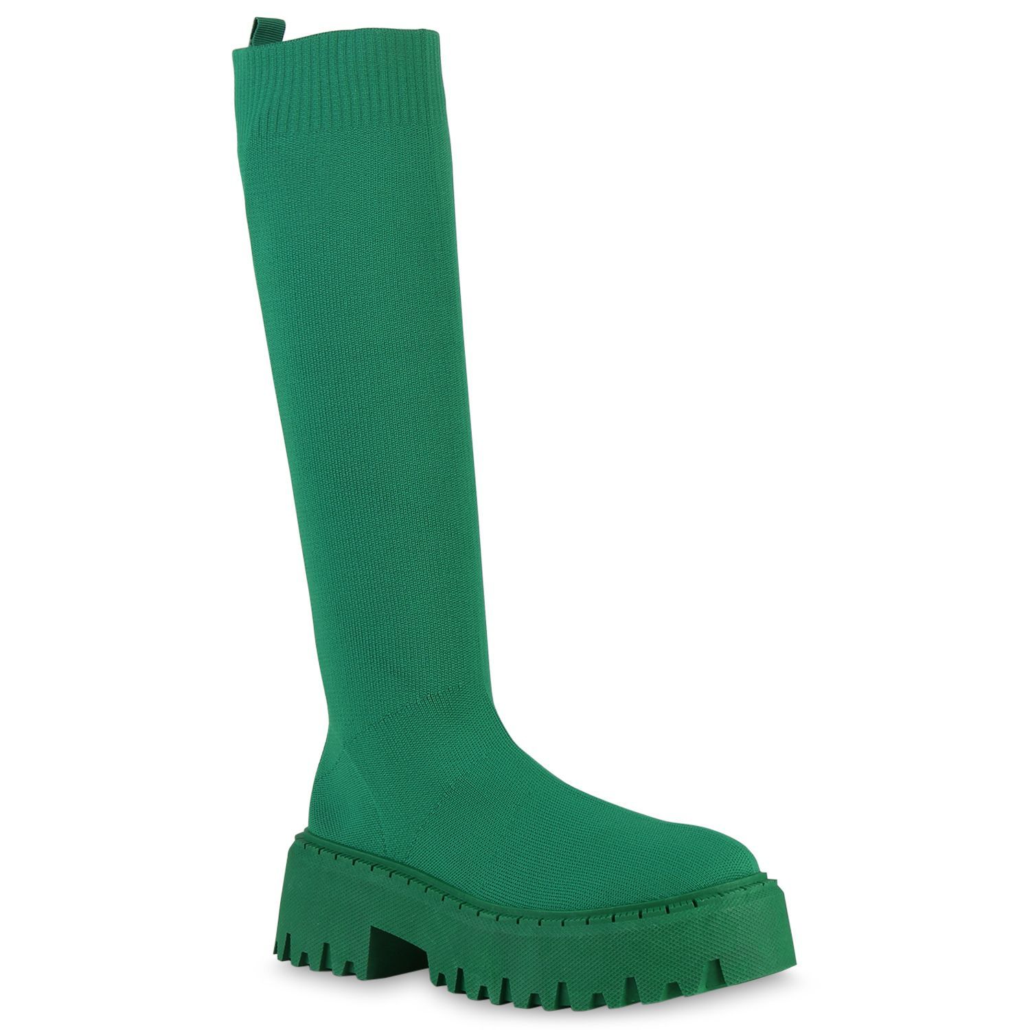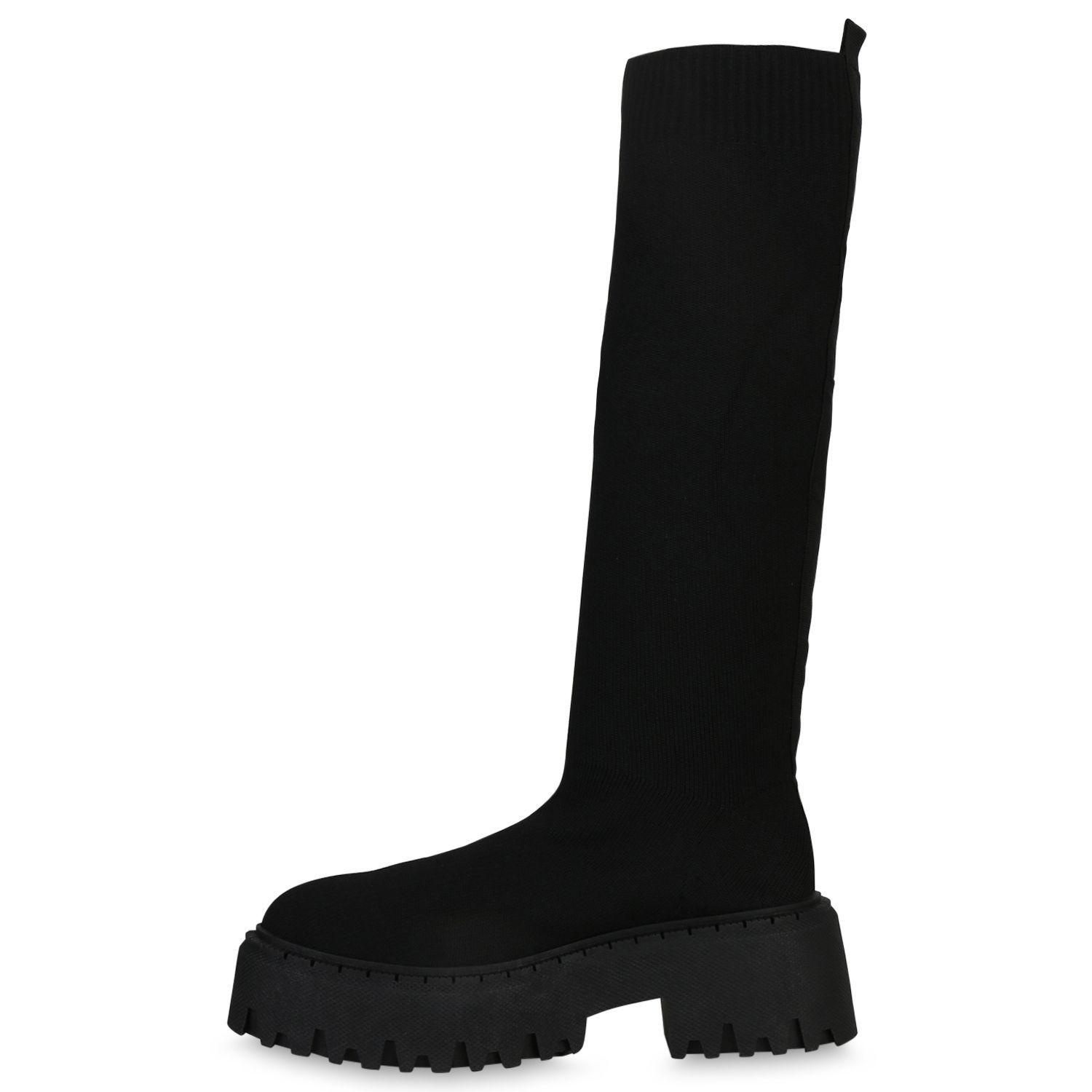 VAN HILL Damen Plateaustiefel Stiefel Blockabsatz Strick Profil-Sohle Schuh 839550