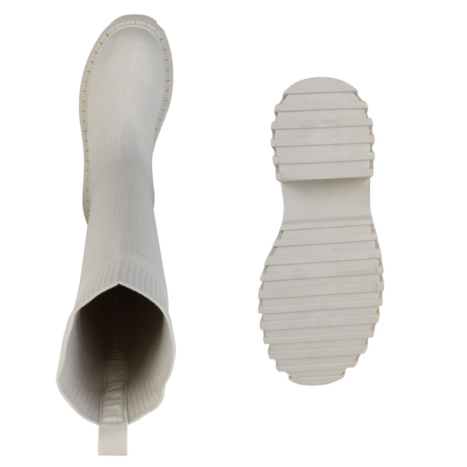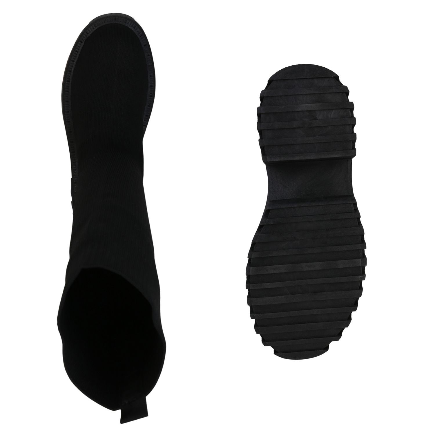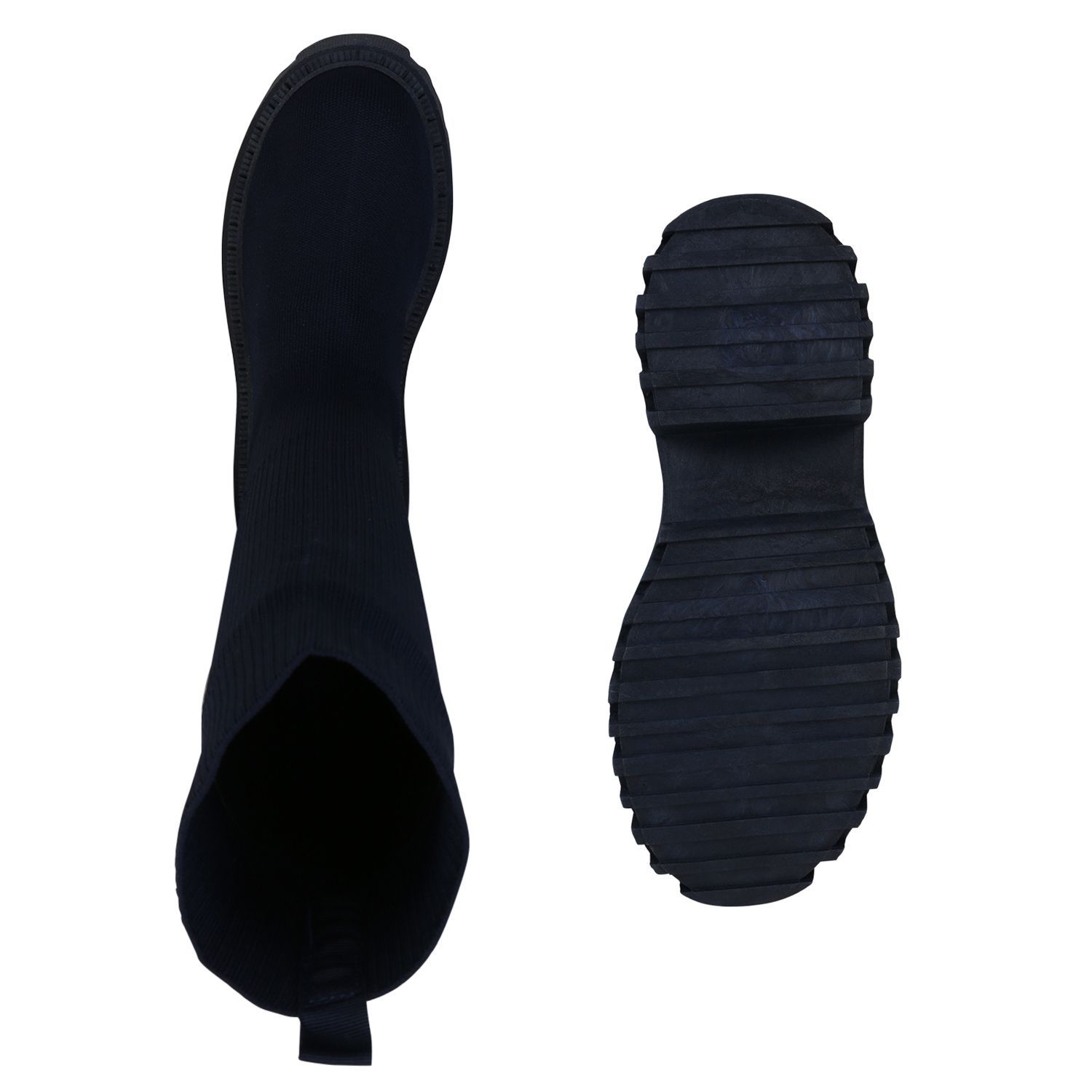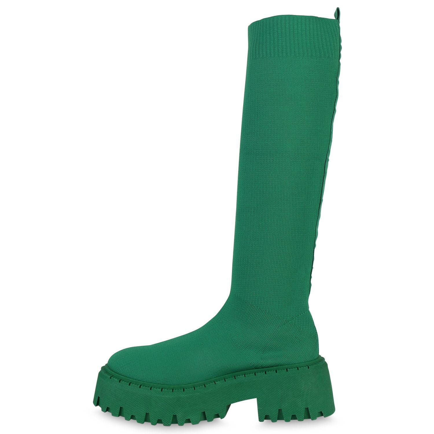 VAN HILL Damen Plateaustiefel Stiefel Blockabsatz Strick Profil-Sohle Schuh 839550