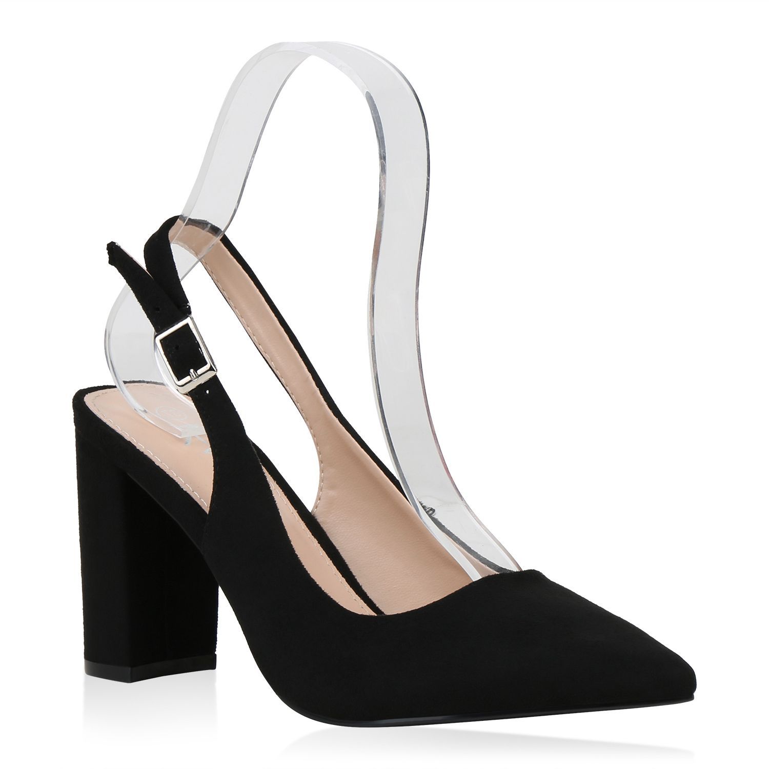 VAN HILL Damen Pumps Slingpumps Blockabsatz High Heel Slingback Abendschuhe 832663