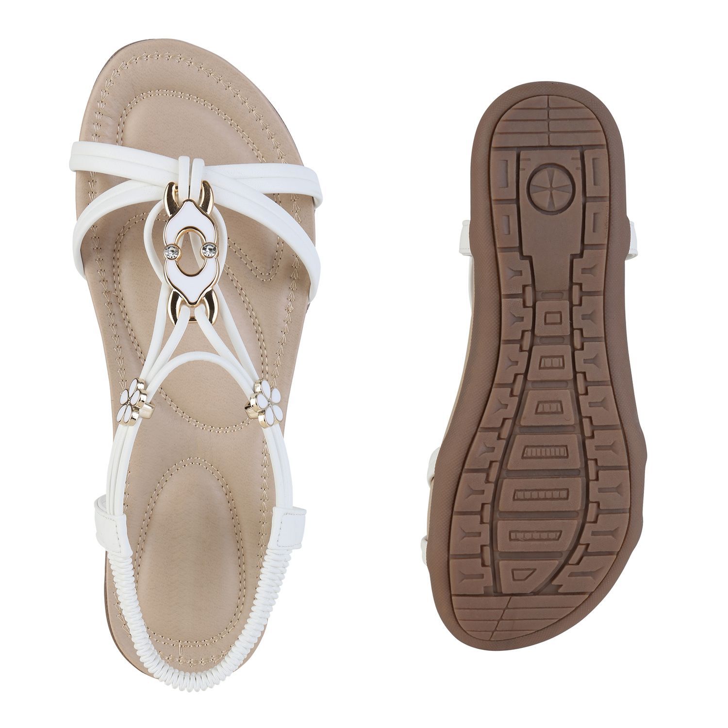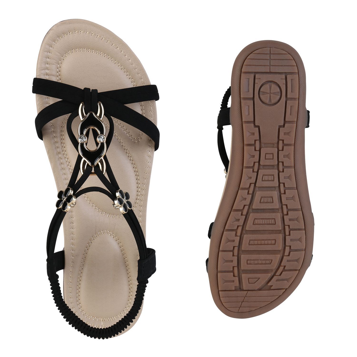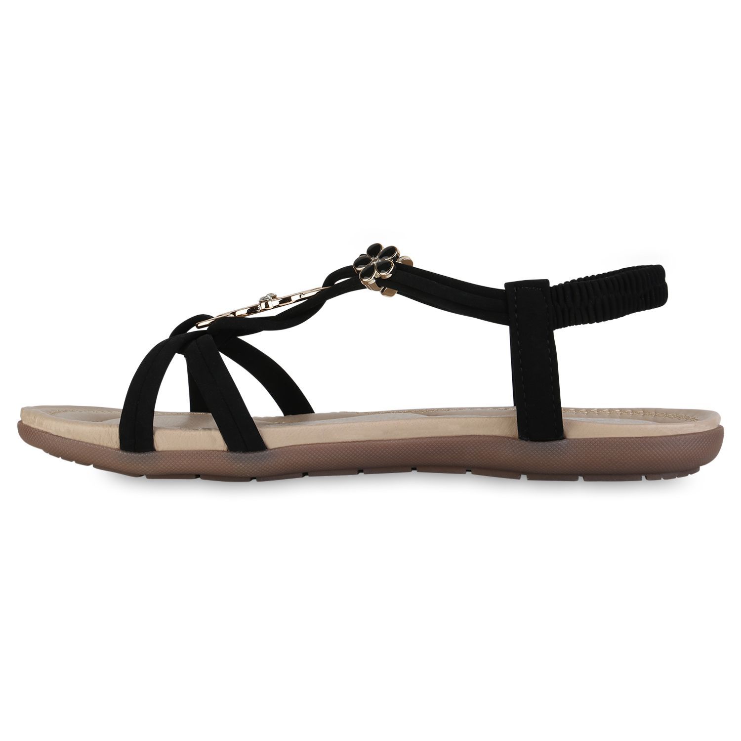 VAN HILL Damen Riemchensandalen Sandalen Zierperlen Strass Sommer Schuhe 841742