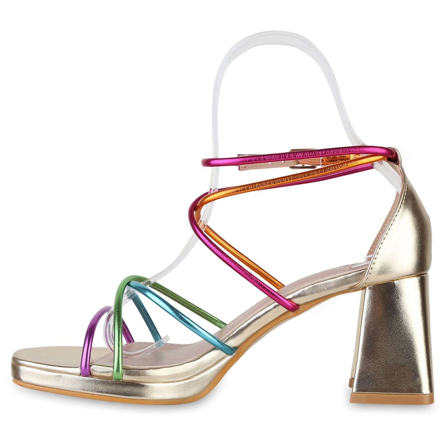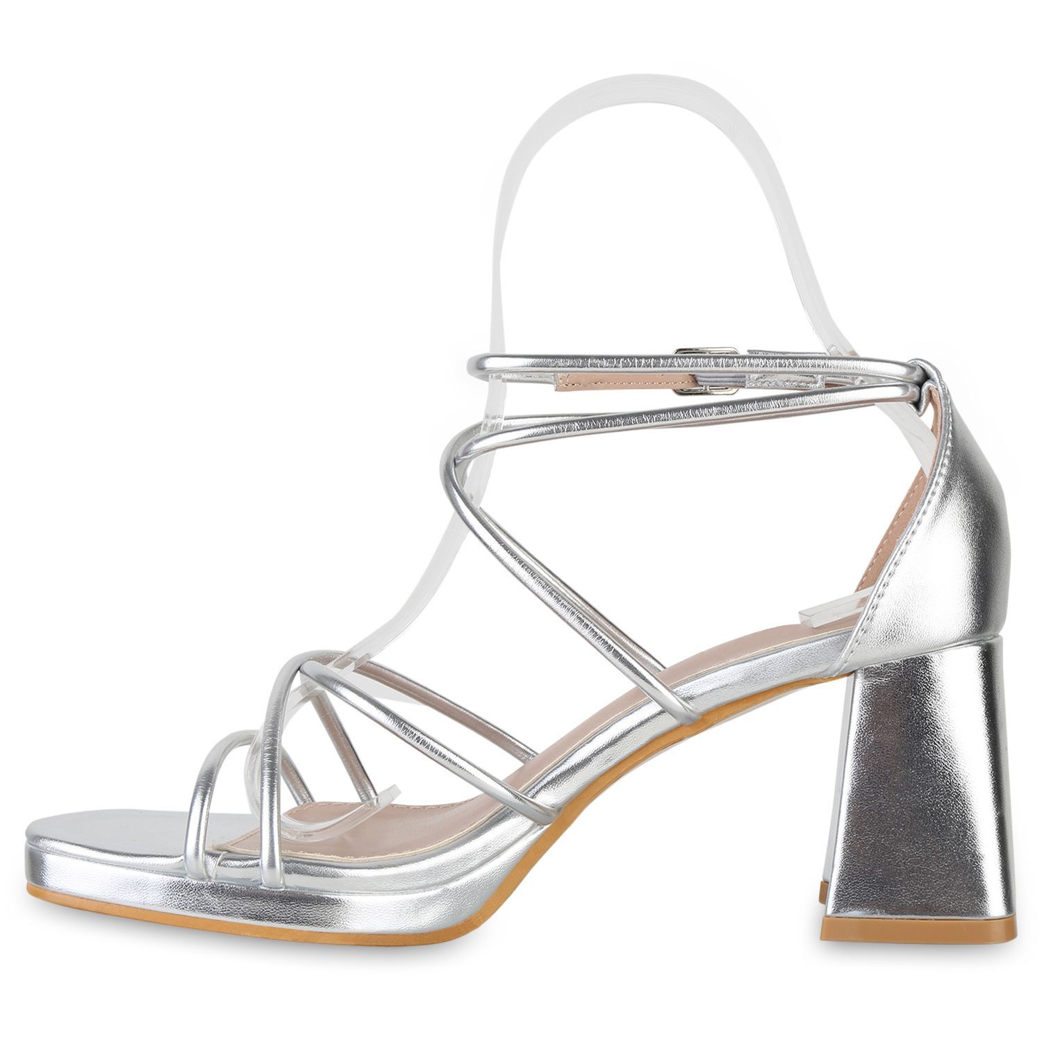 VAN HILL Damen Riemchensandaletten Sandaletten Leder-Optik Plateau-Schuhe 841569