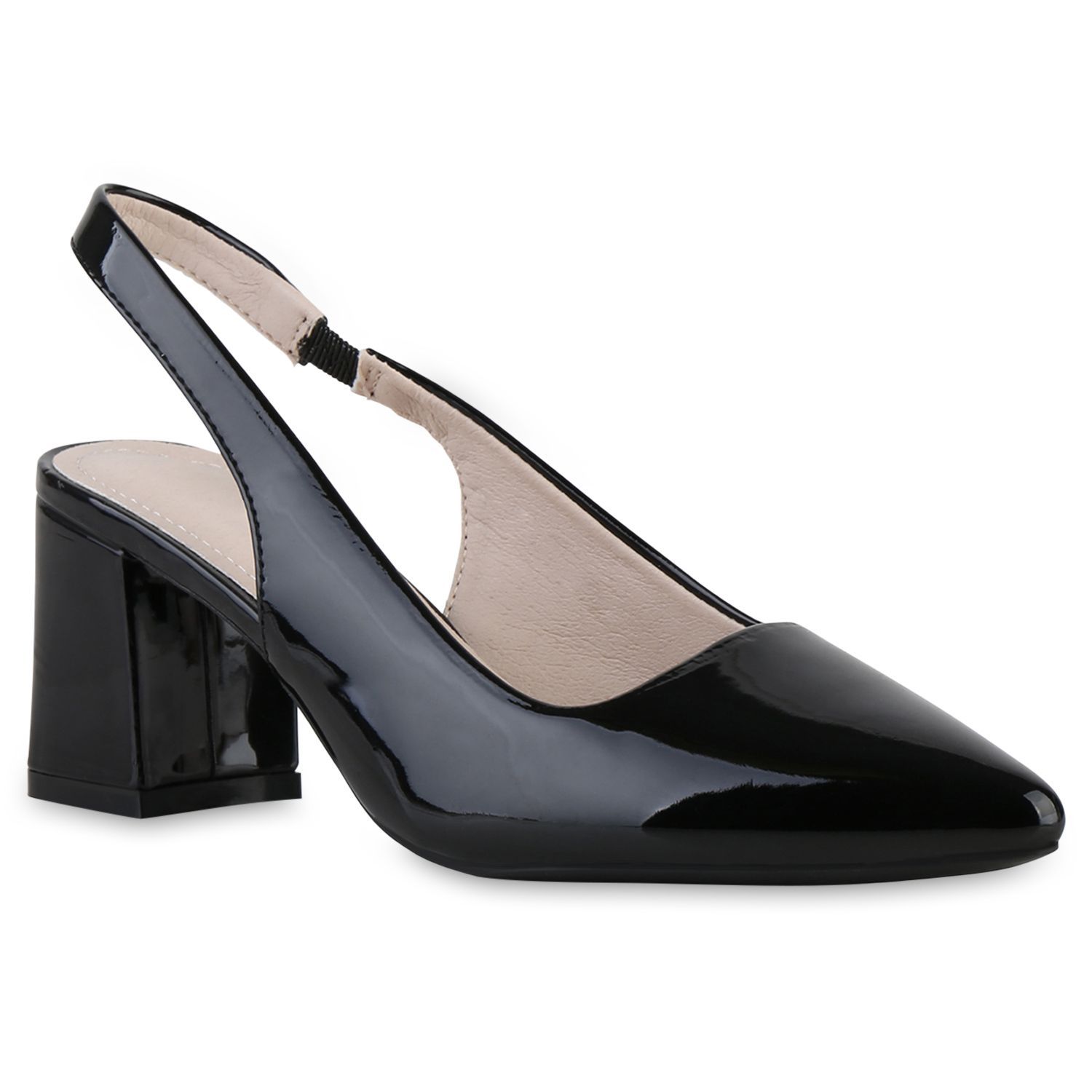 VAN HILL Damen Slingpumps Pumps Spitze Absatzschuhe Klassische Lack Schuhe 841548