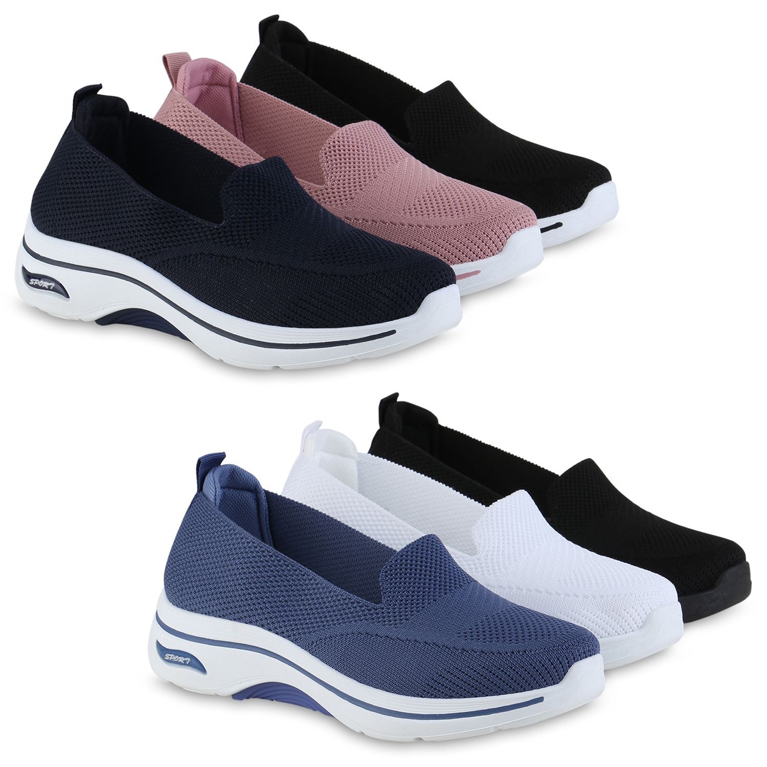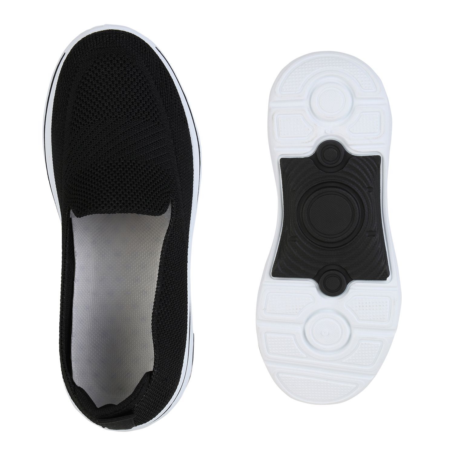 VAN HILL Damen Slip Ons Sportschuhe Sportliche Strick Profil-Sohle Schuhe 841624