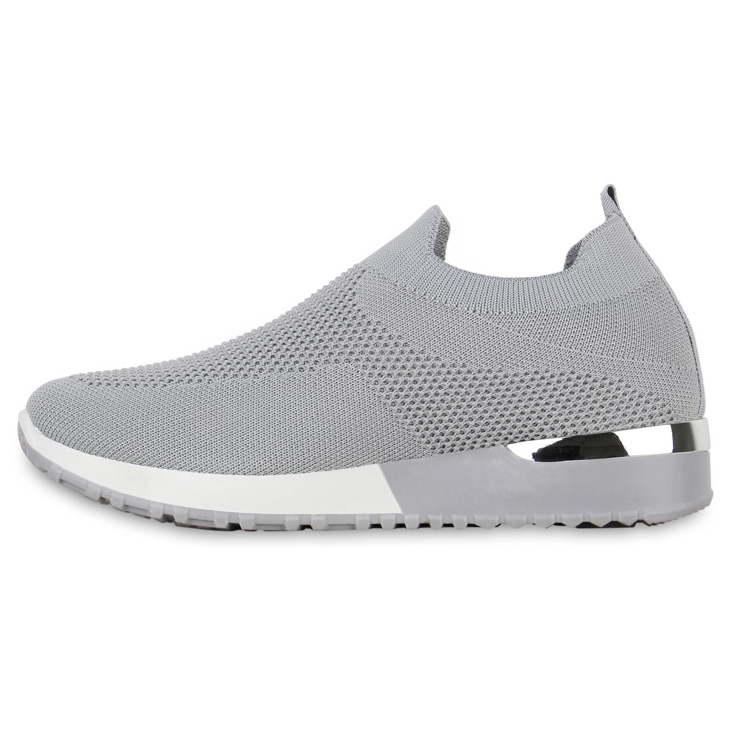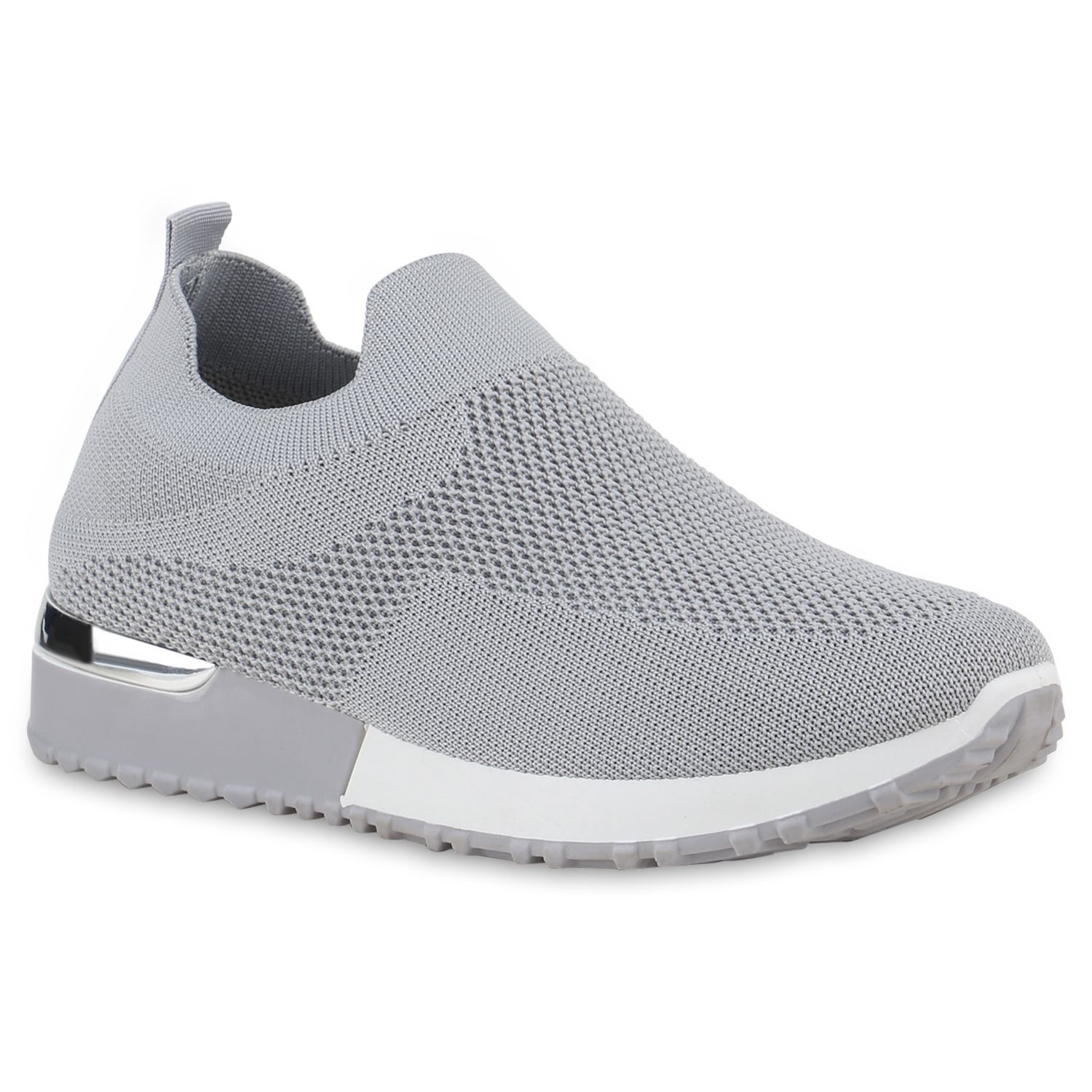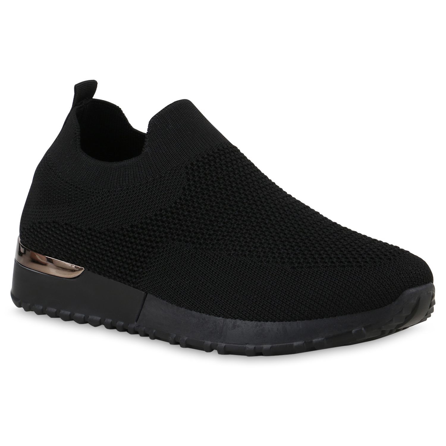 VAN HILL Damen Slip Ons Sportschuhe Sportliche Strick Profil-Sohle Schuhe 841645