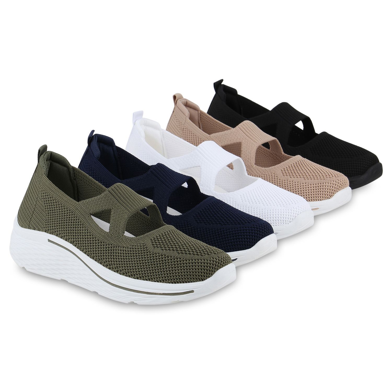 VAN HILL Damen Slip Ons Sportschuhe Sportliche Strick Profil-Sohle Schuhe 841667