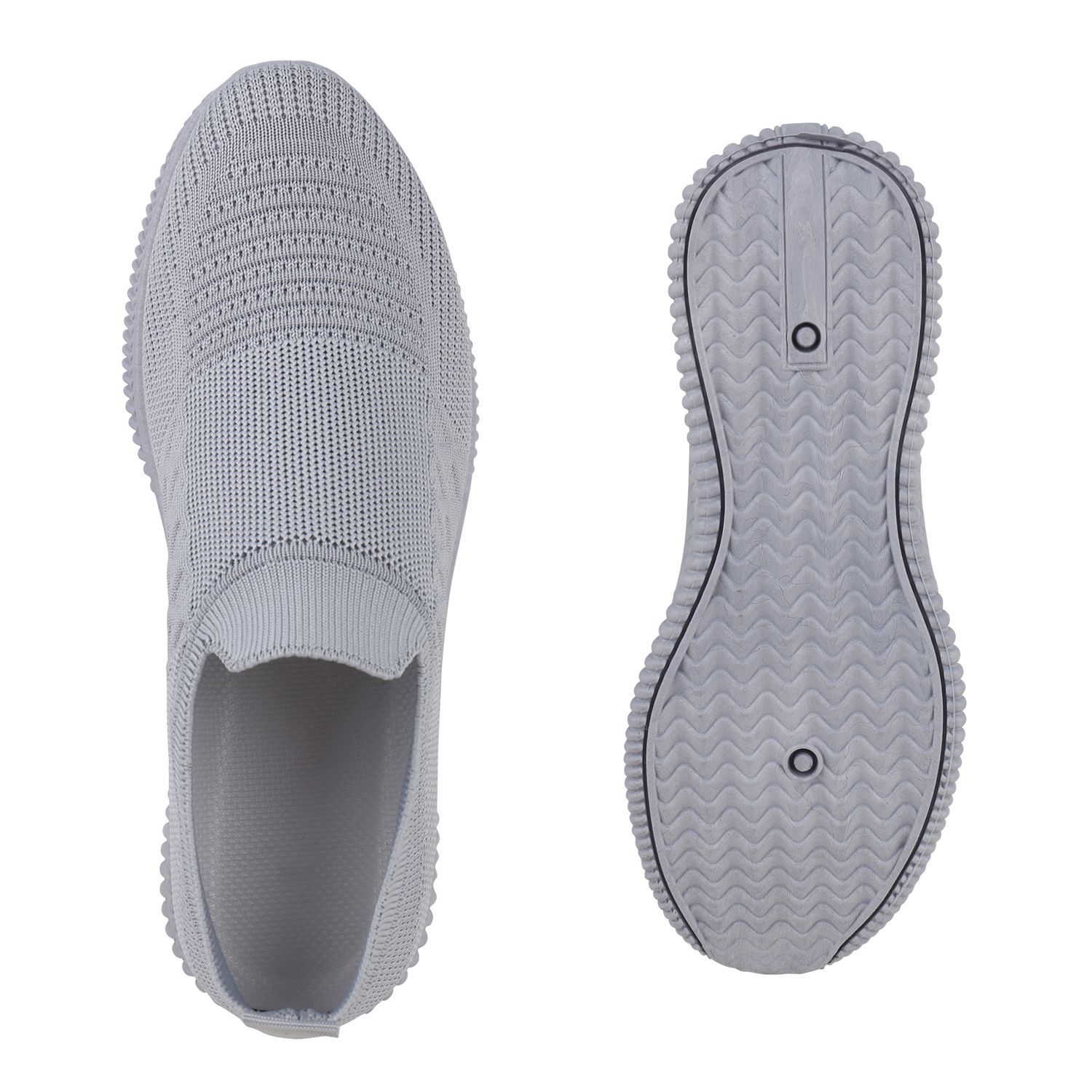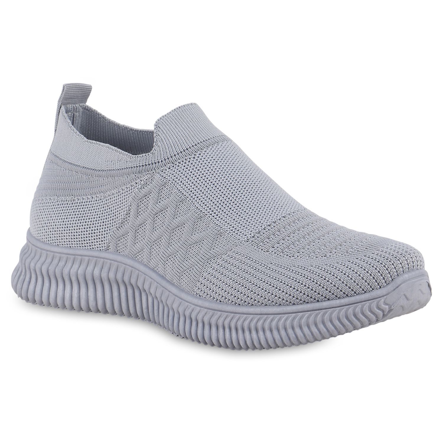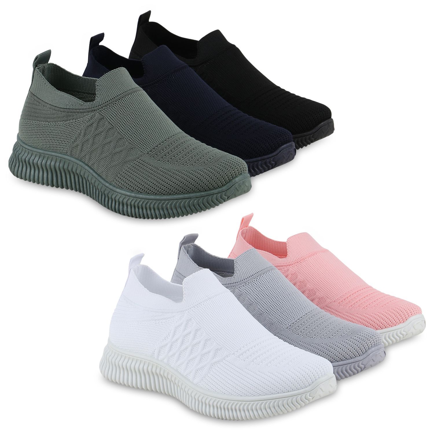 VAN HILL Damen Slip Ons Sportschuhe Sportliche Strick Profil-Sohle Schuhe 841676