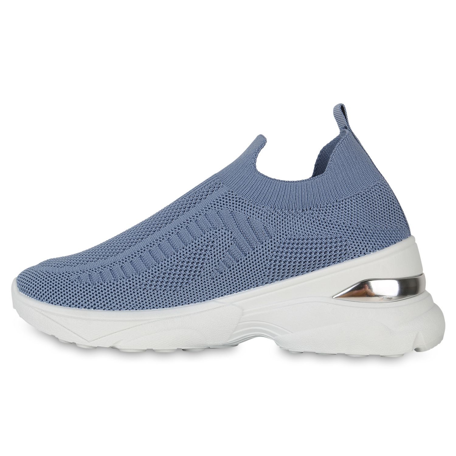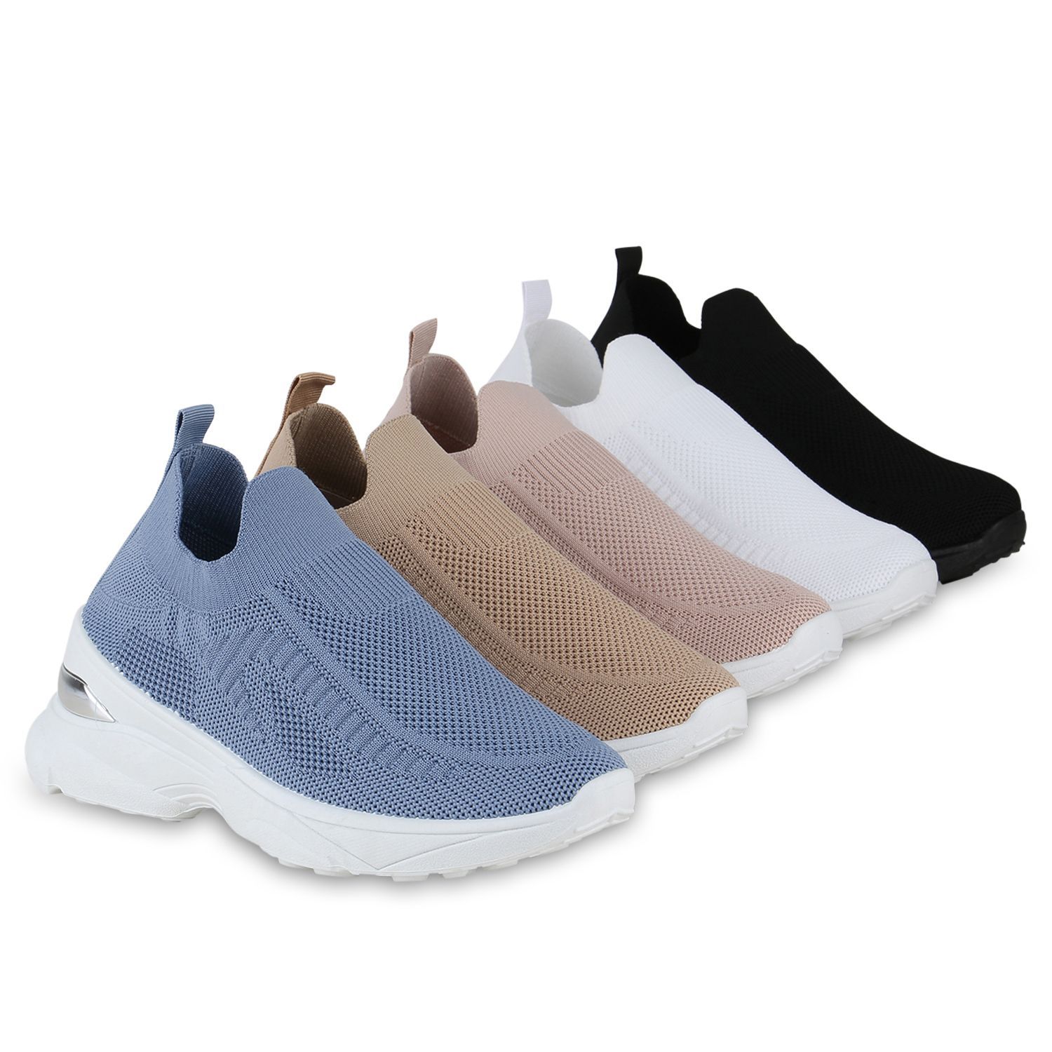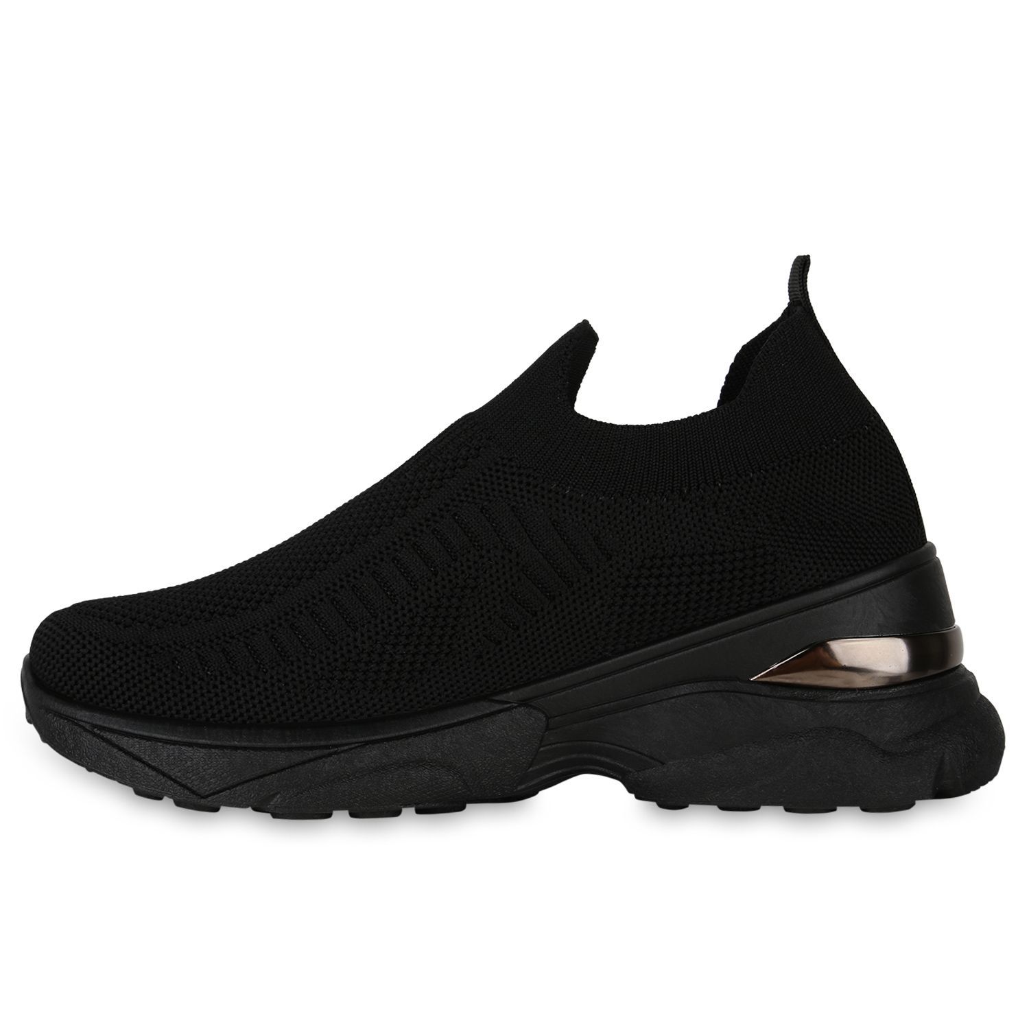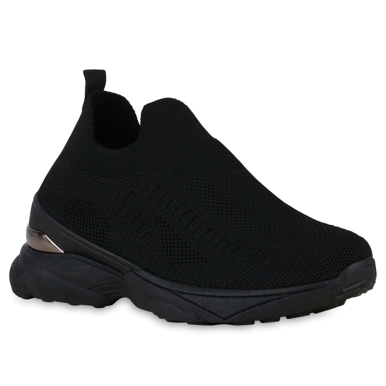 VAN HILL Damen Slip Ons Sportschuhe Strick Profil-Sohle Stoff Schuhe 841254