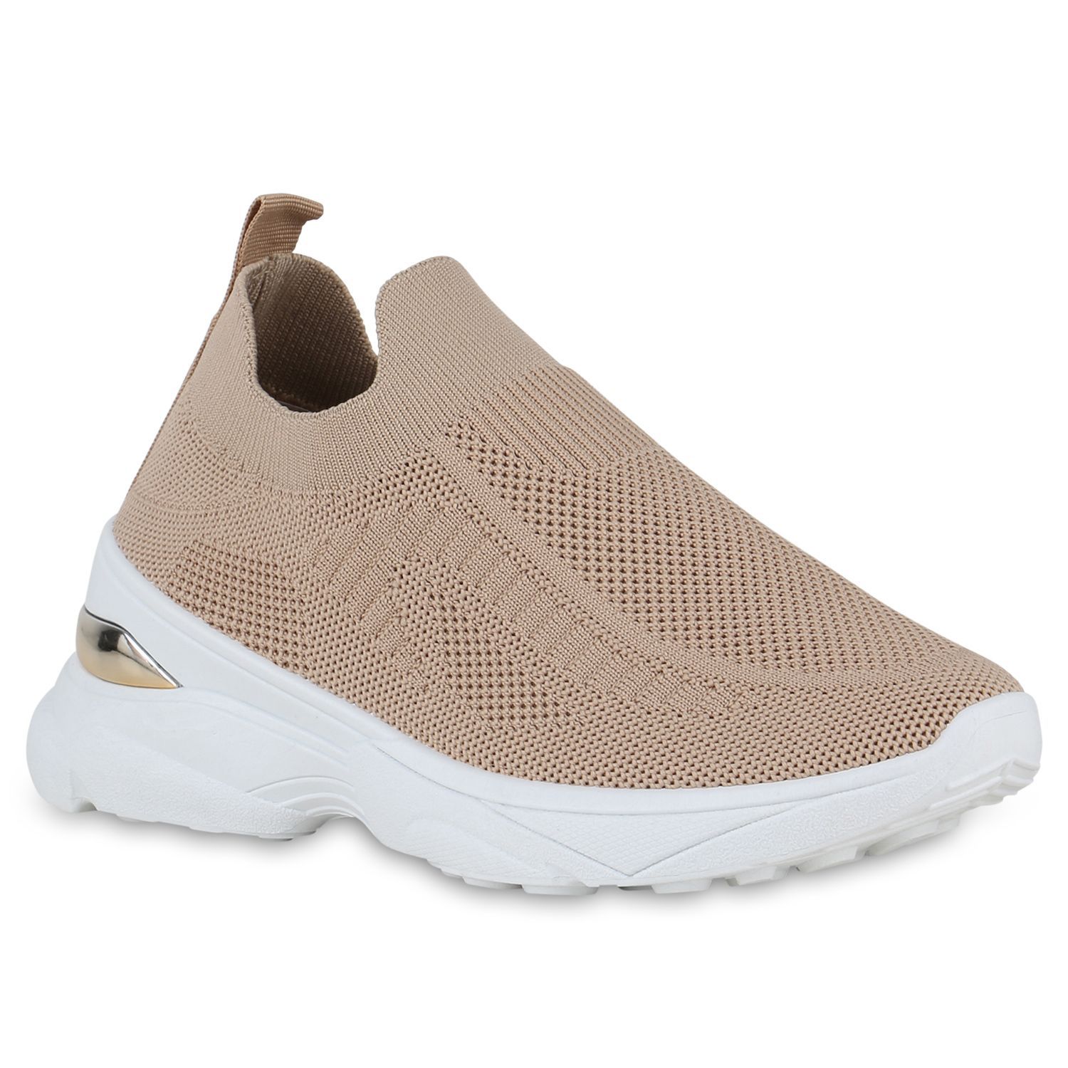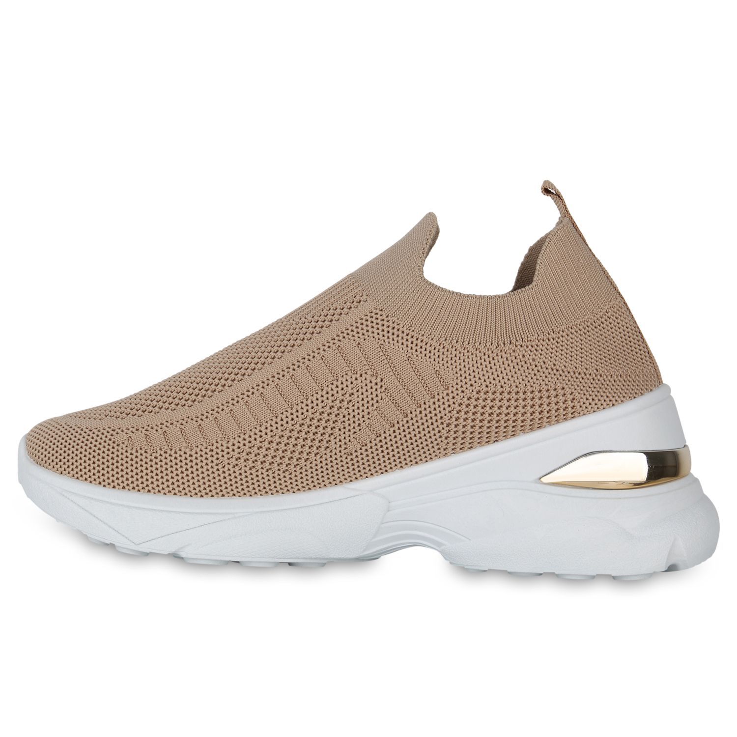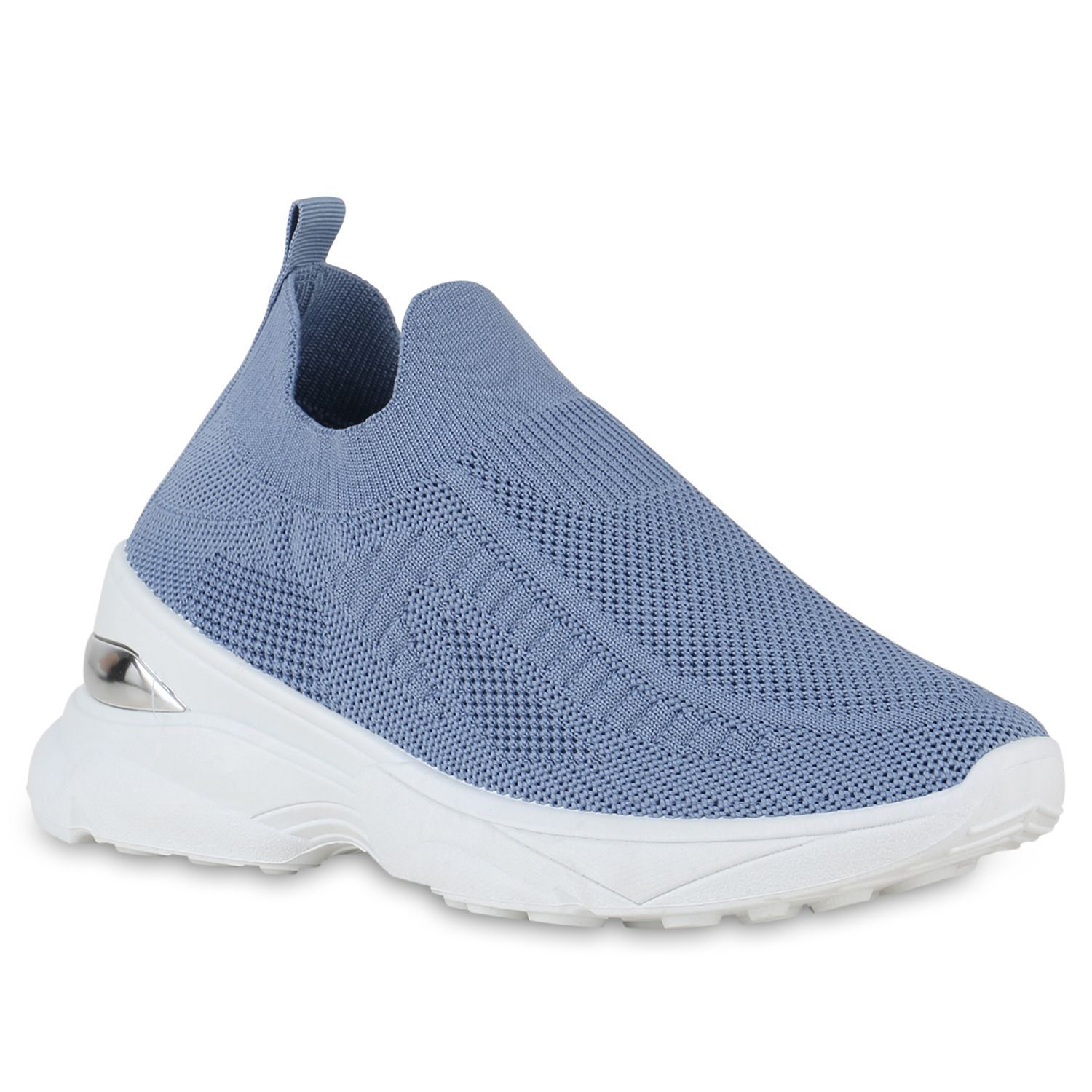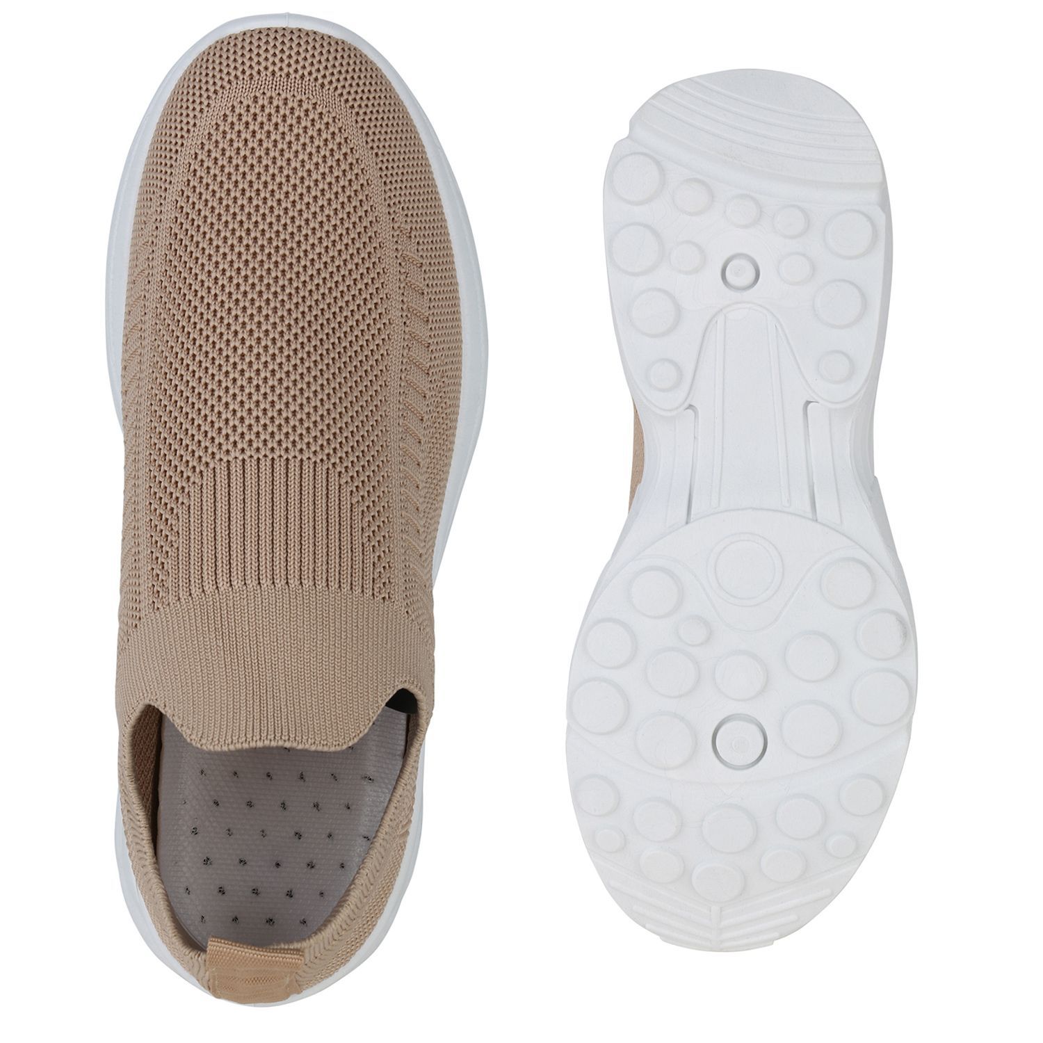 VAN HILL Damen Slip Ons Sportschuhe Strick Profil-Sohle Stoff Schuhe 841254