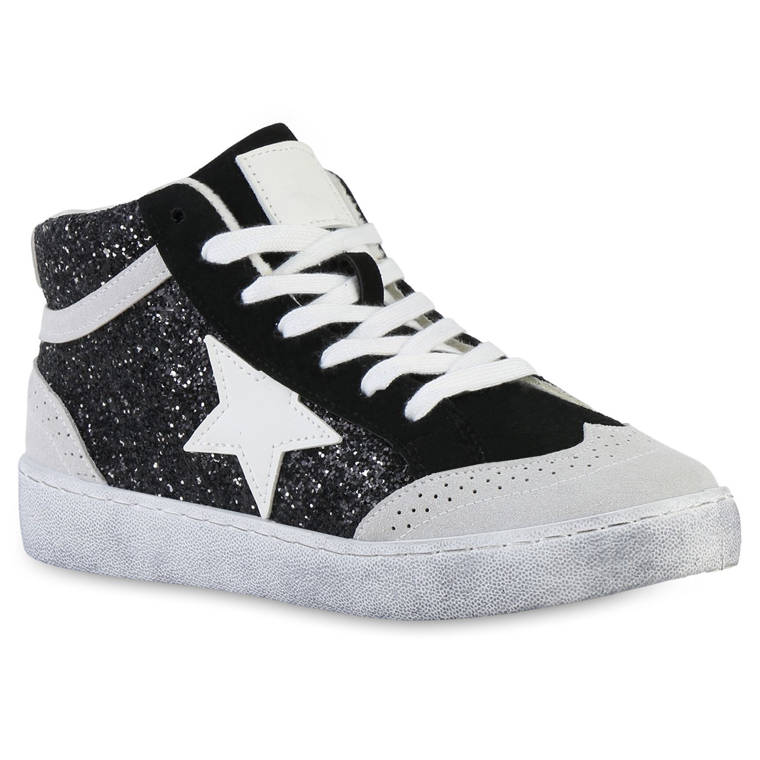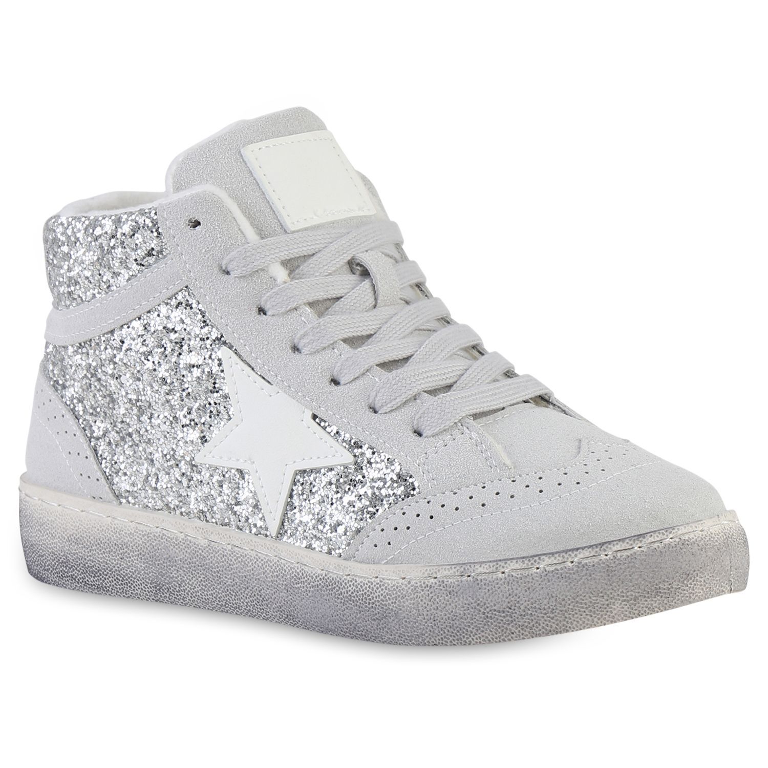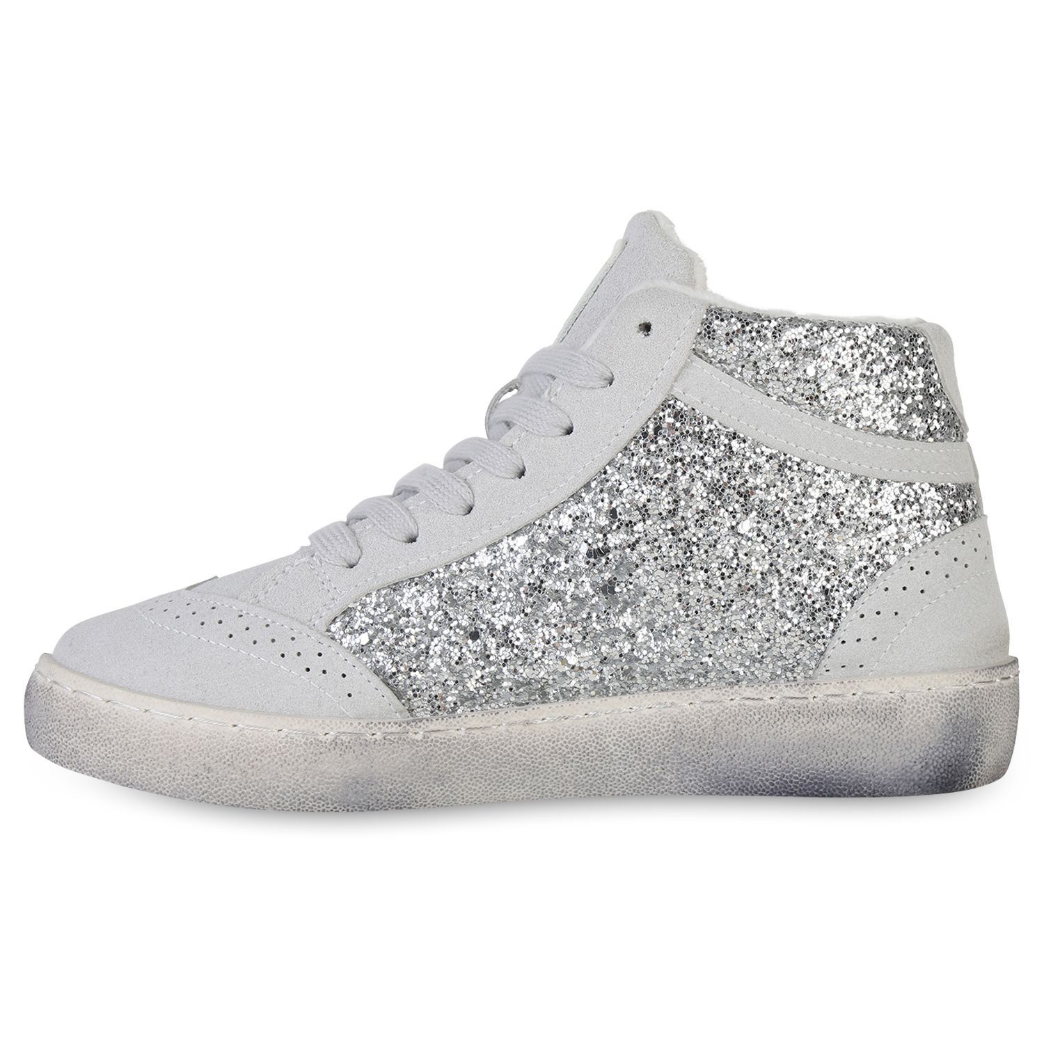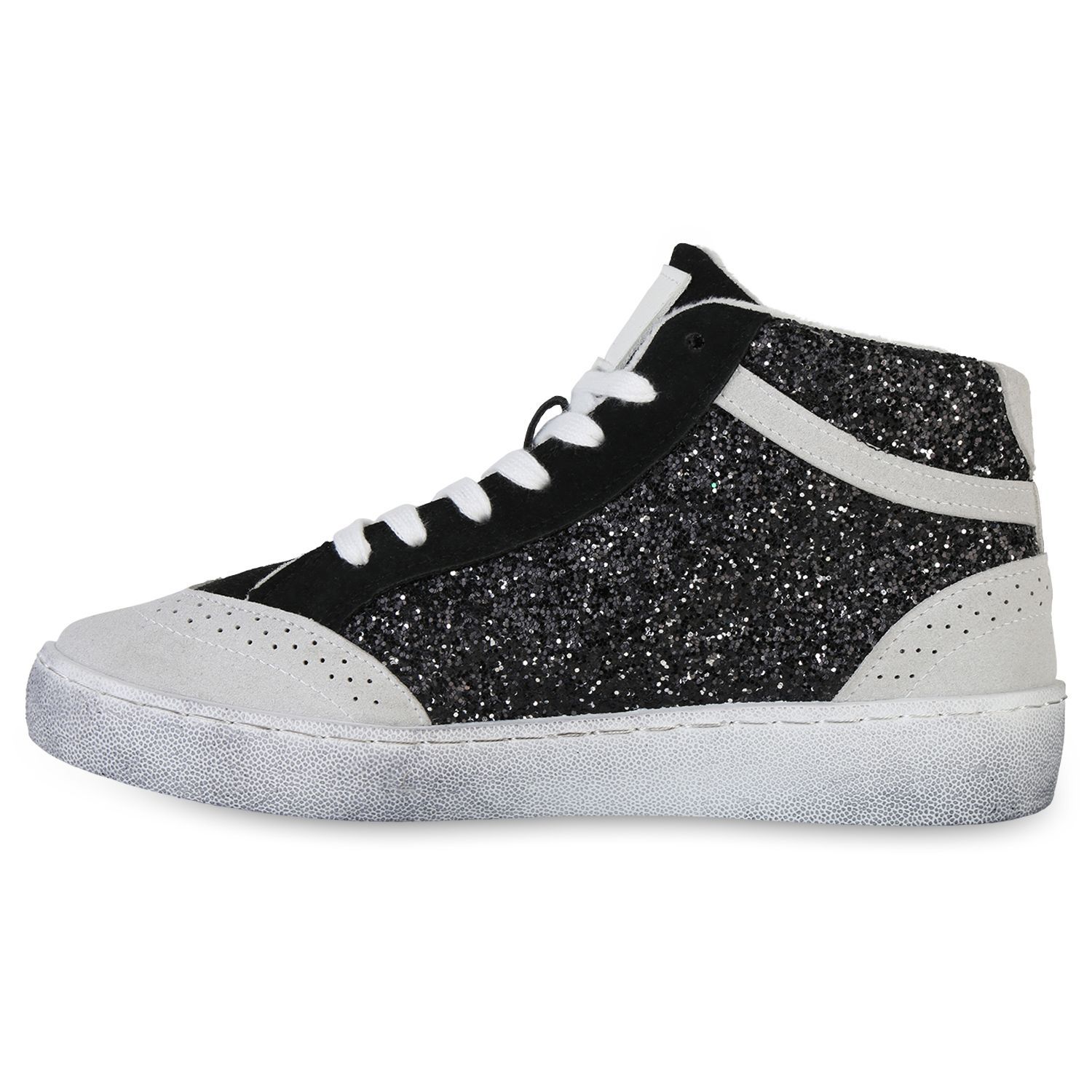 VAN HILL Damen Sneaker High Schnürer Glitzer Freizeit Schnür-Schuhe 841577