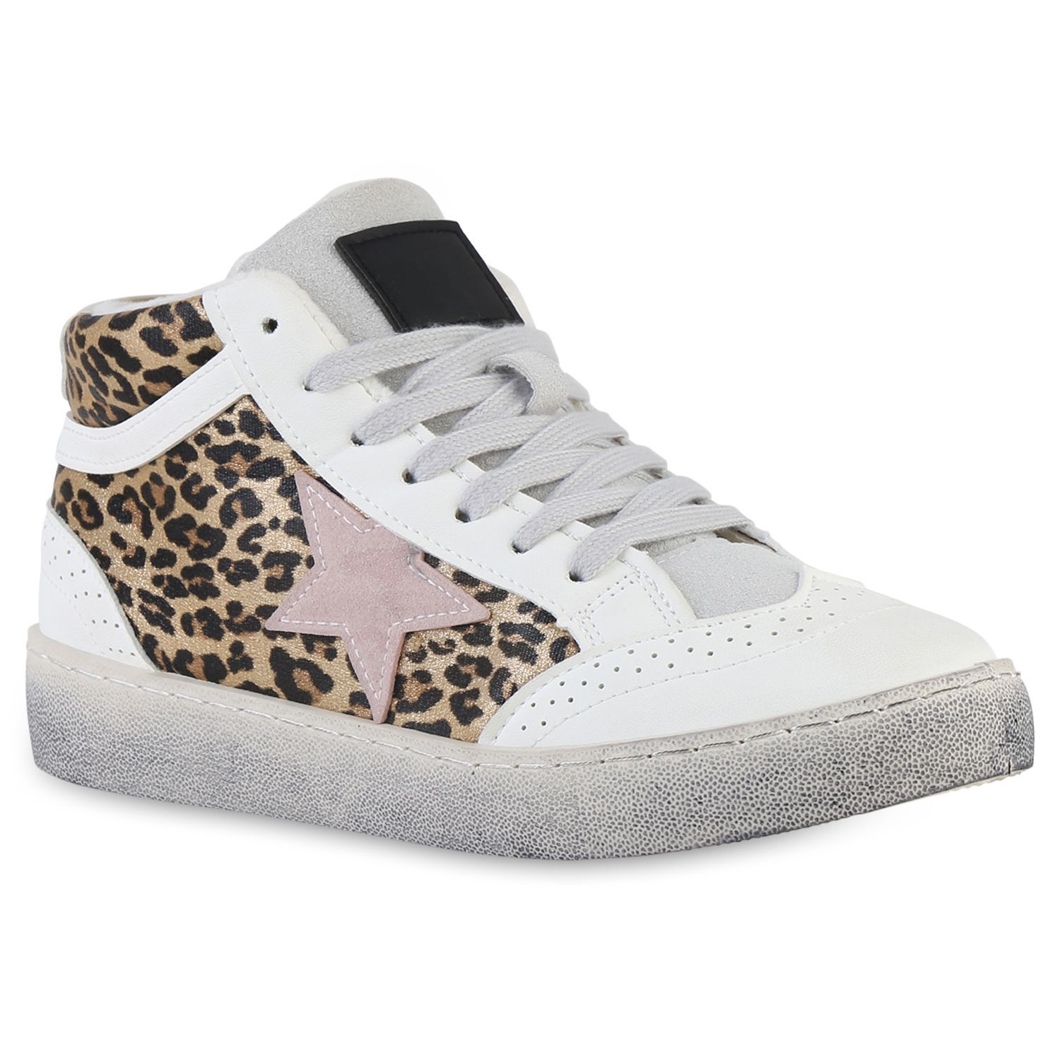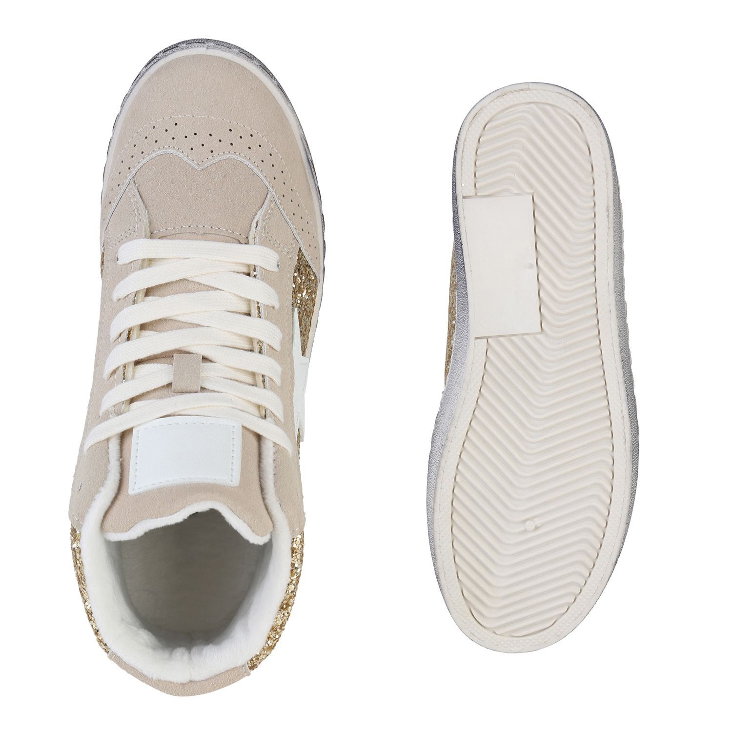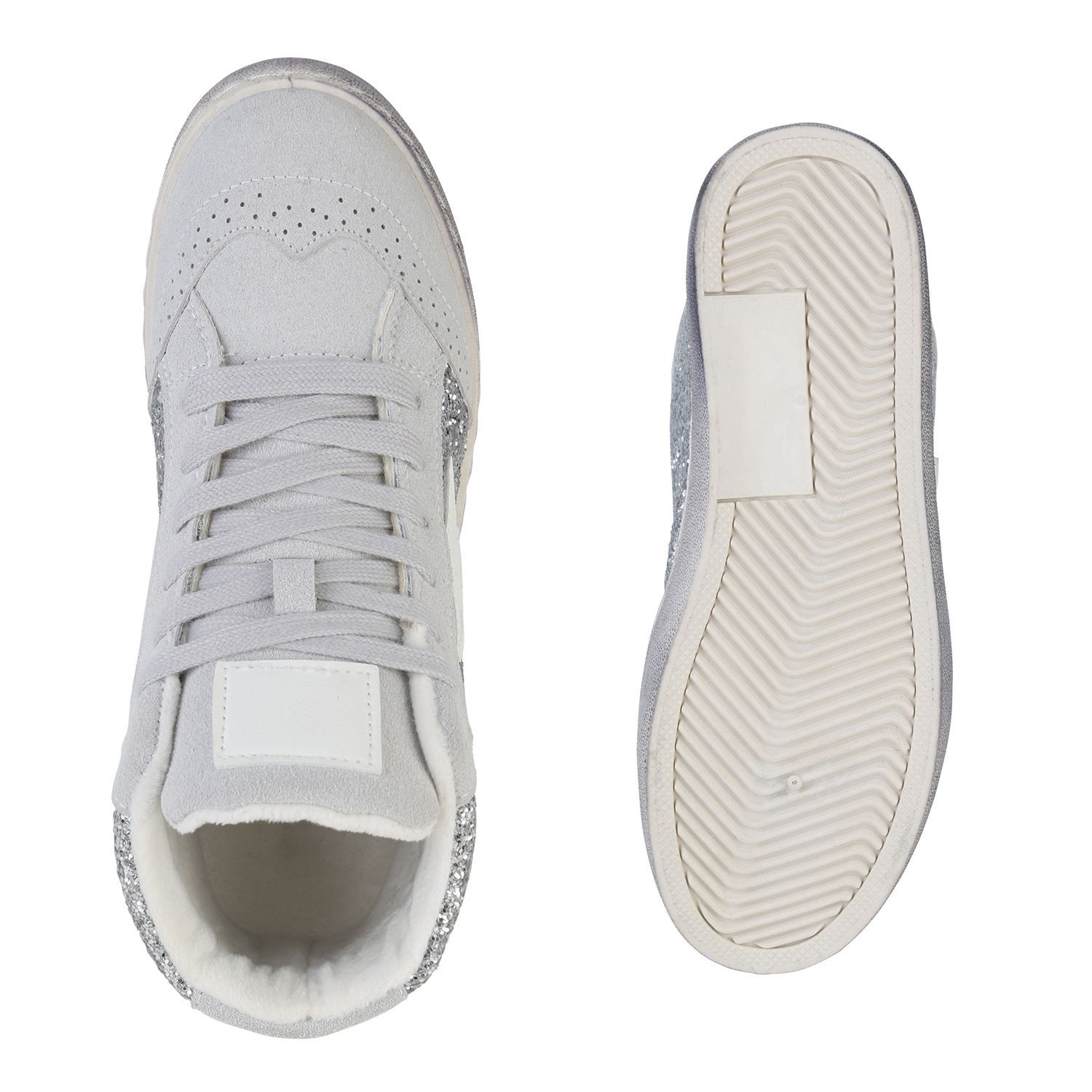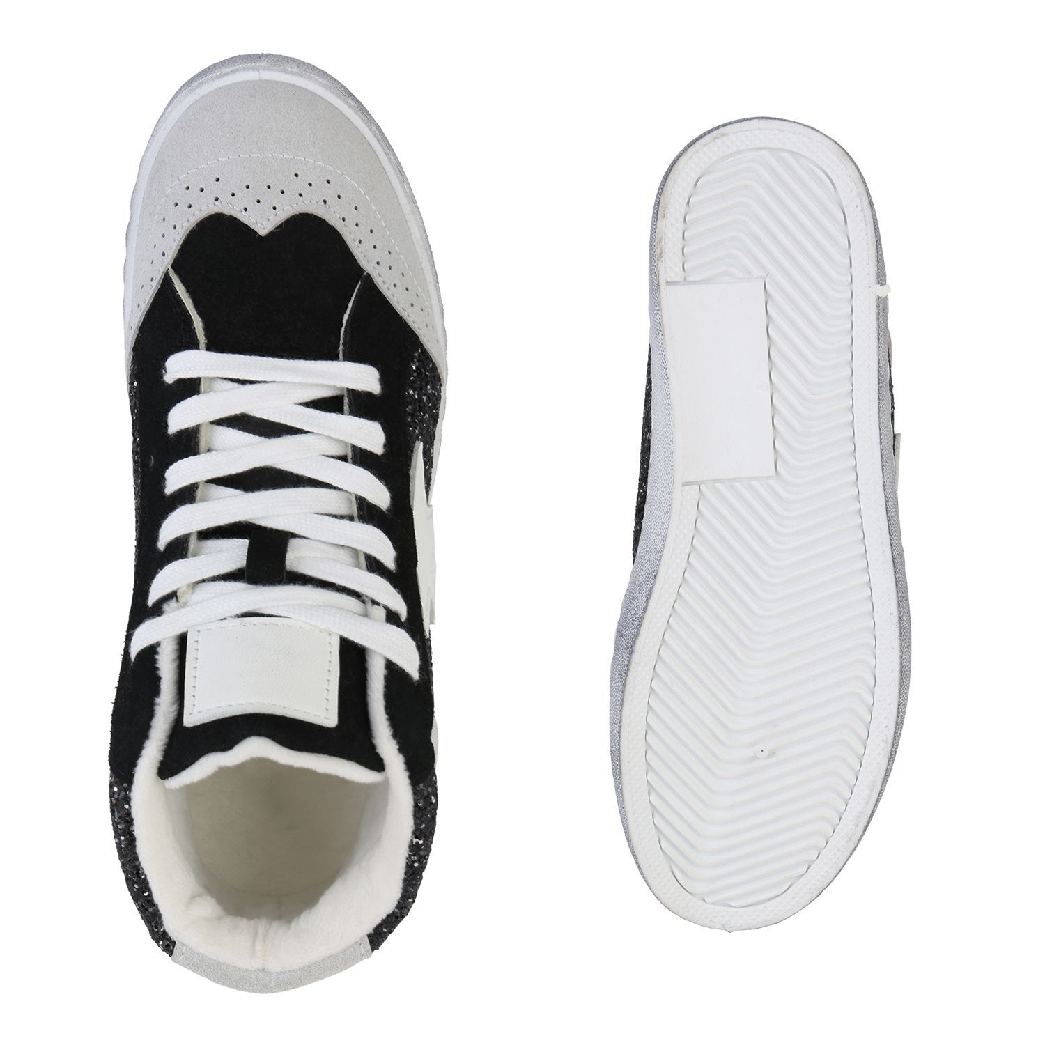 VAN HILL Damen Sneaker High Schnürer Glitzer Freizeit Schnür-Schuhe 841577