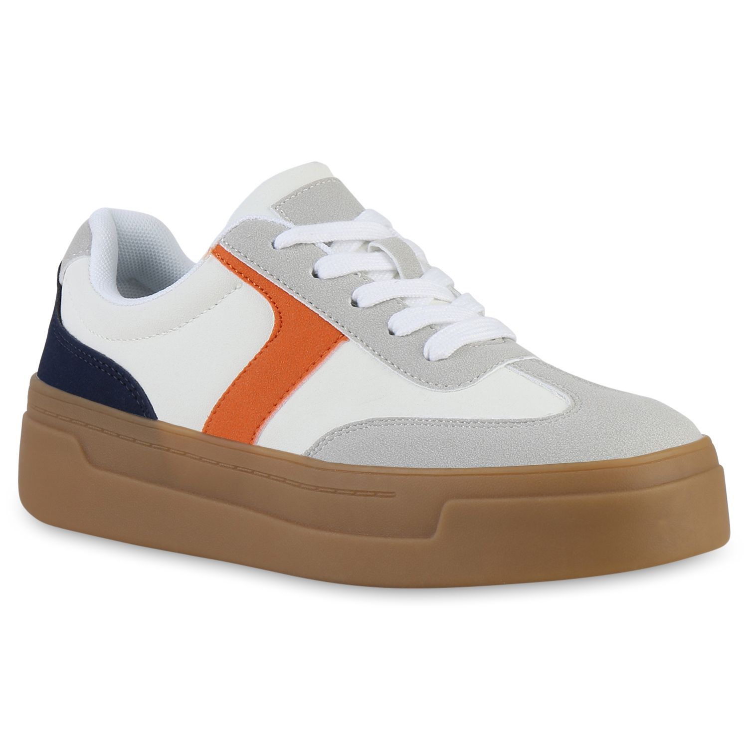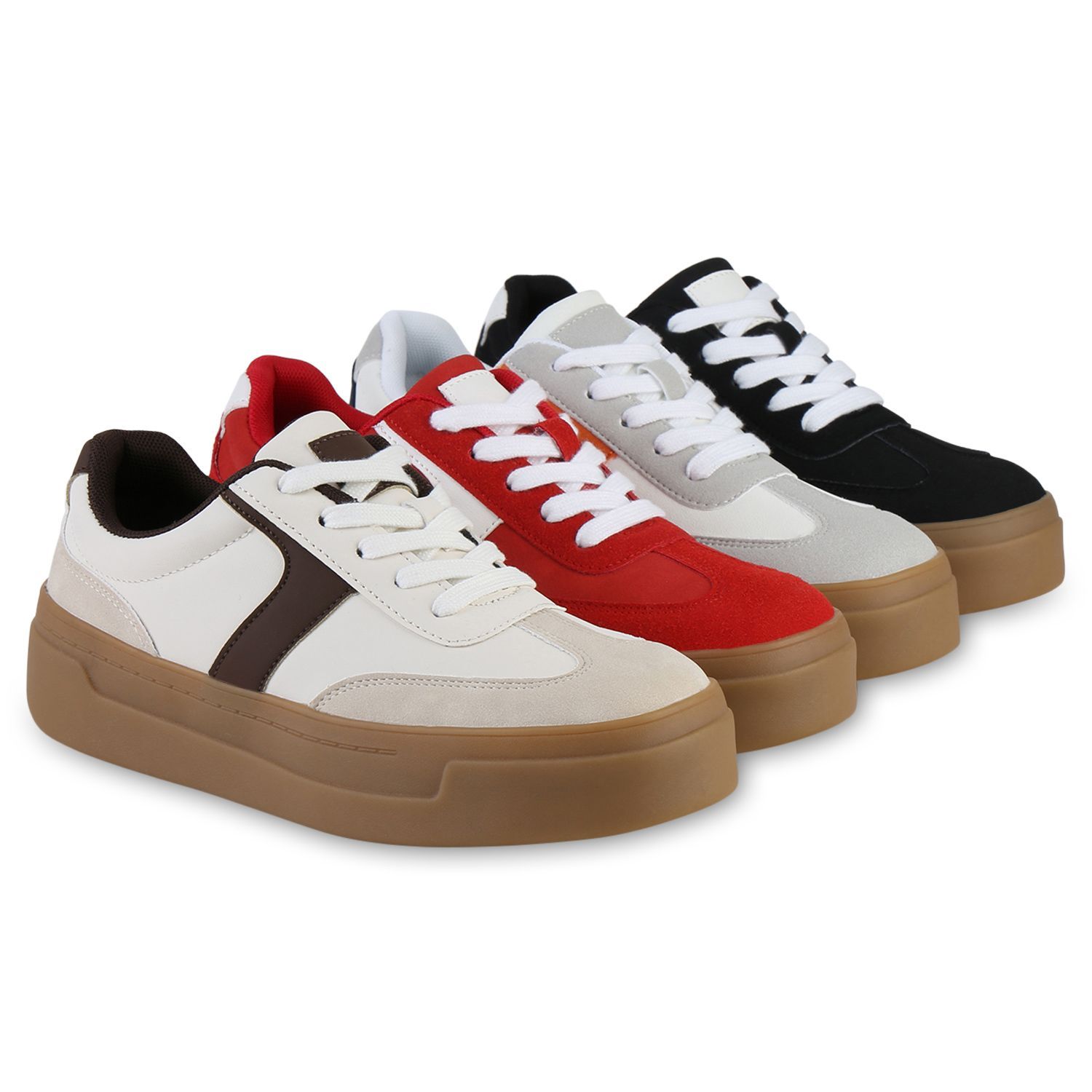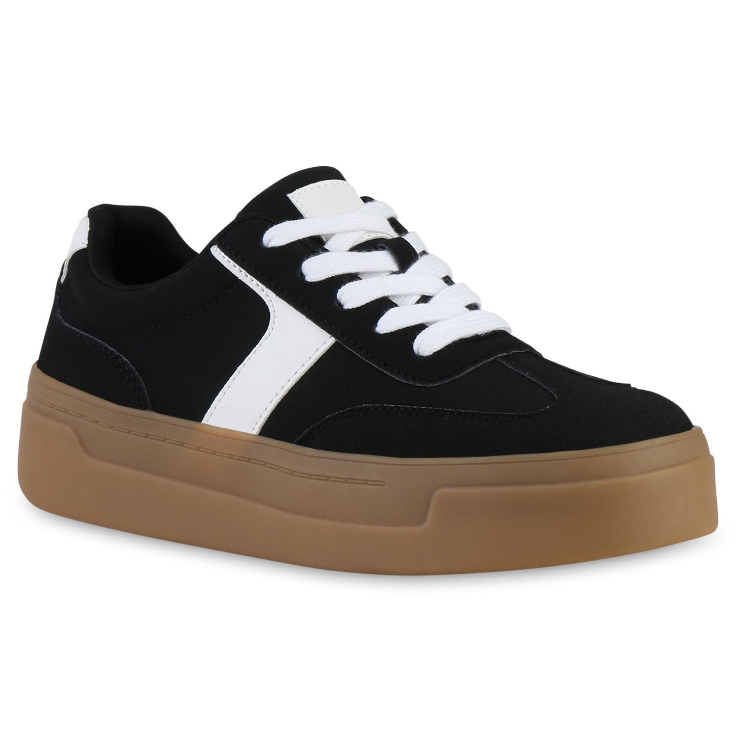 VAN HILL Damen Sneaker Low Schnürer Basic Plateau Freizeit Schnür-Schuhe 841463