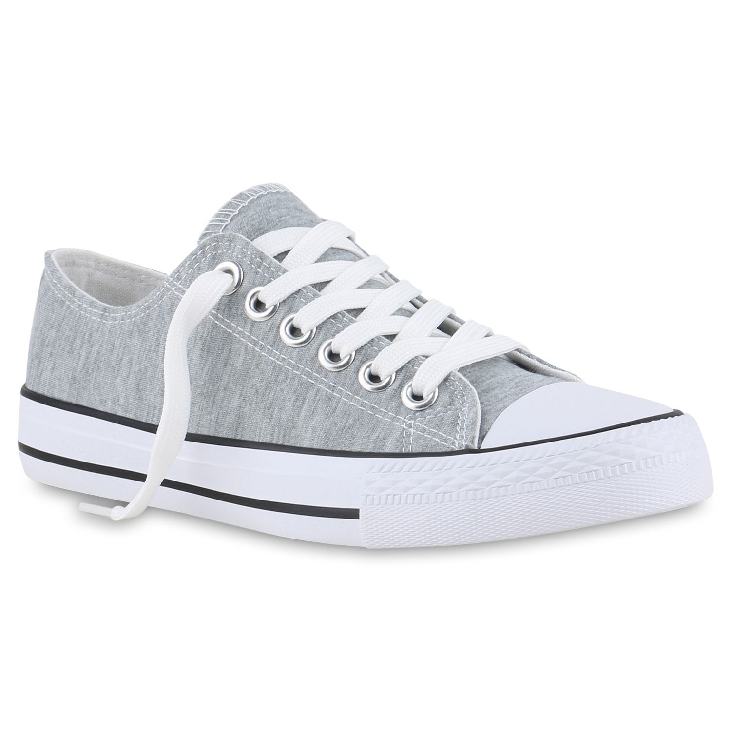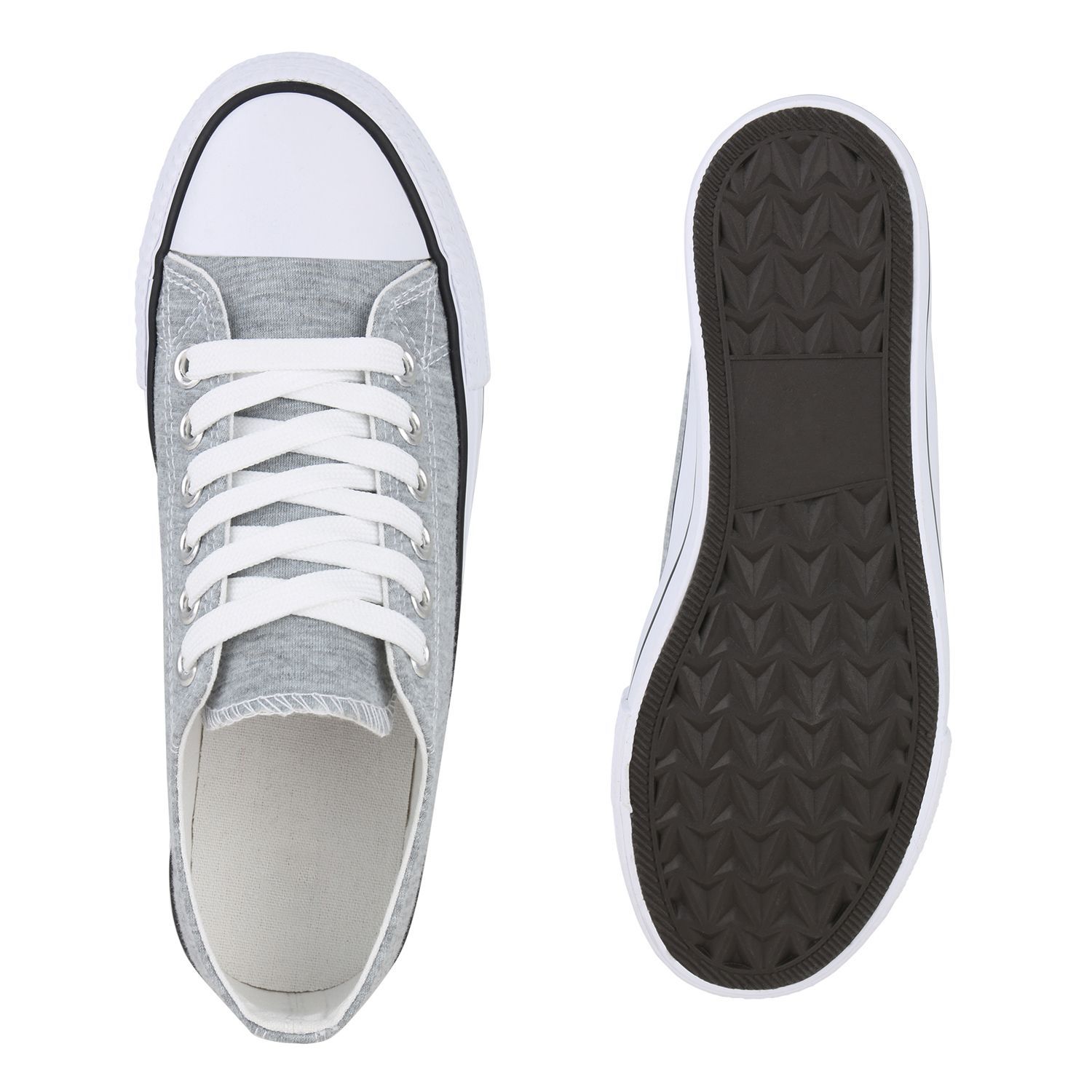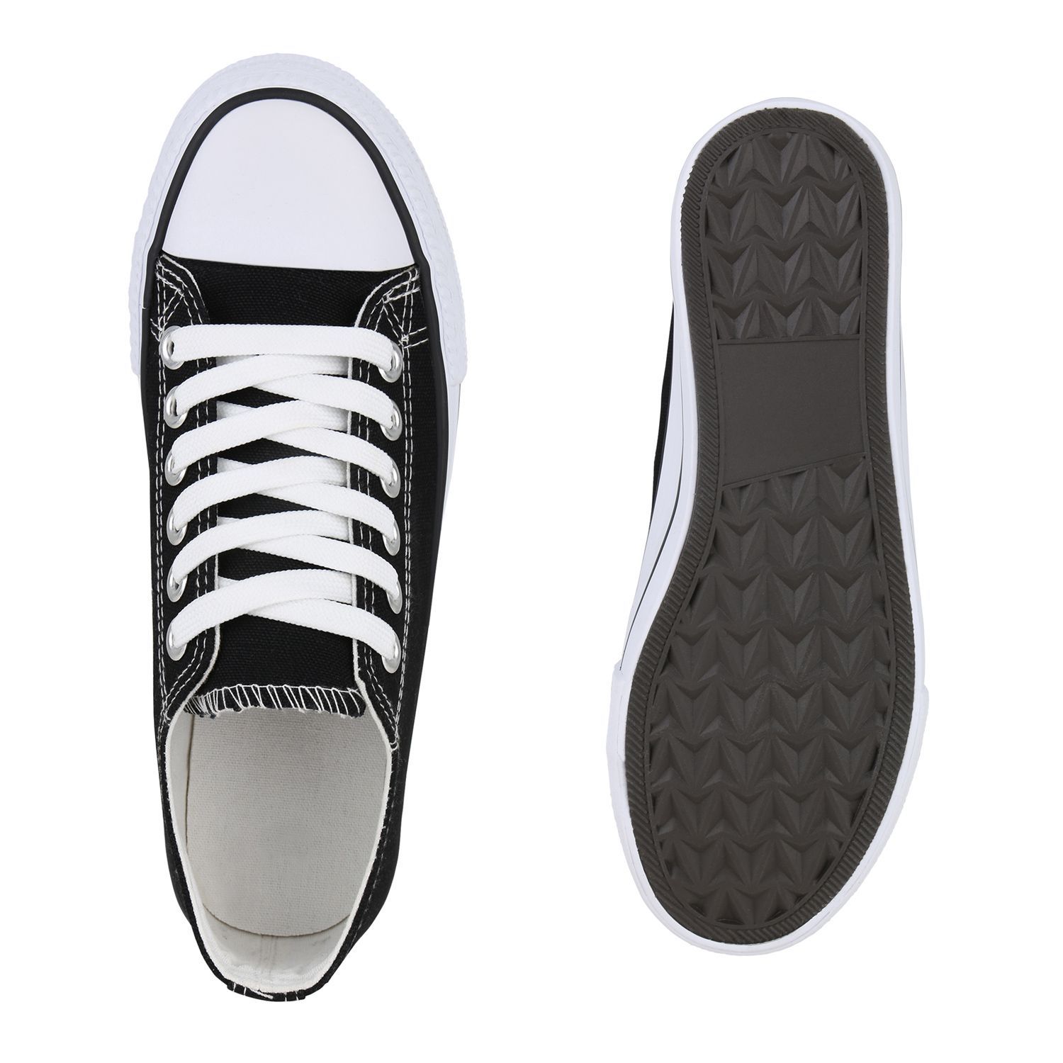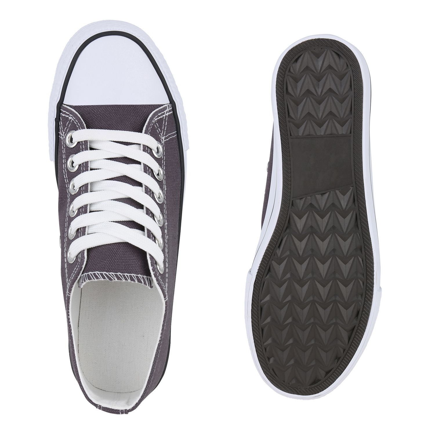 VAN HILL Damen Sneaker Low Schnürer Bequeme Basic Stoff Freizeit Schuhe 841314