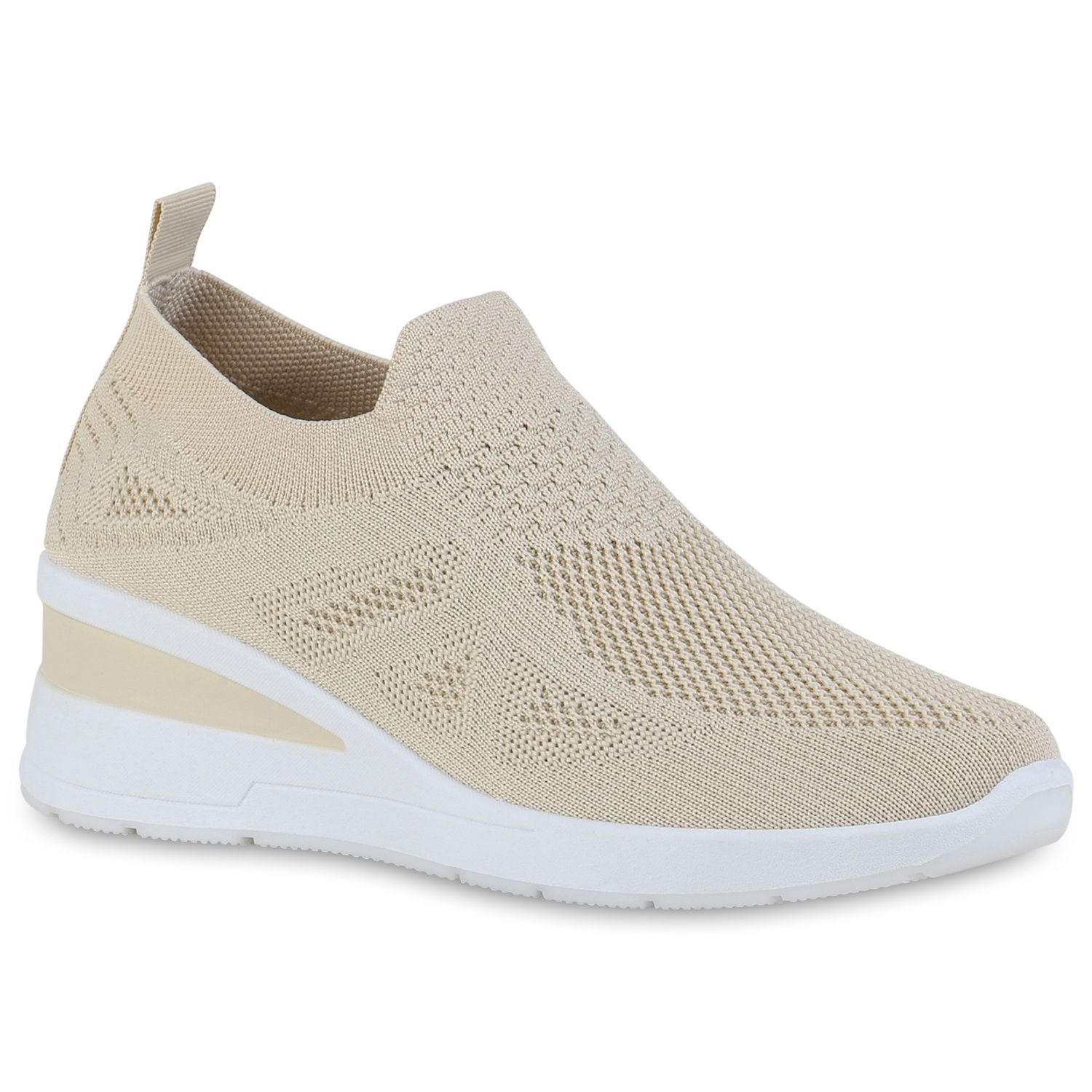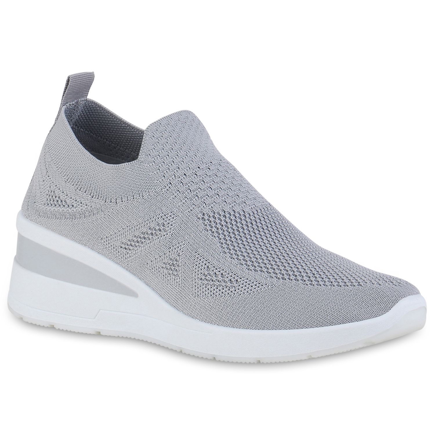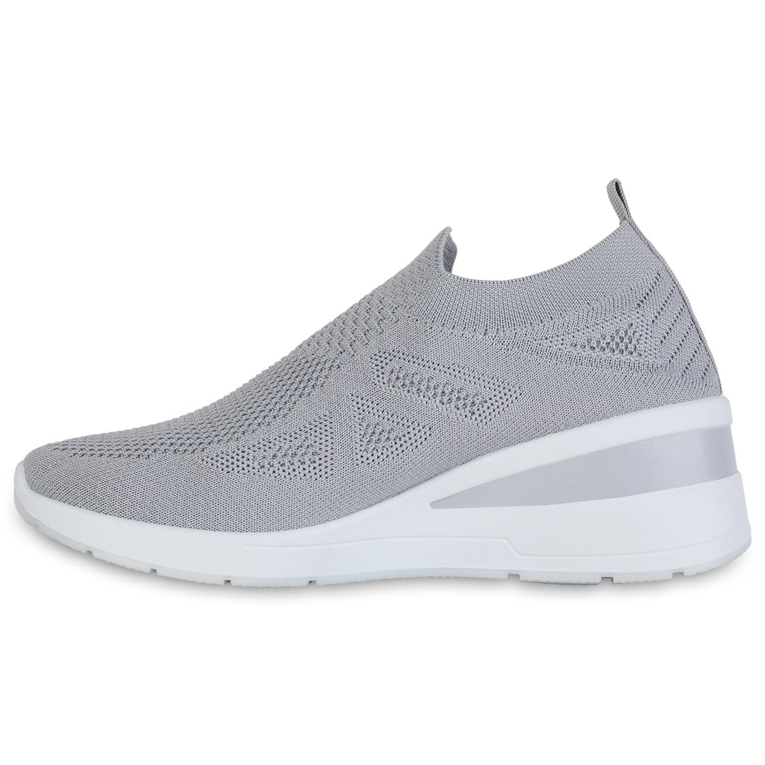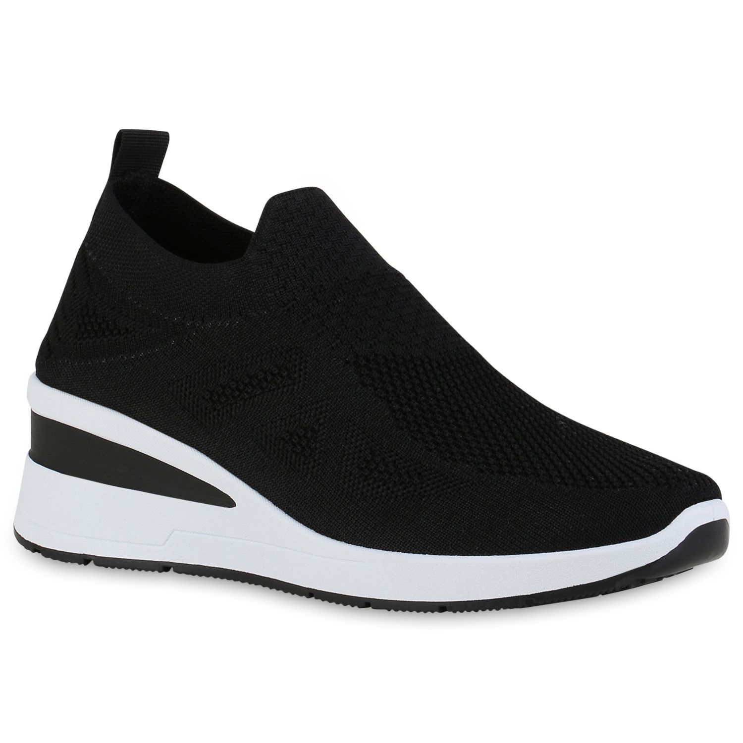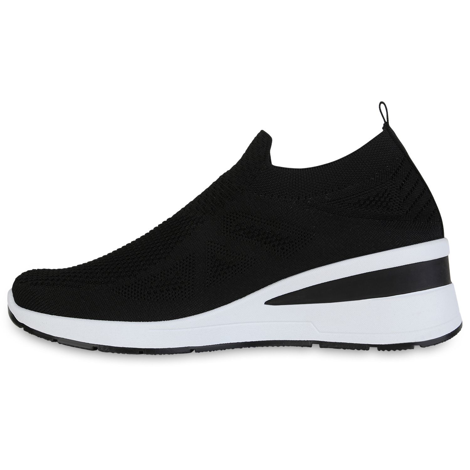 VAN HILL Damen Sneaker Wedges Keilabsatz Strick Profil-Sohle Stoff-Schuhe 840165