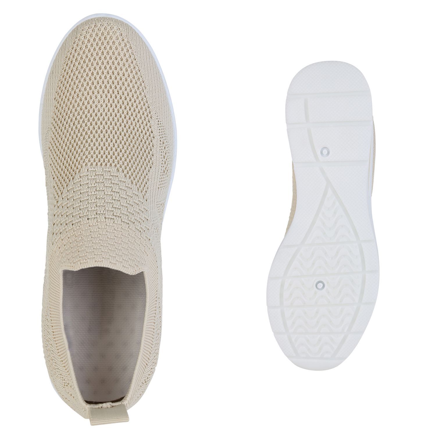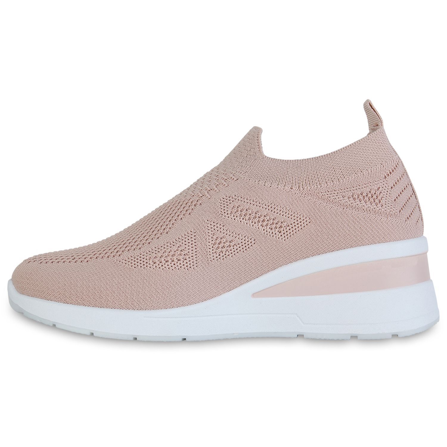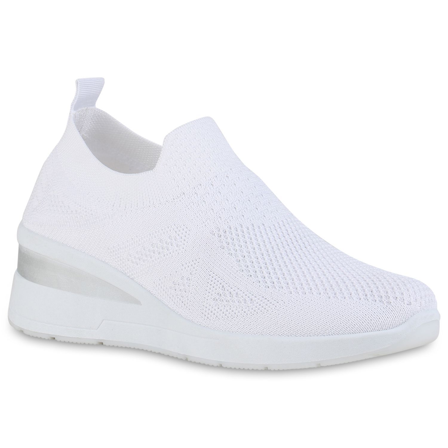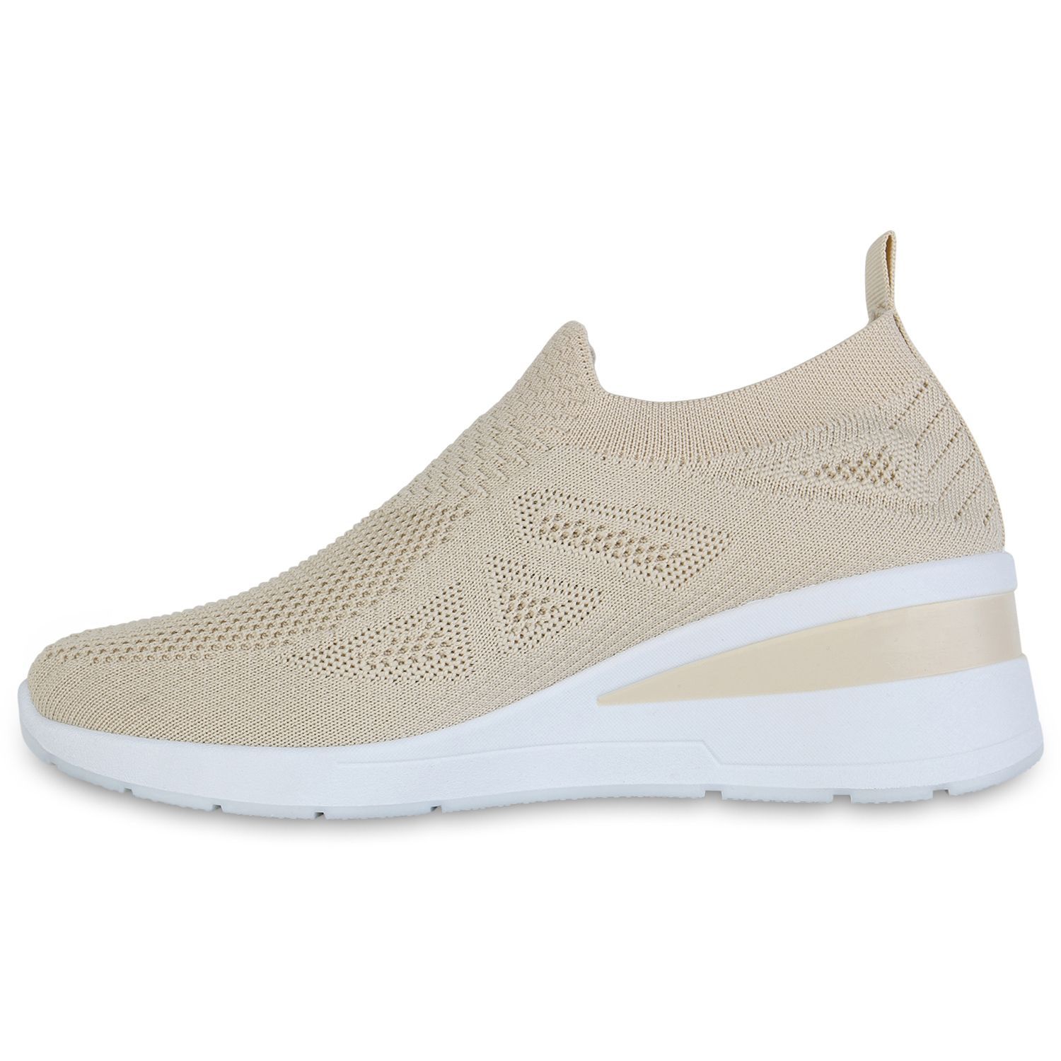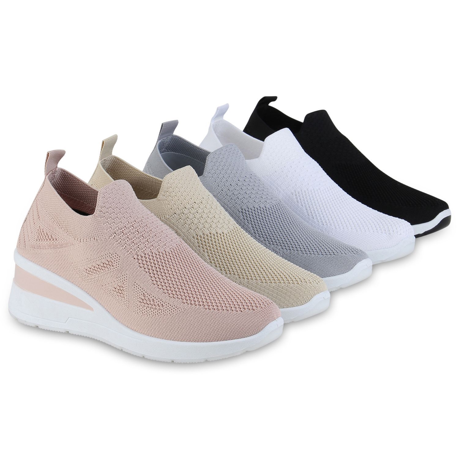 VAN HILL Damen Sneaker Wedges Keilabsatz Strick Profil-Sohle Stoff-Schuhe 840165
