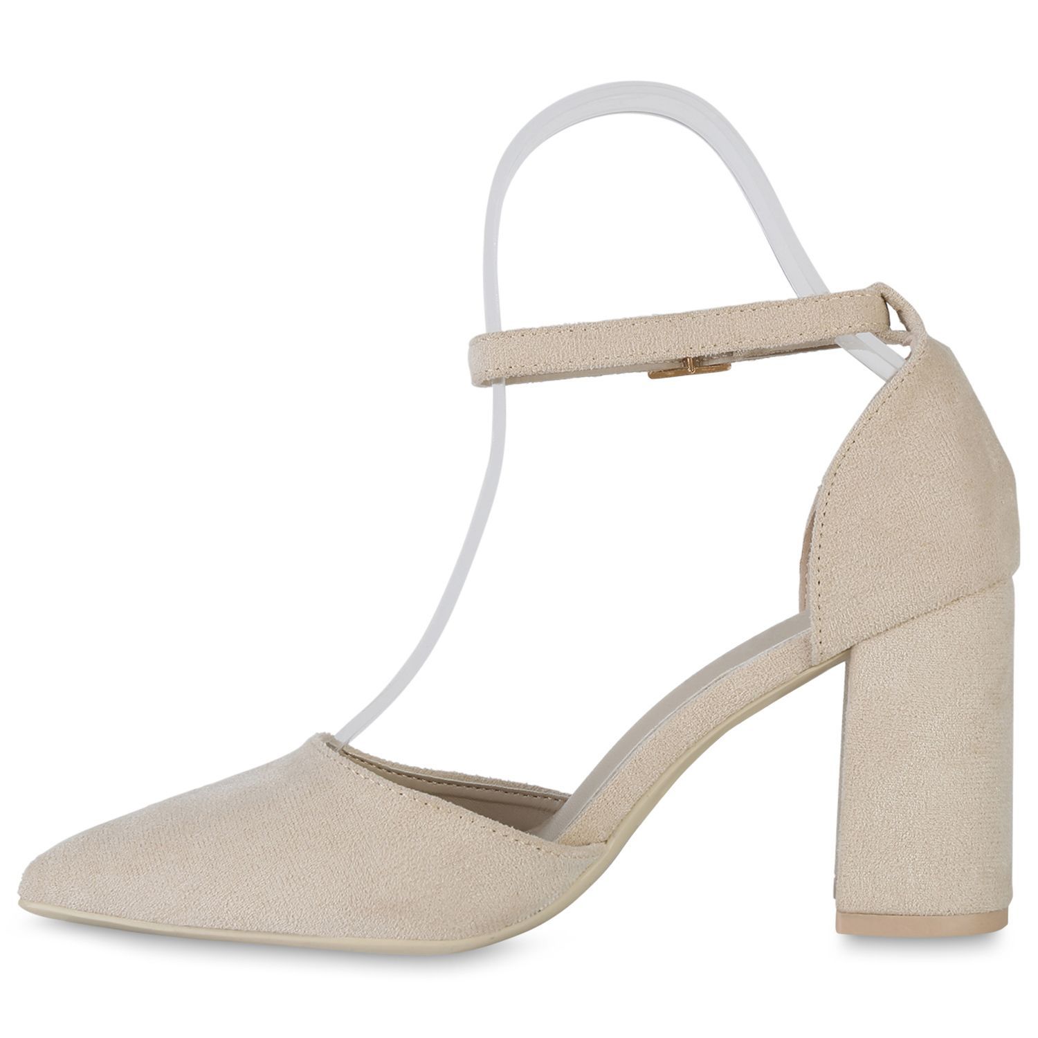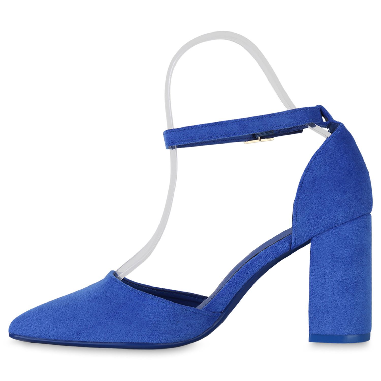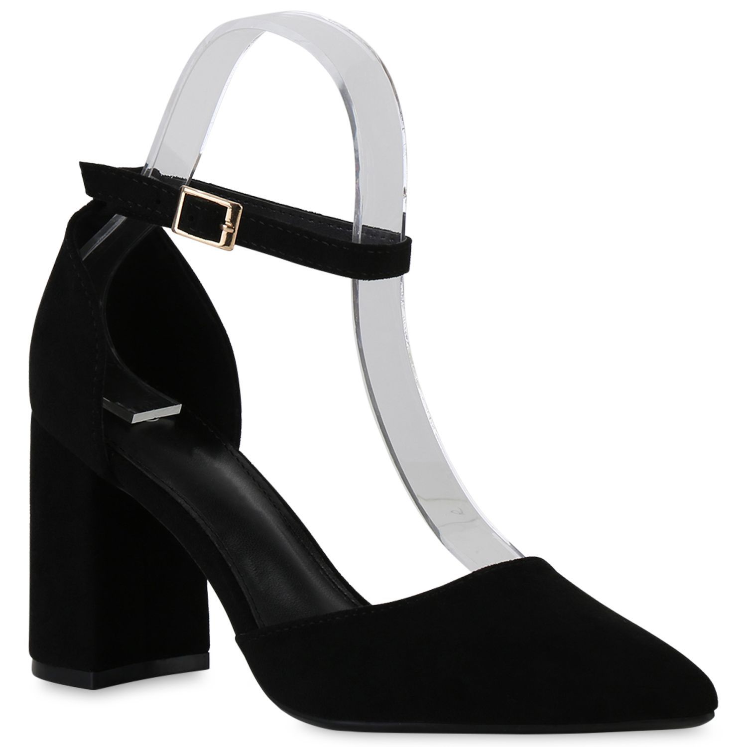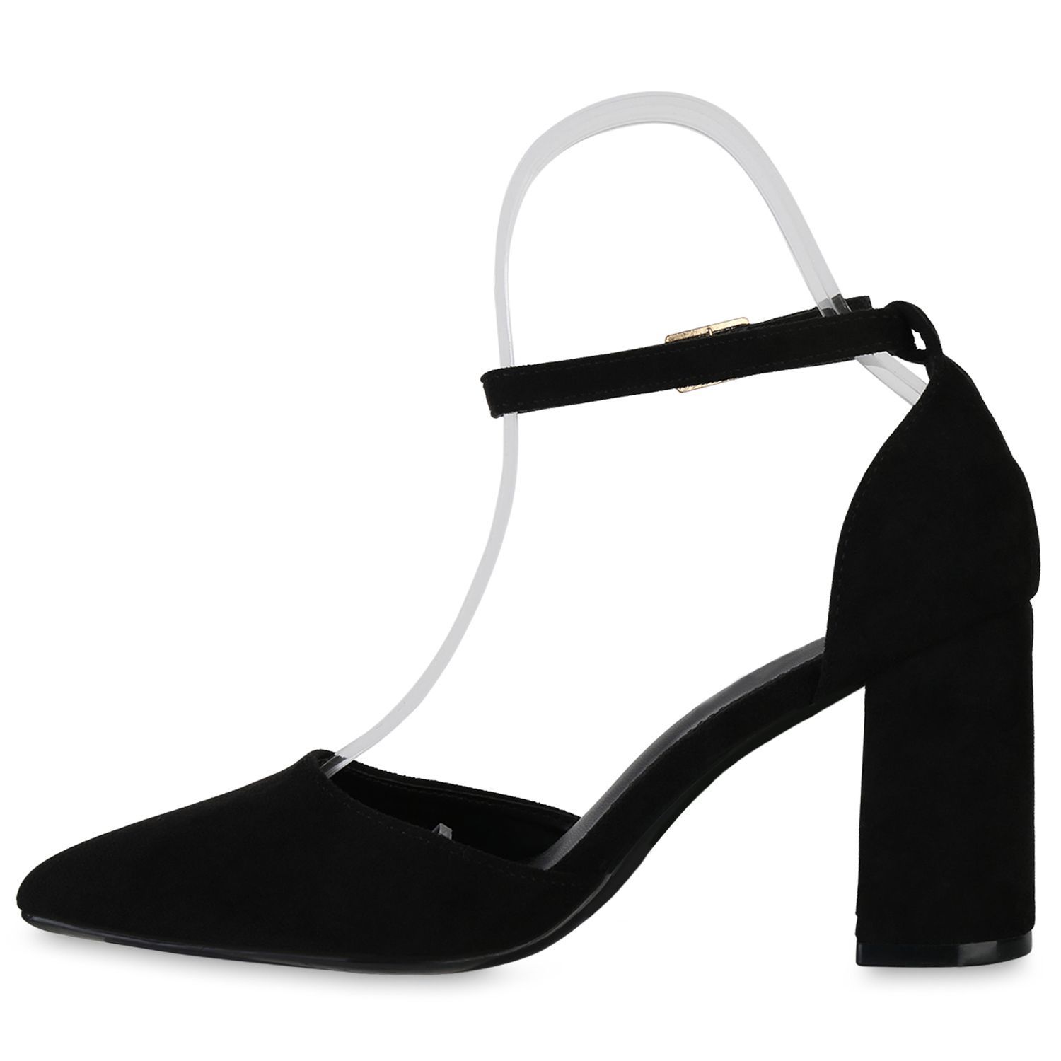 VAN HILL Damen Spitze Pumps Blockabsatz Klassische Basic Absatz-Schuhe 839878