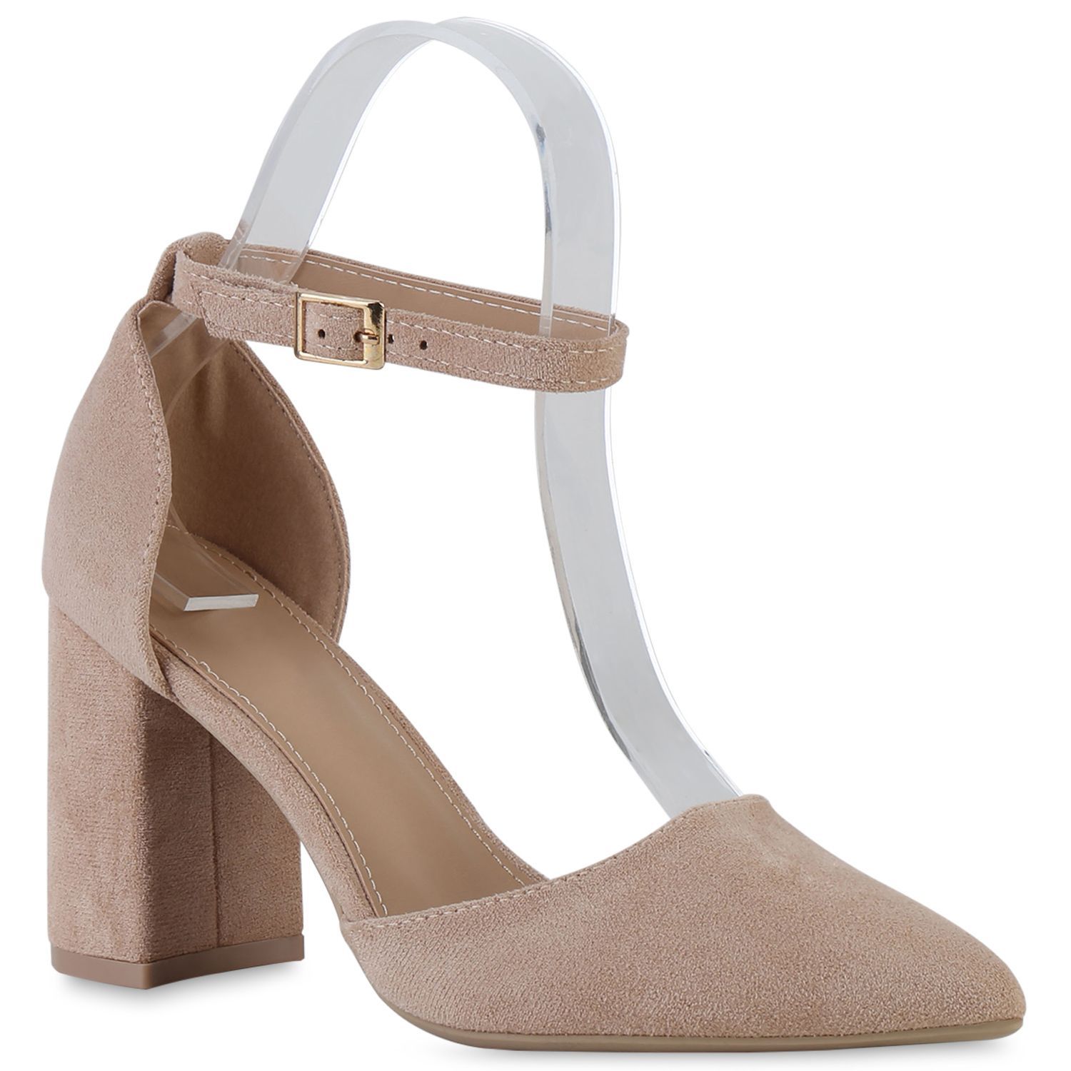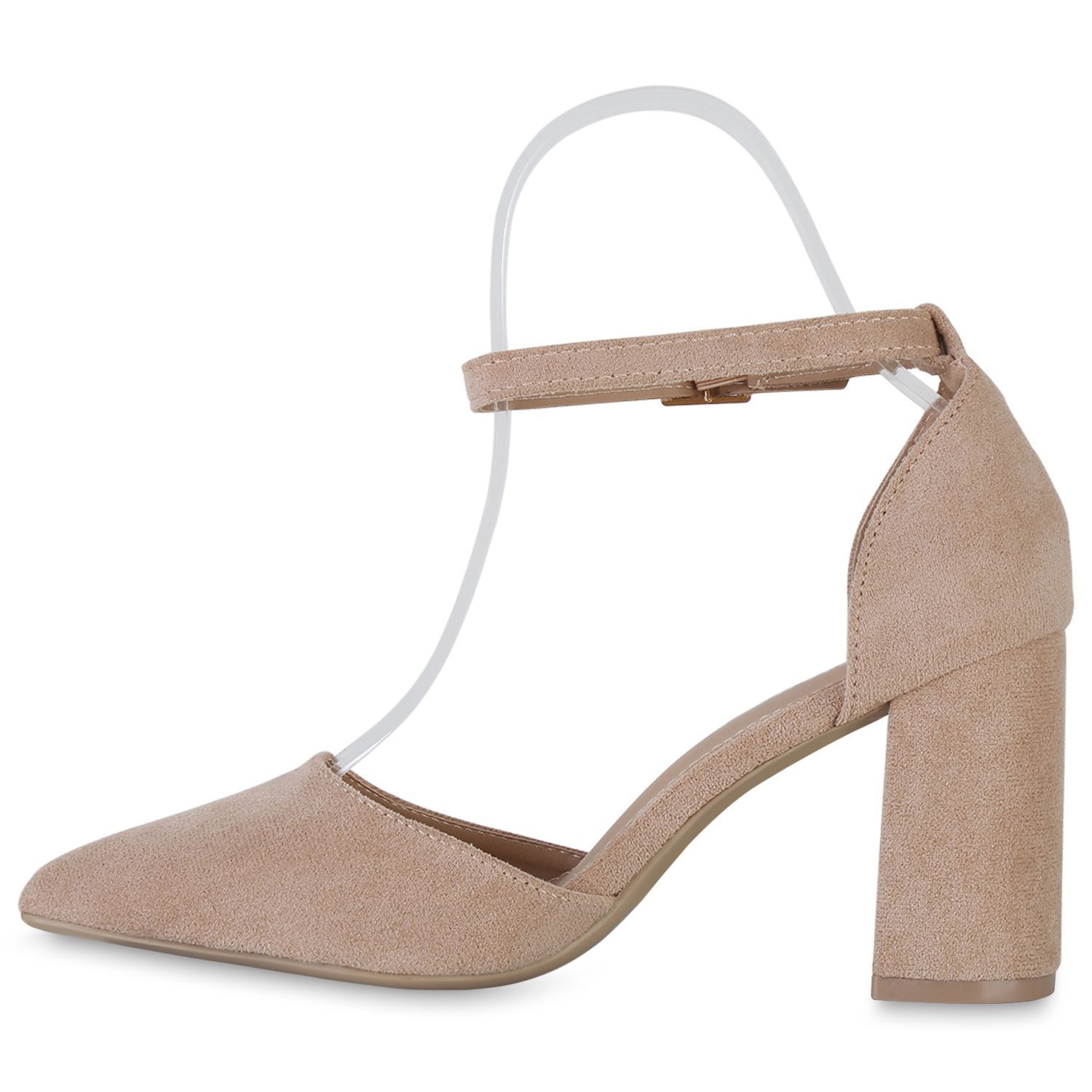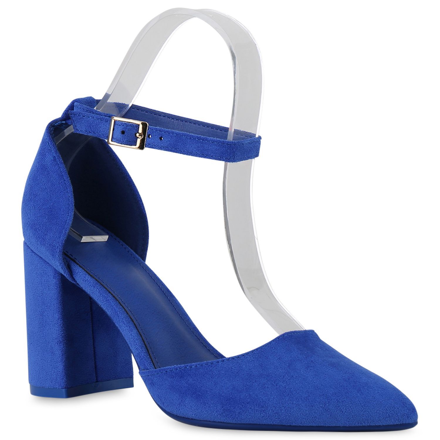 VAN HILL Damen Spitze Pumps Blockabsatz Klassische Basic Absatz-Schuhe 839878