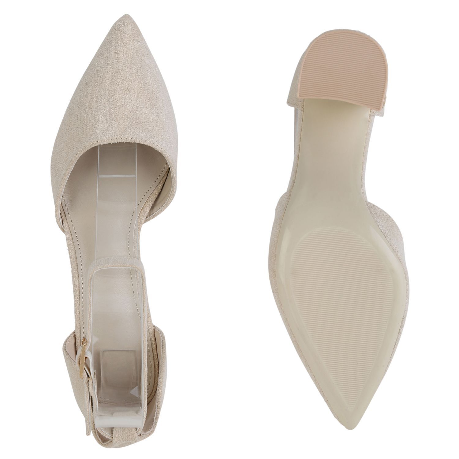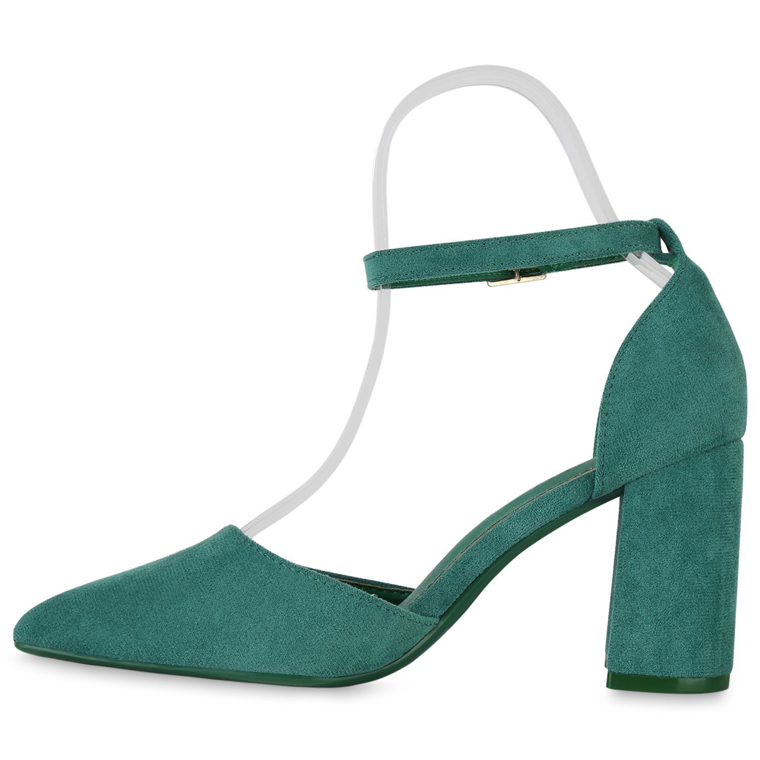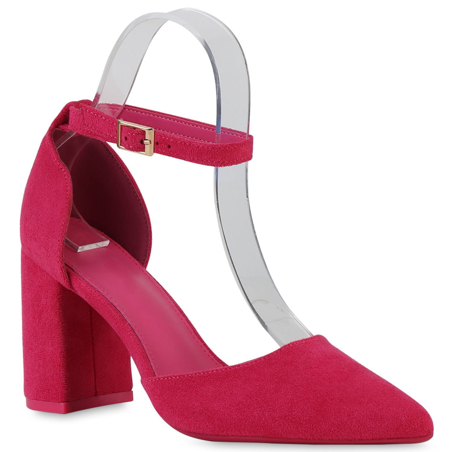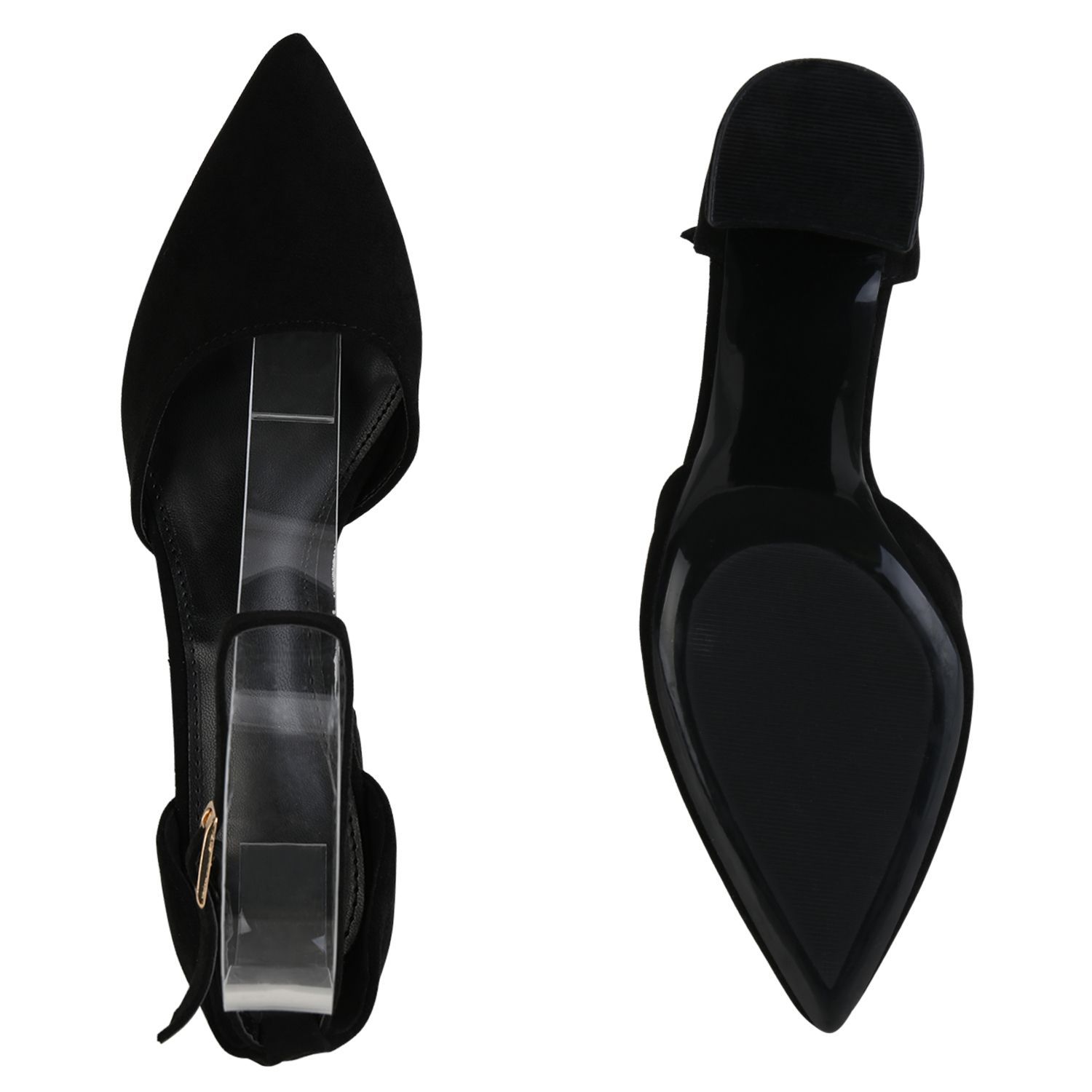 VAN HILL Damen Spitze Pumps Blockabsatz Klassische Basic Absatz-Schuhe 839878