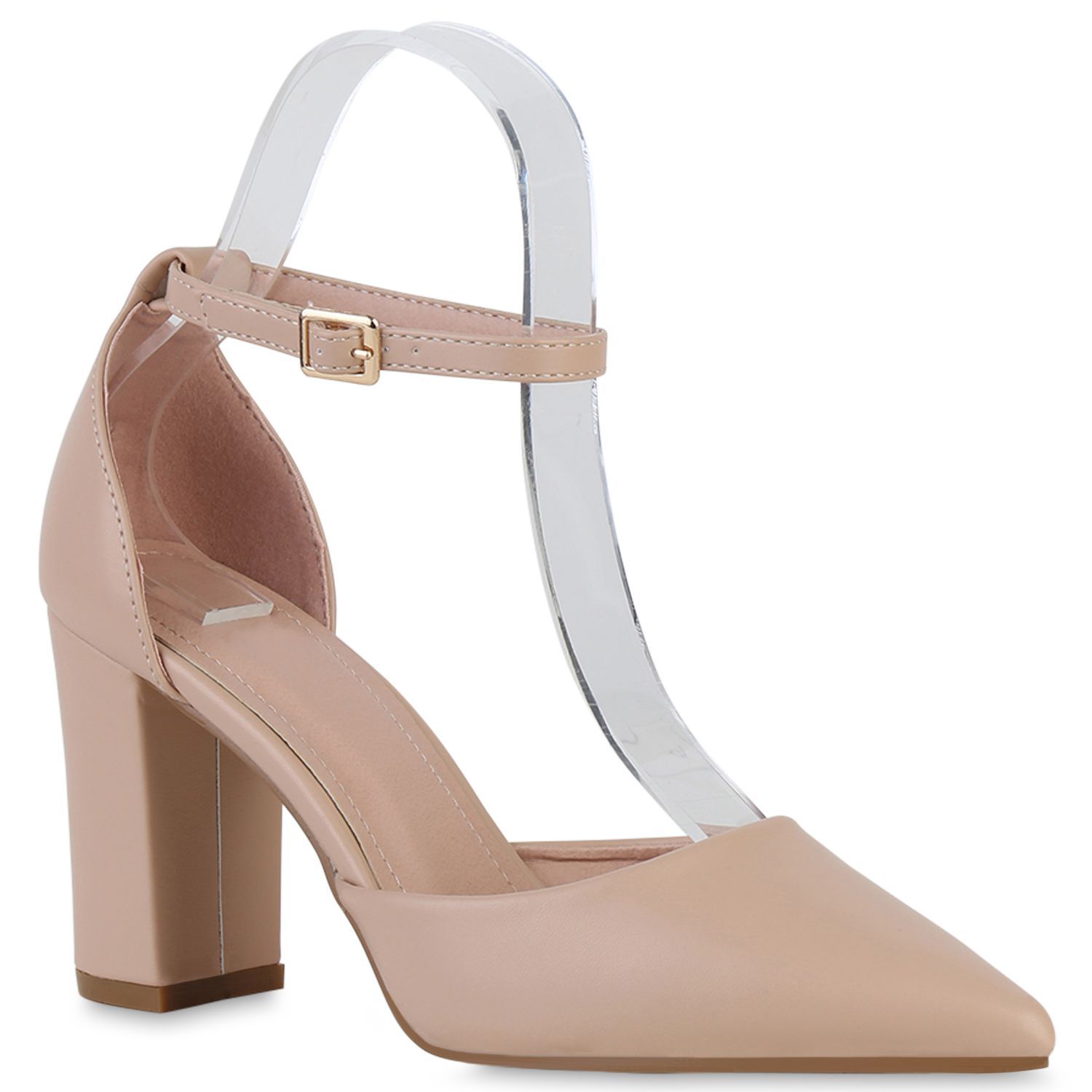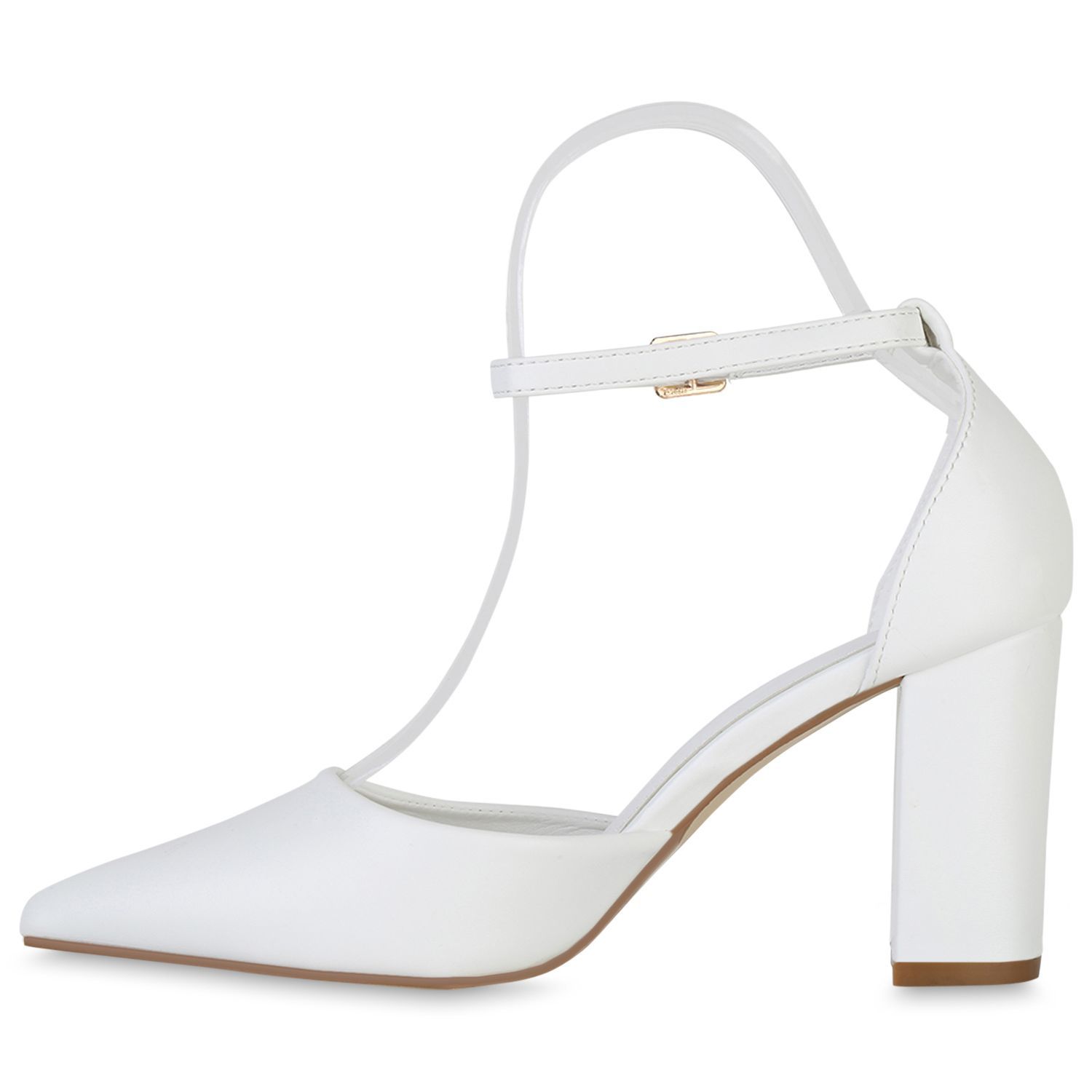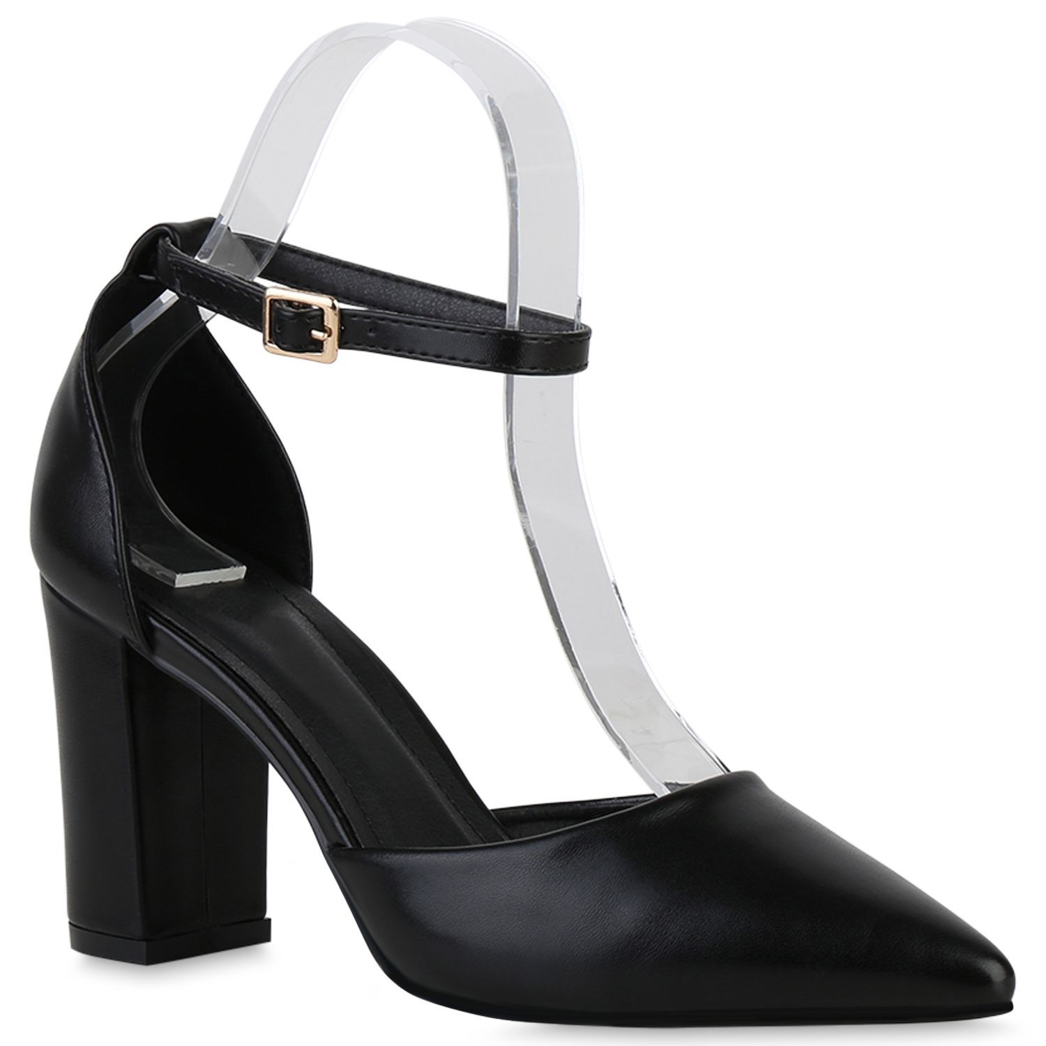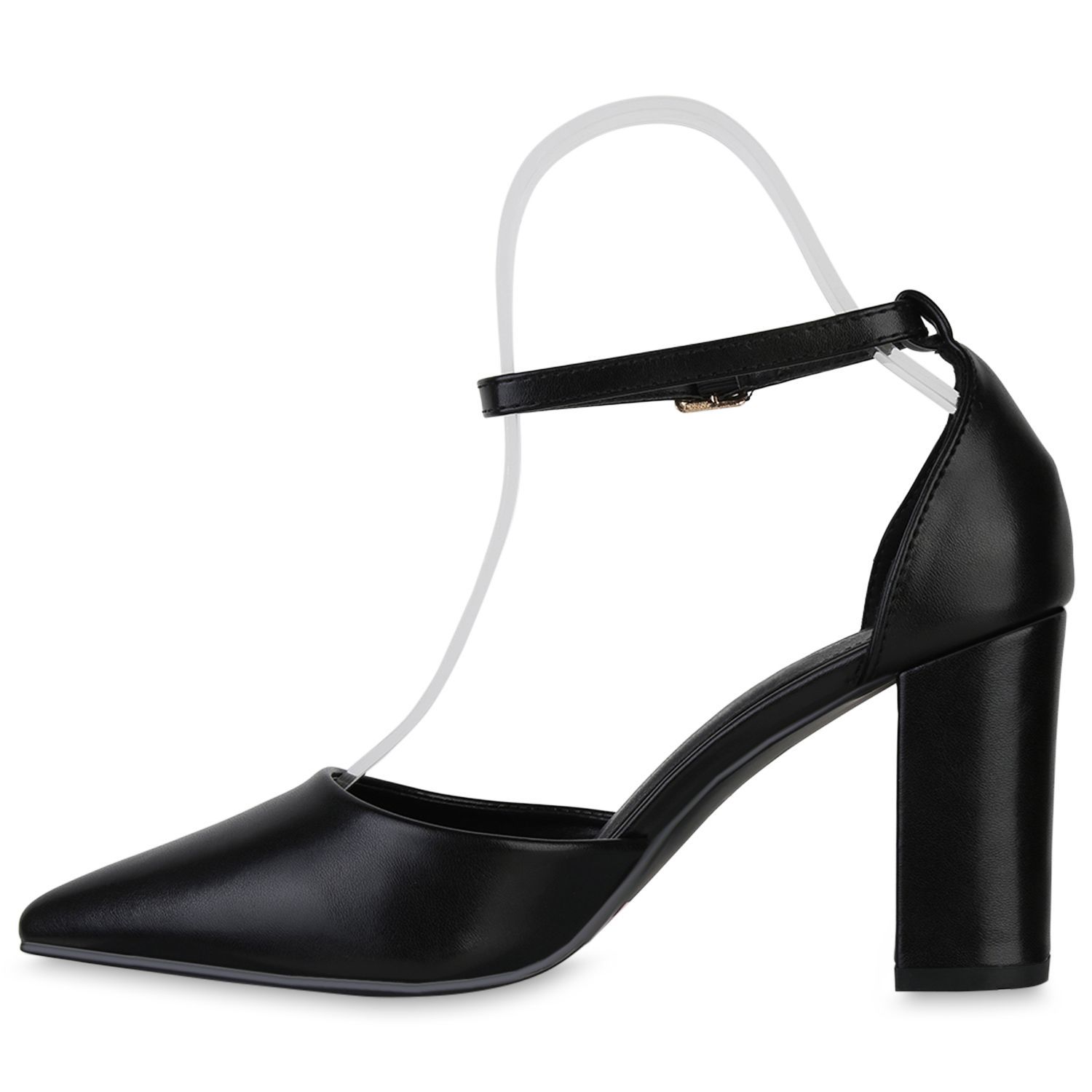 VAN HILL Damen Spitze Pumps Blockabsatz Klassische Leder-Optik Abend-Schuhe 840140