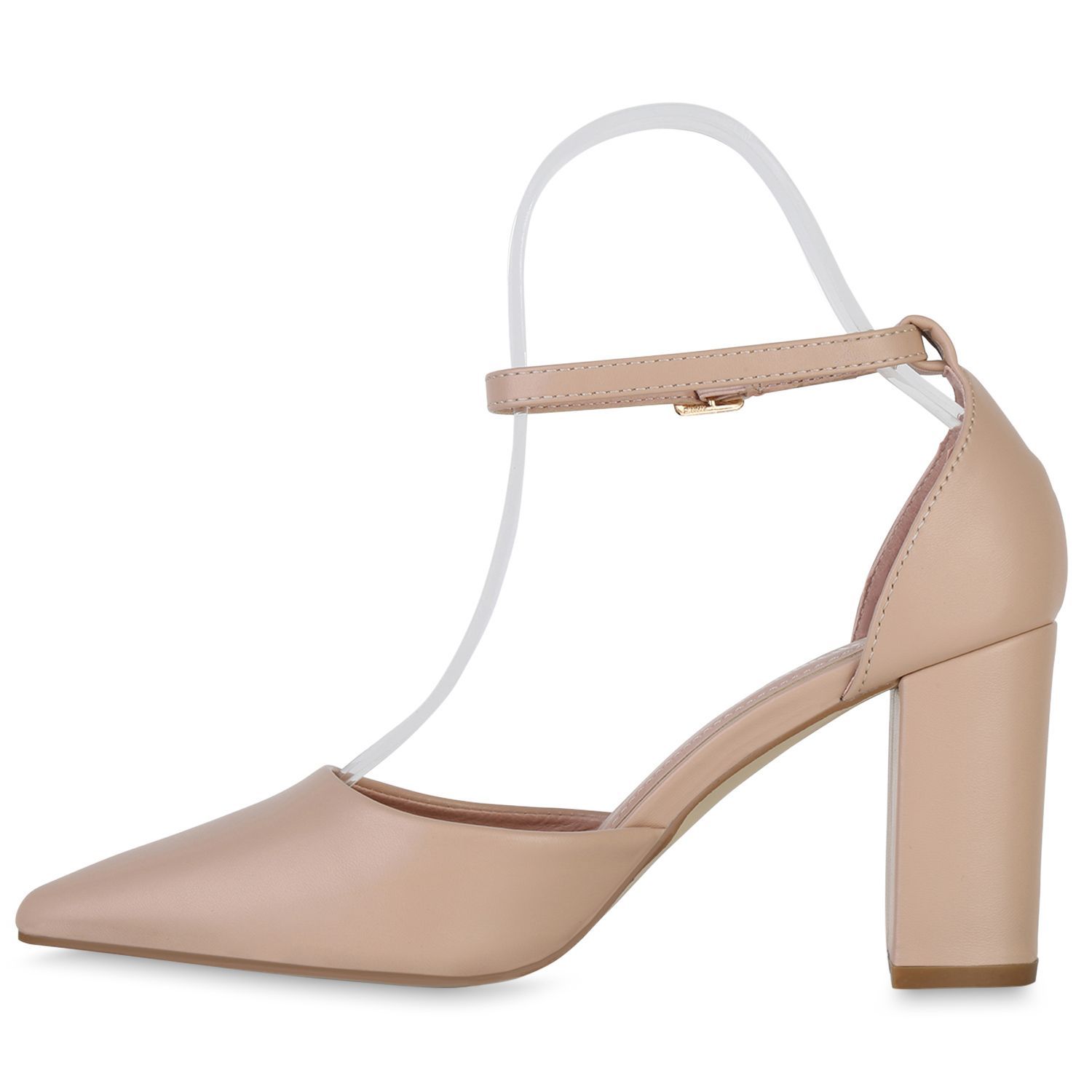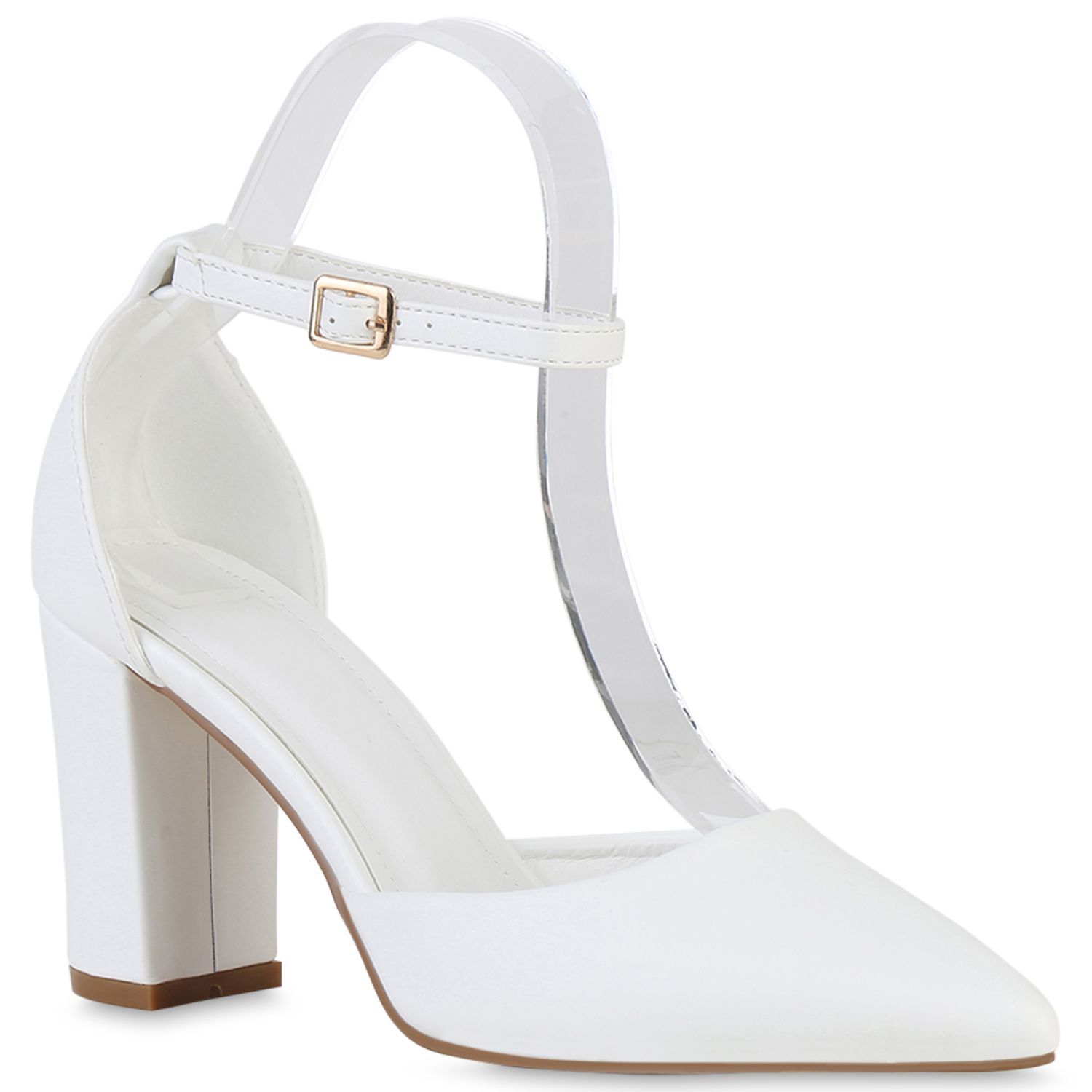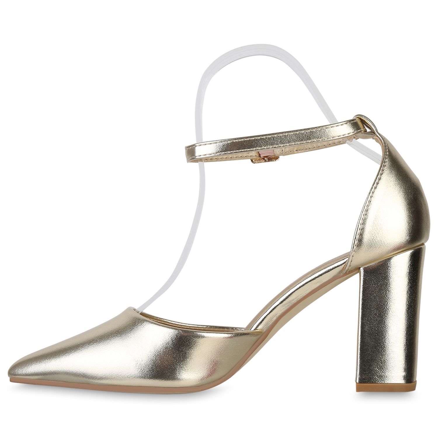 VAN HILL Damen Spitze Pumps Blockabsatz Klassische Leder-Optik Abend-Schuhe 840140