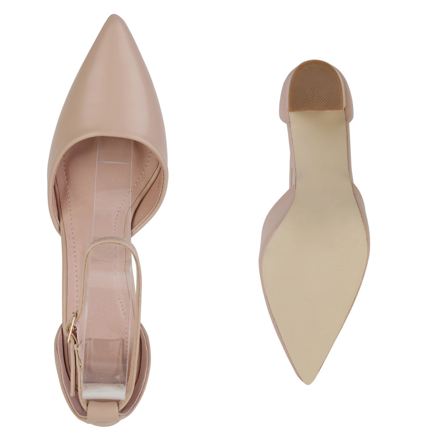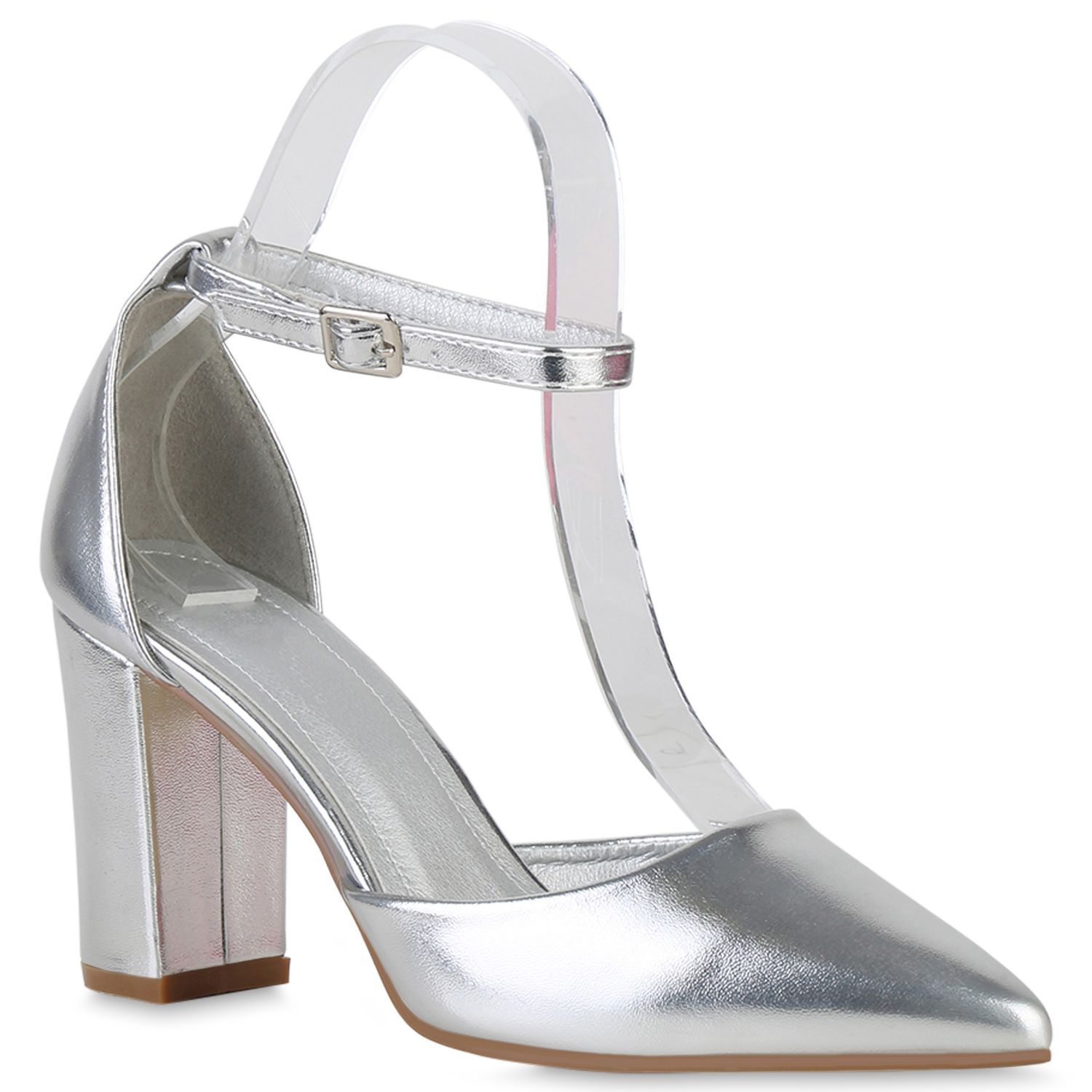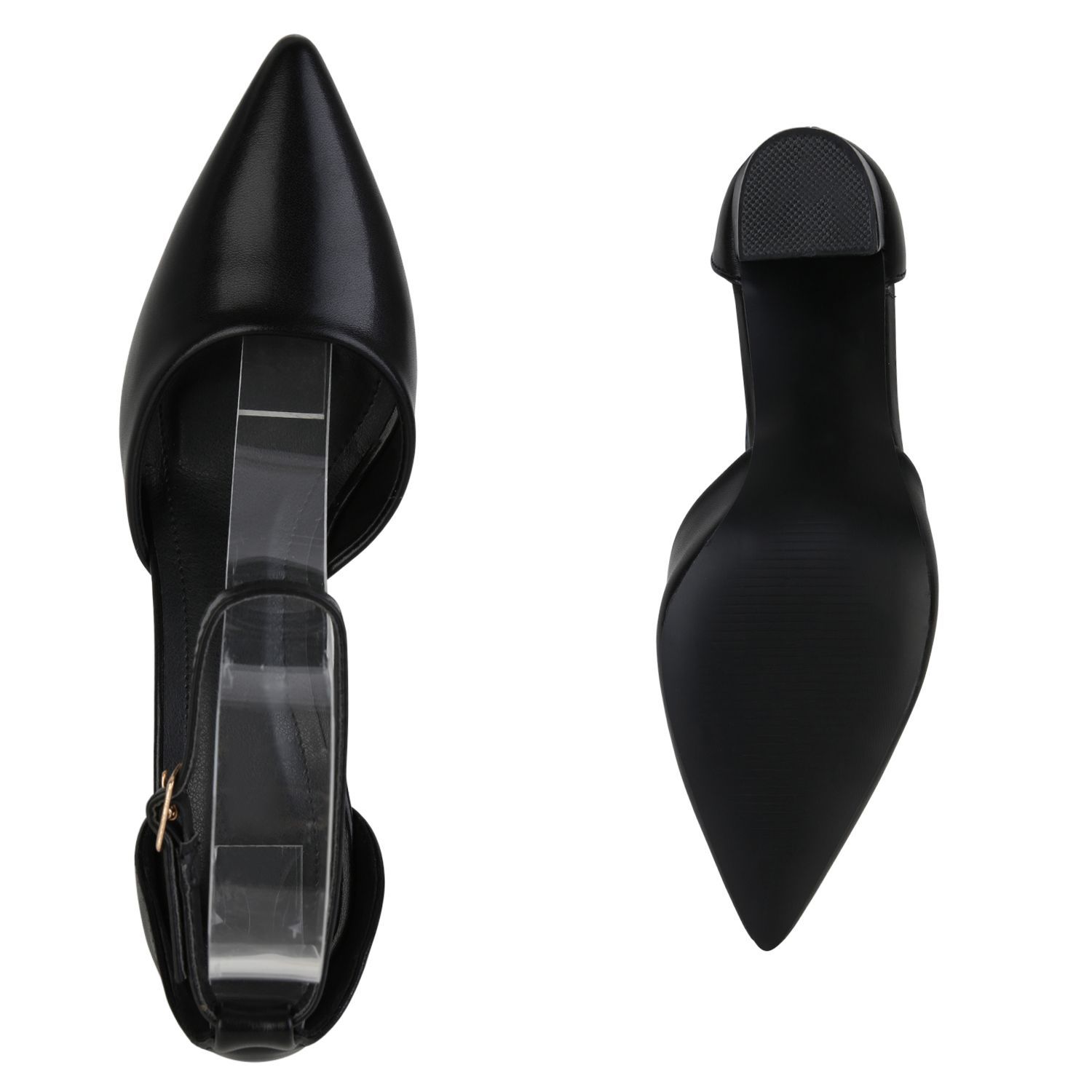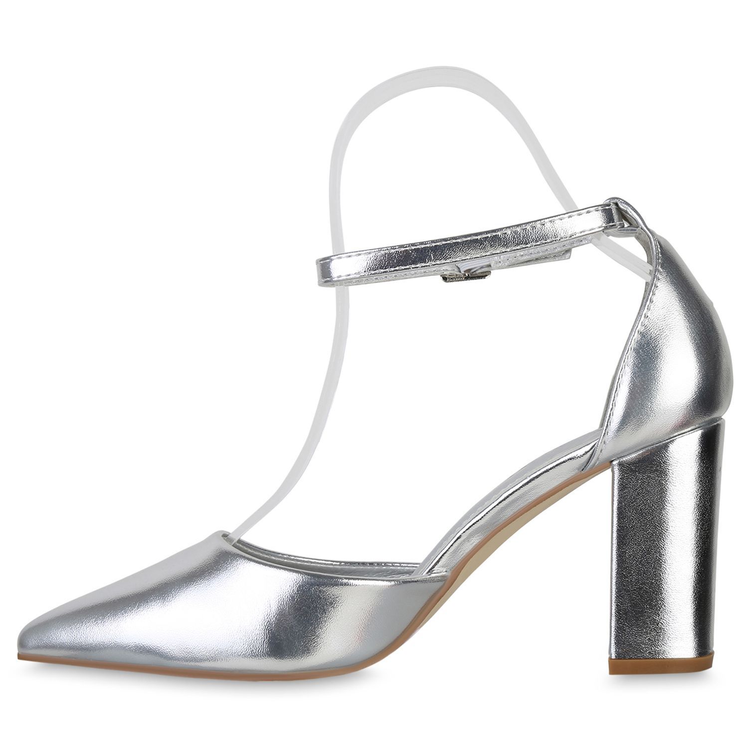 VAN HILL Damen Spitze Pumps Blockabsatz Klassische Leder-Optik Abend-Schuhe 840140