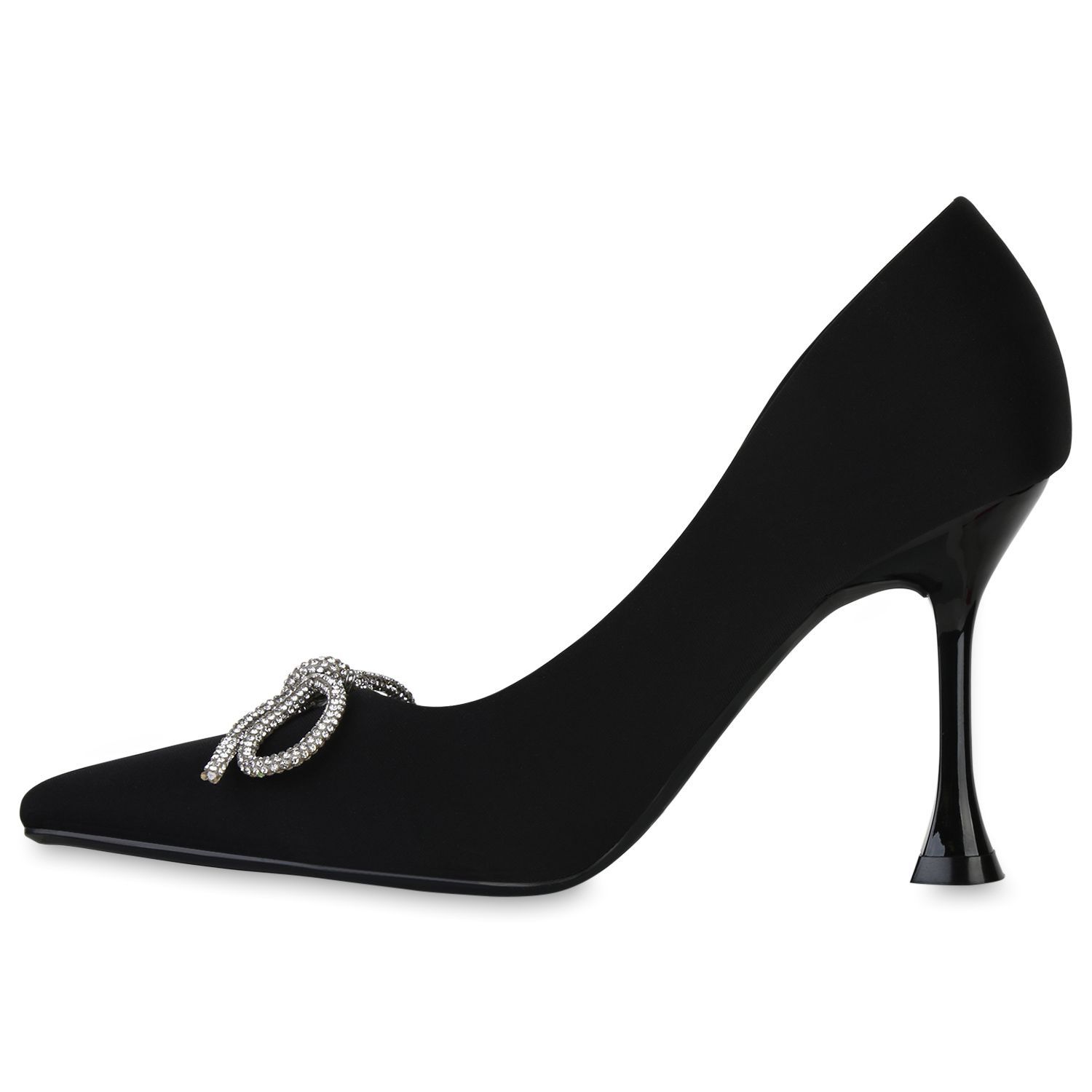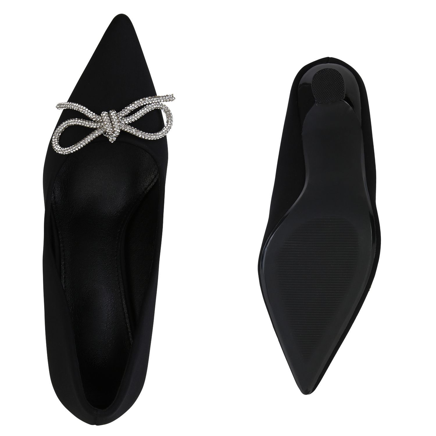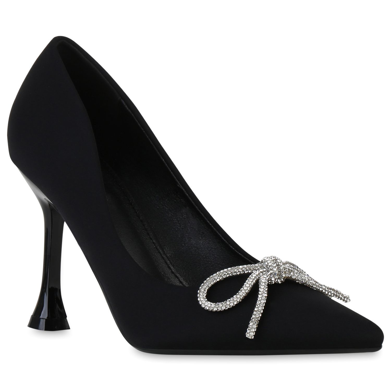 VAN HILL Damen Spitze Pumps Party Strass Schleife Satin-Optik Absatz-Schuhe 840030