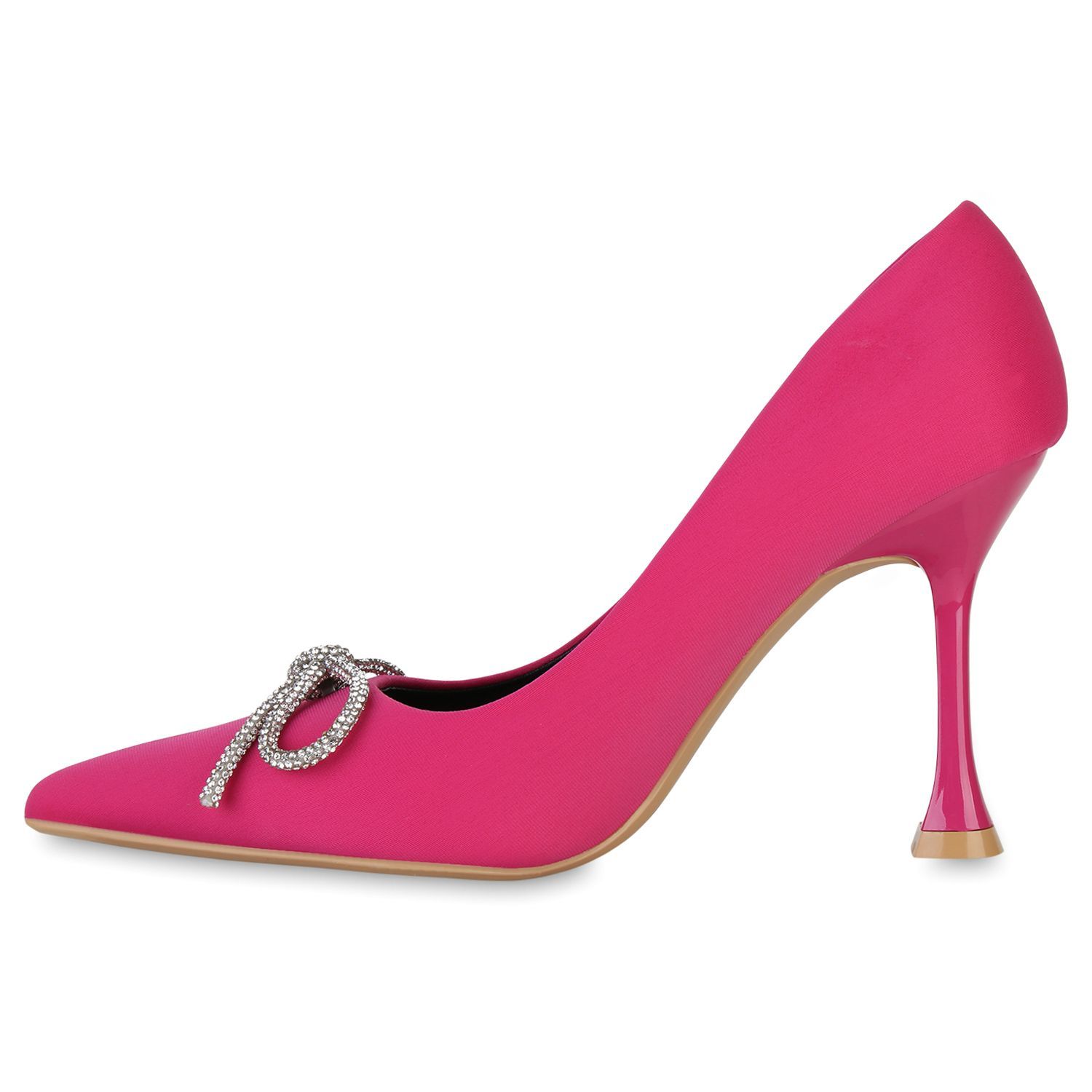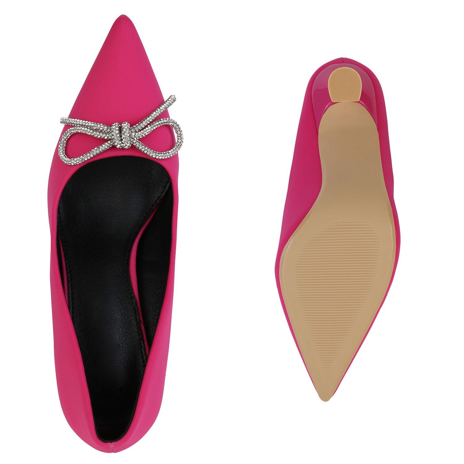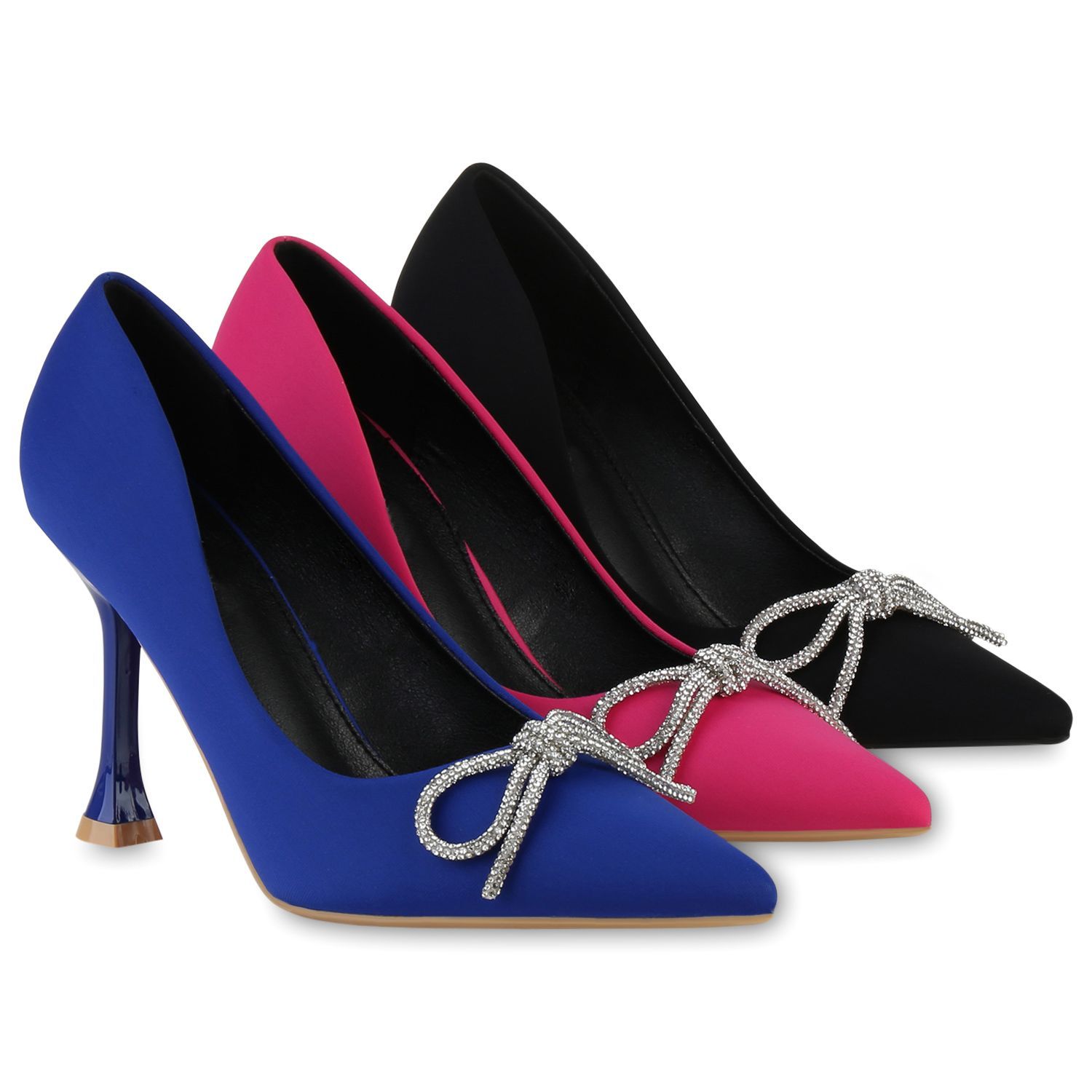 VAN HILL Damen Spitze Pumps Party Strass Schleife Satin-Optik Absatz-Schuhe 840030