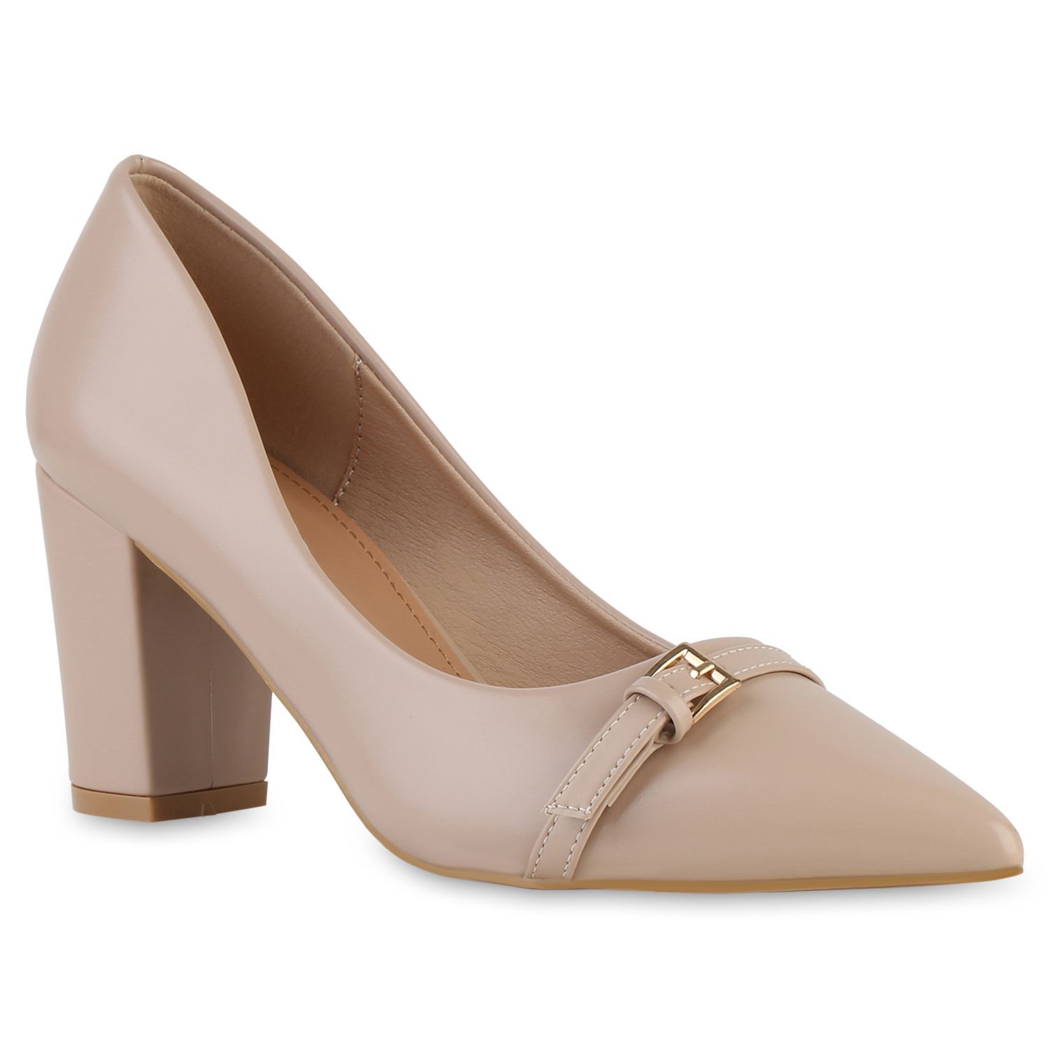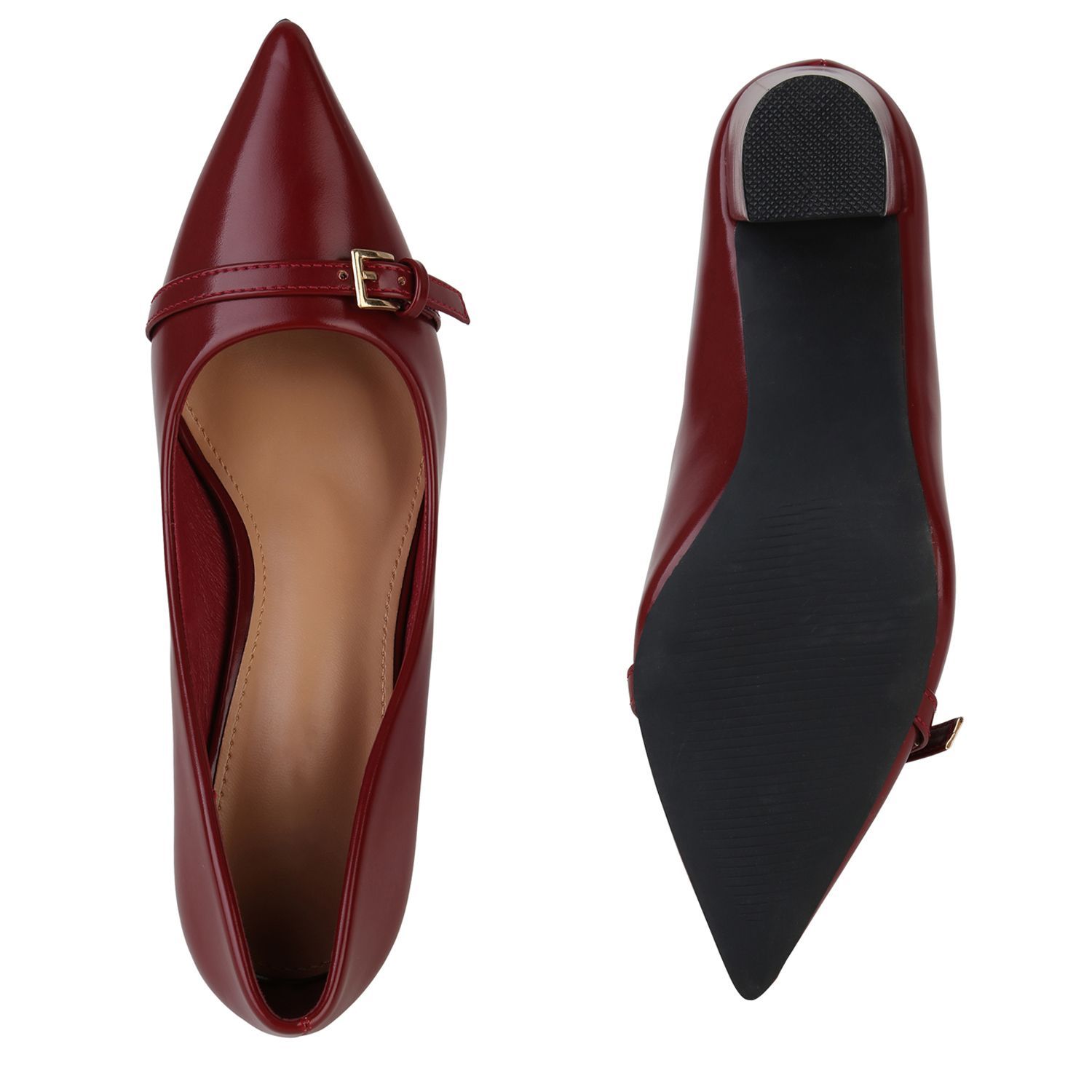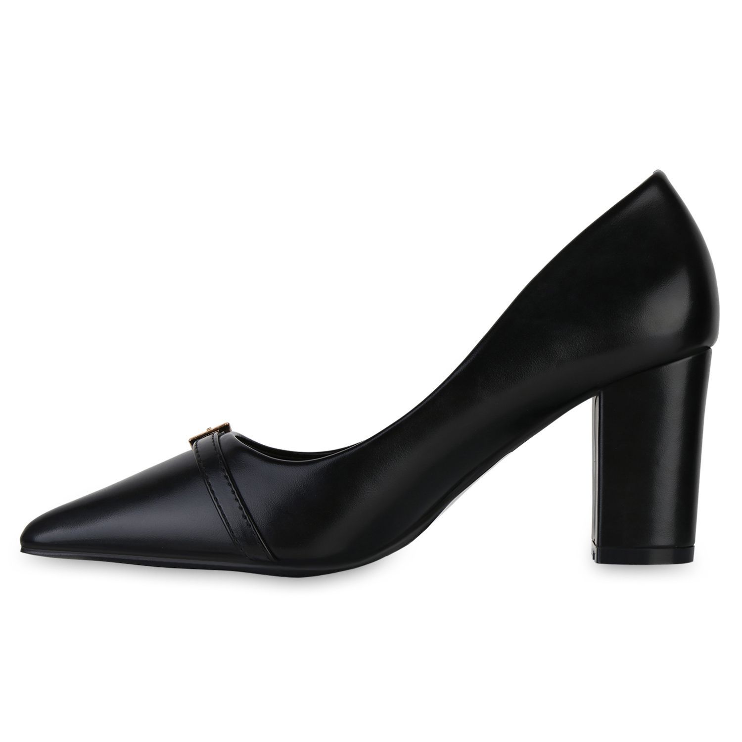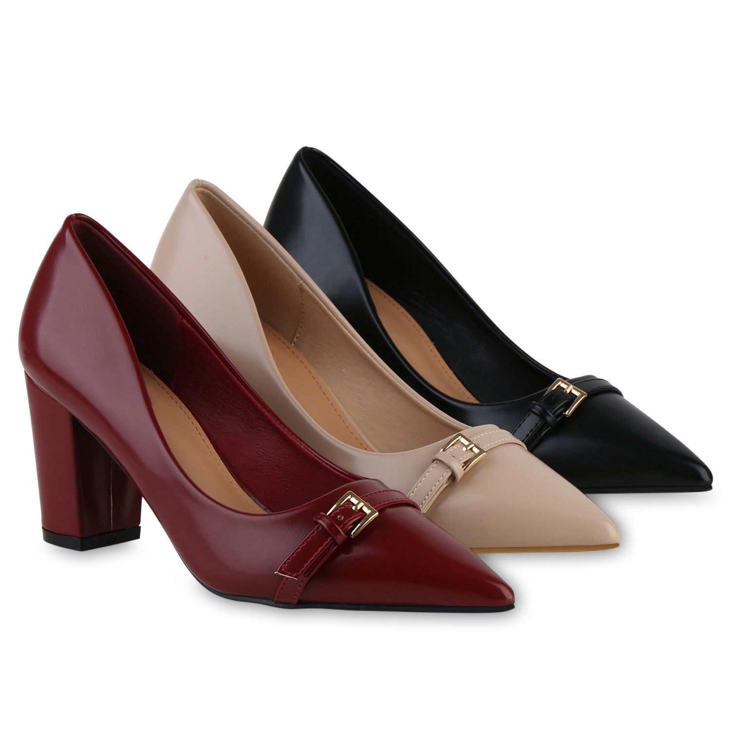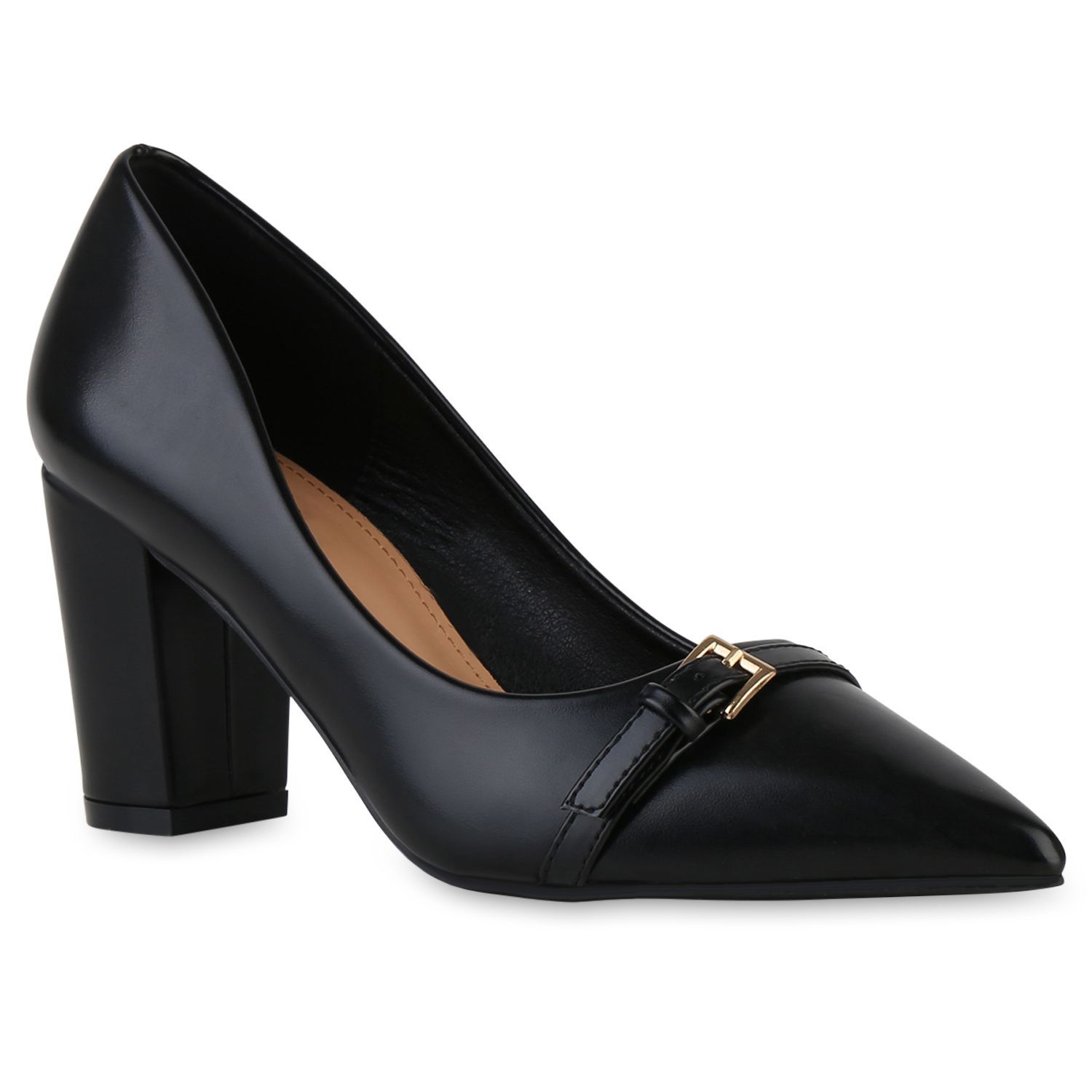 VAN HILL Damen Spitze Pumps Schnallen Absatzschuhe Leder-Optik Schuhe 841477
