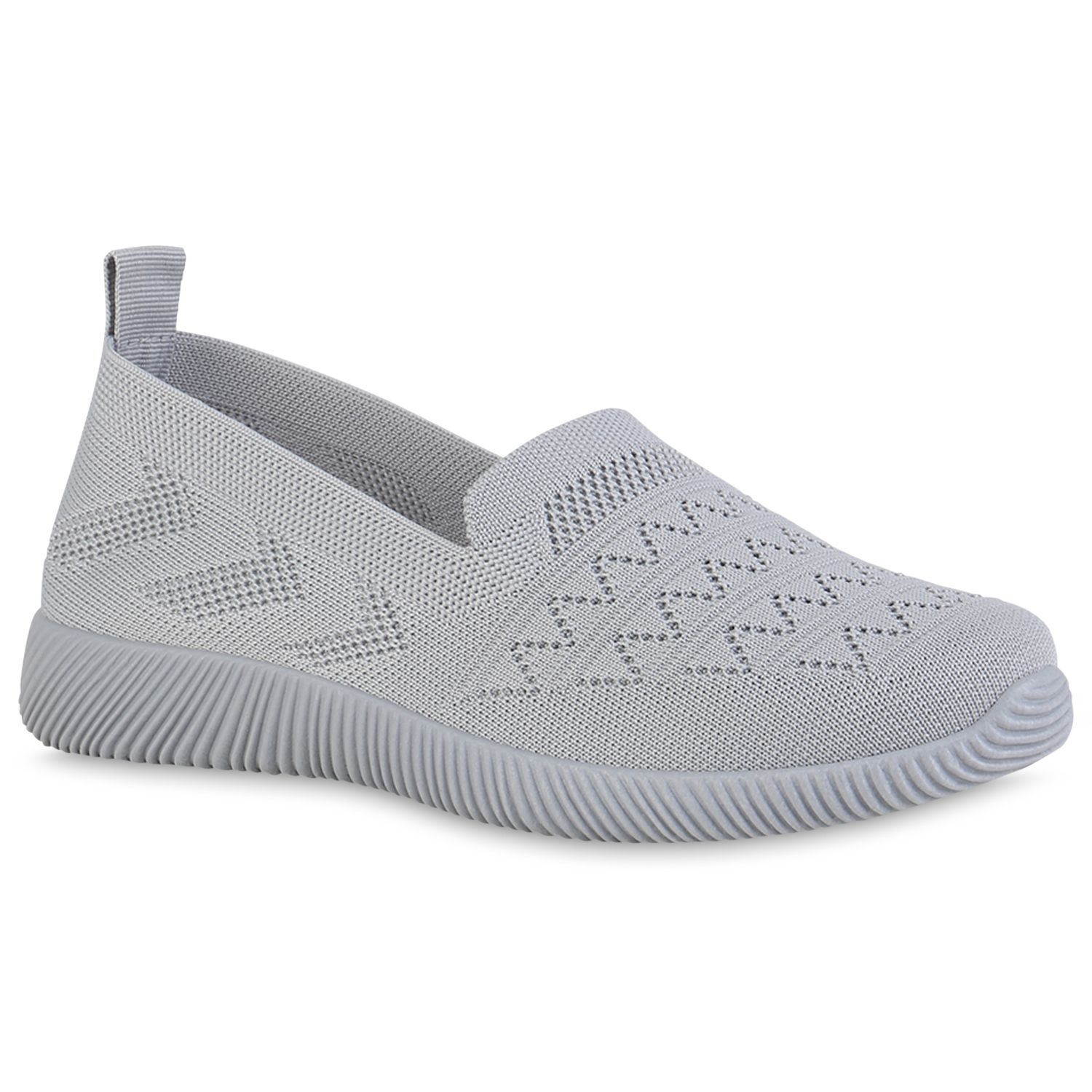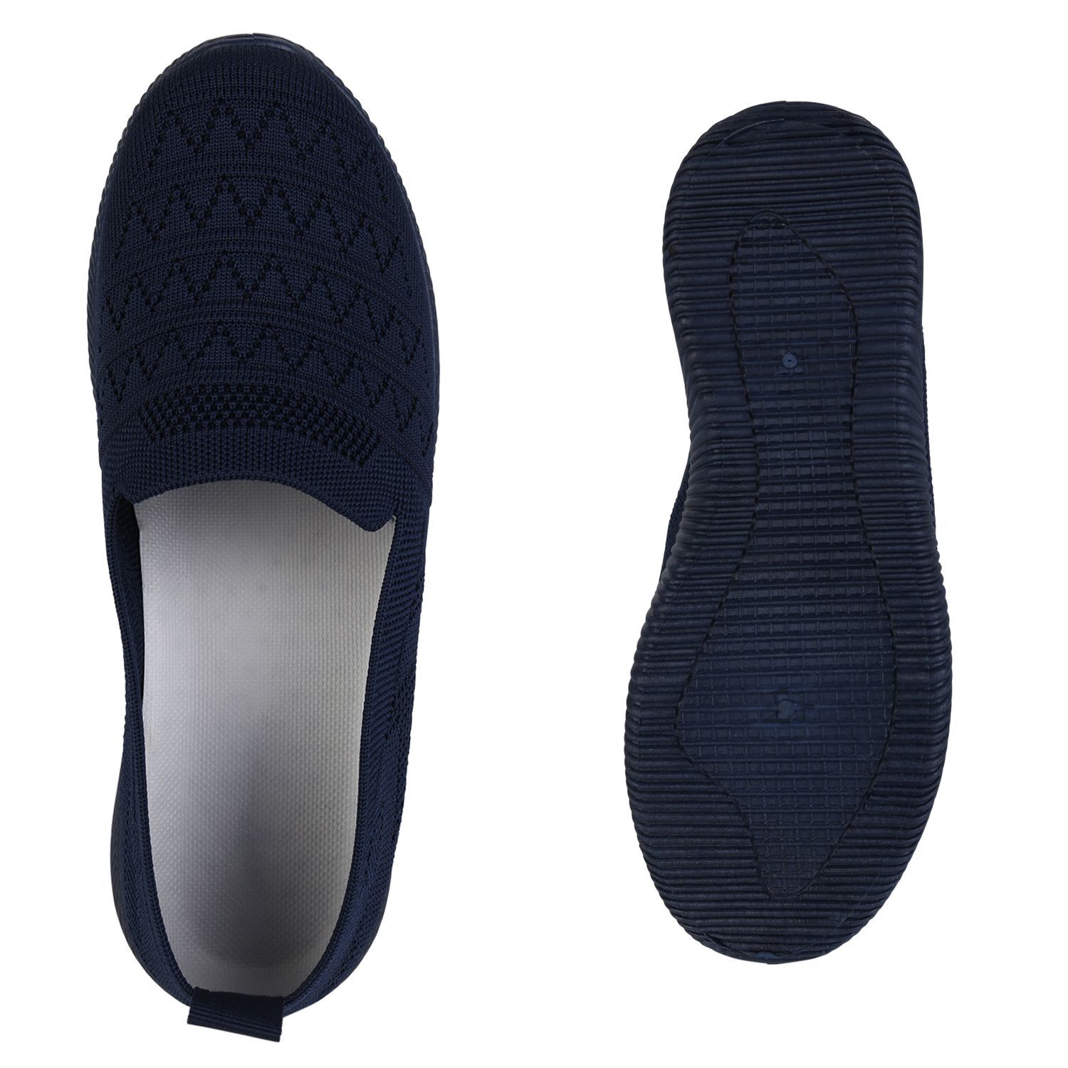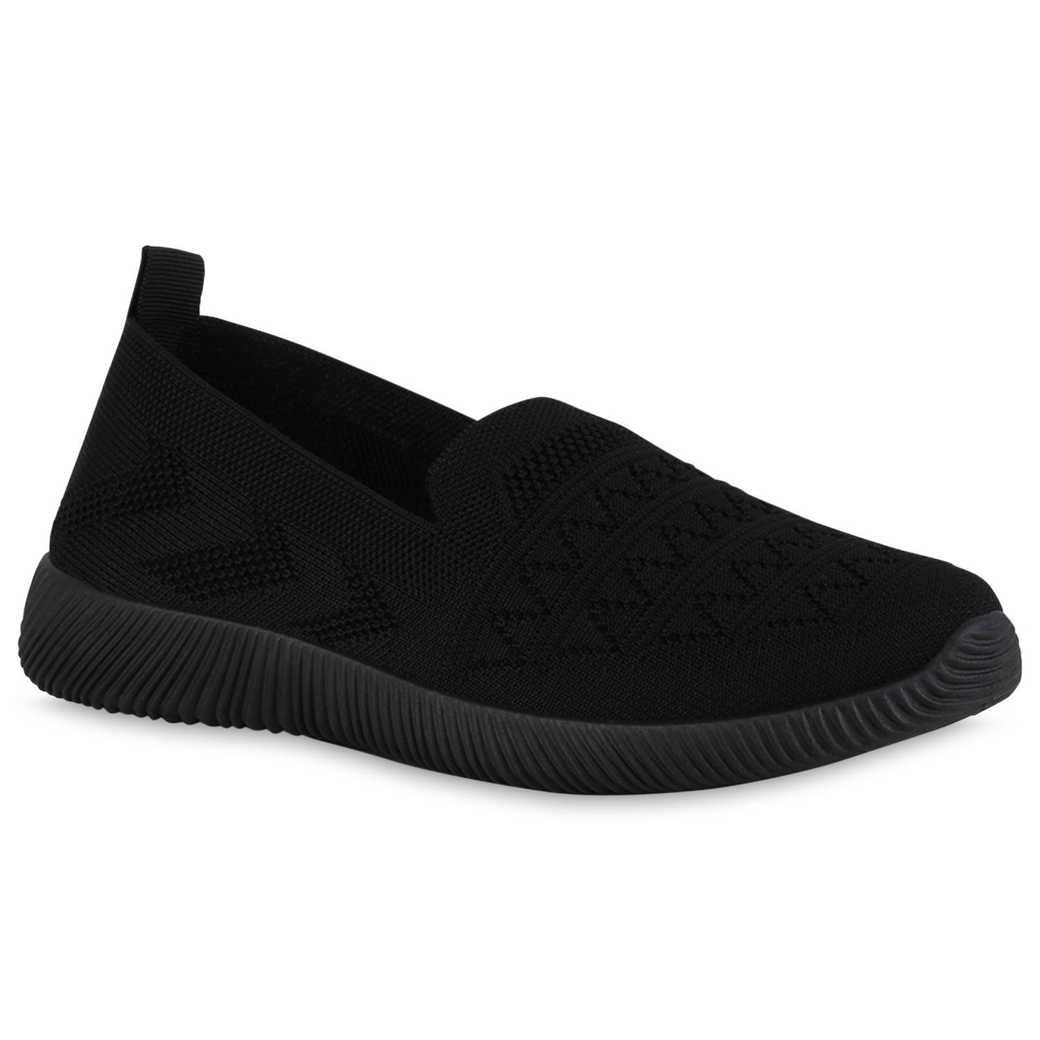 VAN HILL Damen Sportschuhe Slip Ons Sportliche Strick Profil-Sohle Schuhe 840201