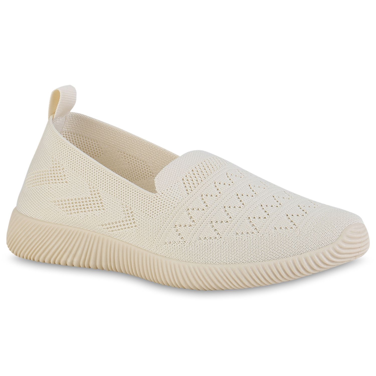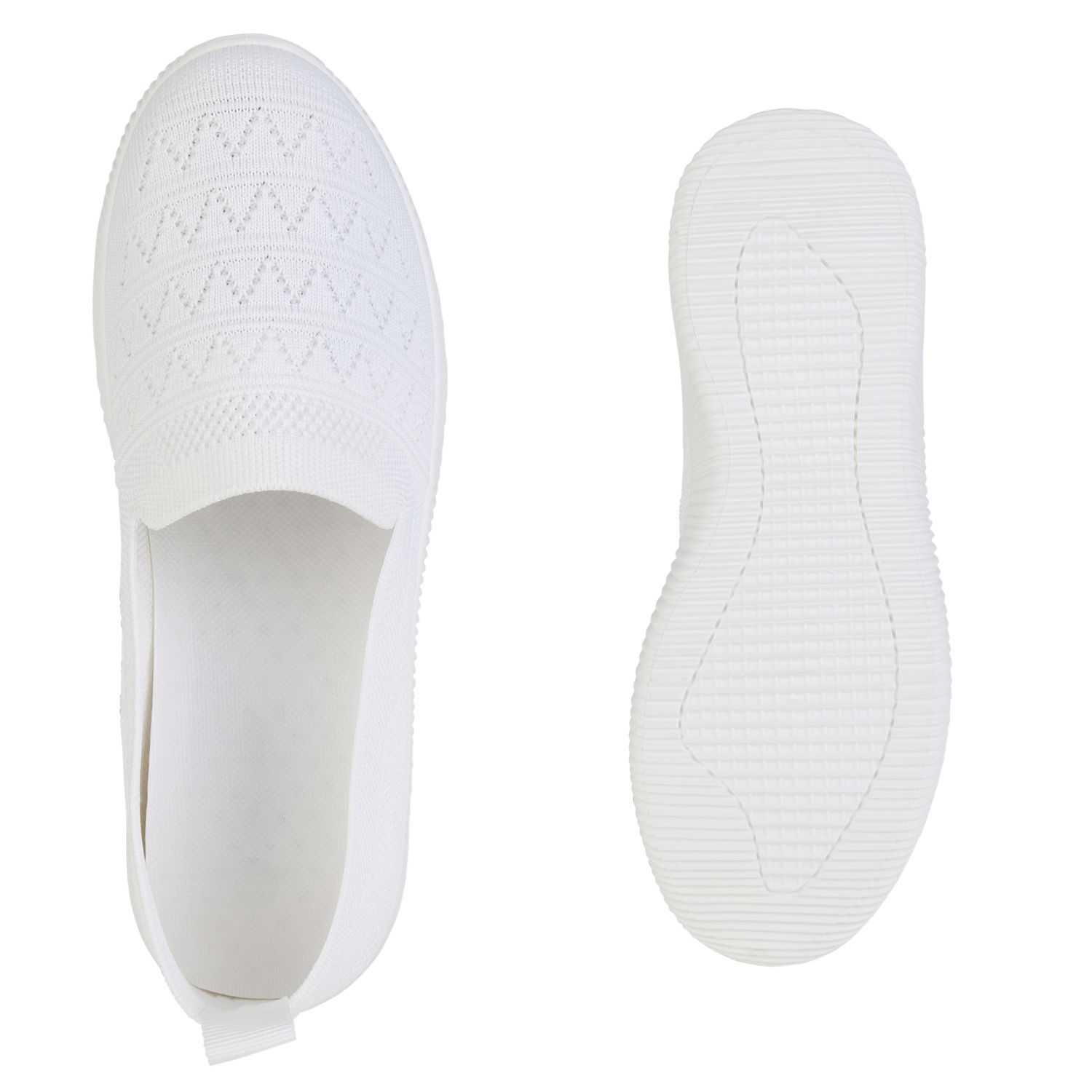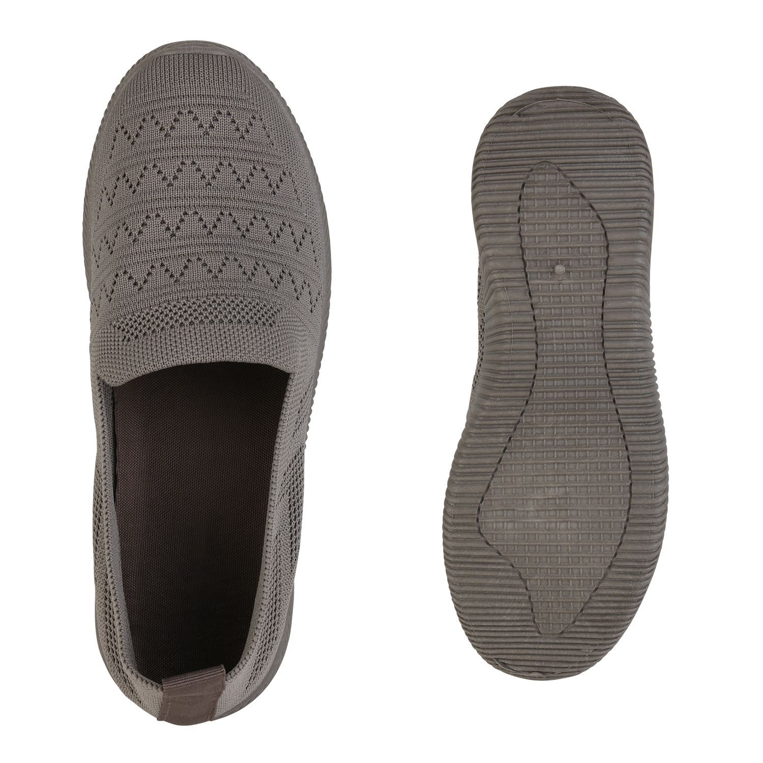 VAN HILL Damen Sportschuhe Slip Ons Sportliche Strick Profil-Sohle Schuhe 840201