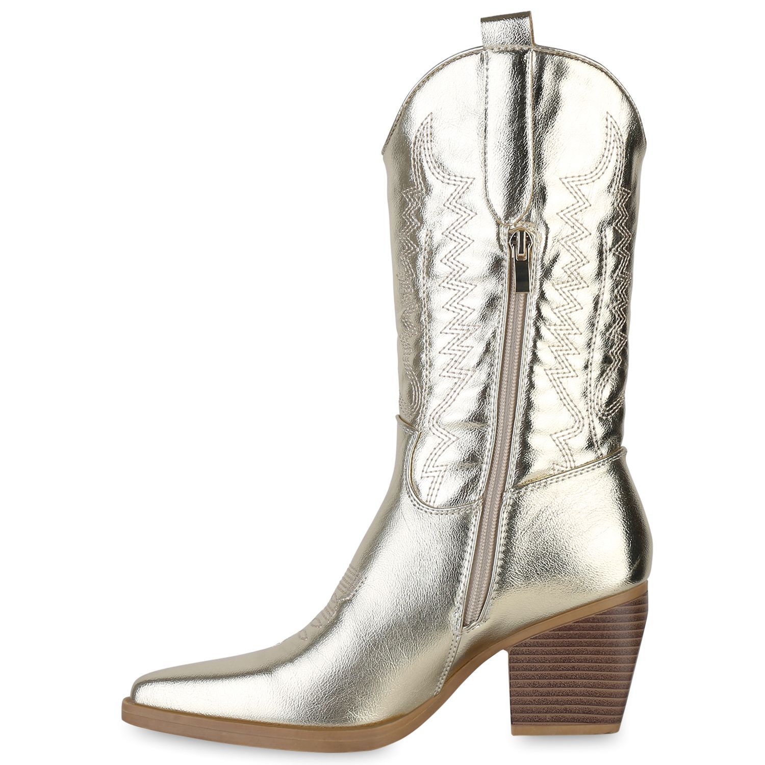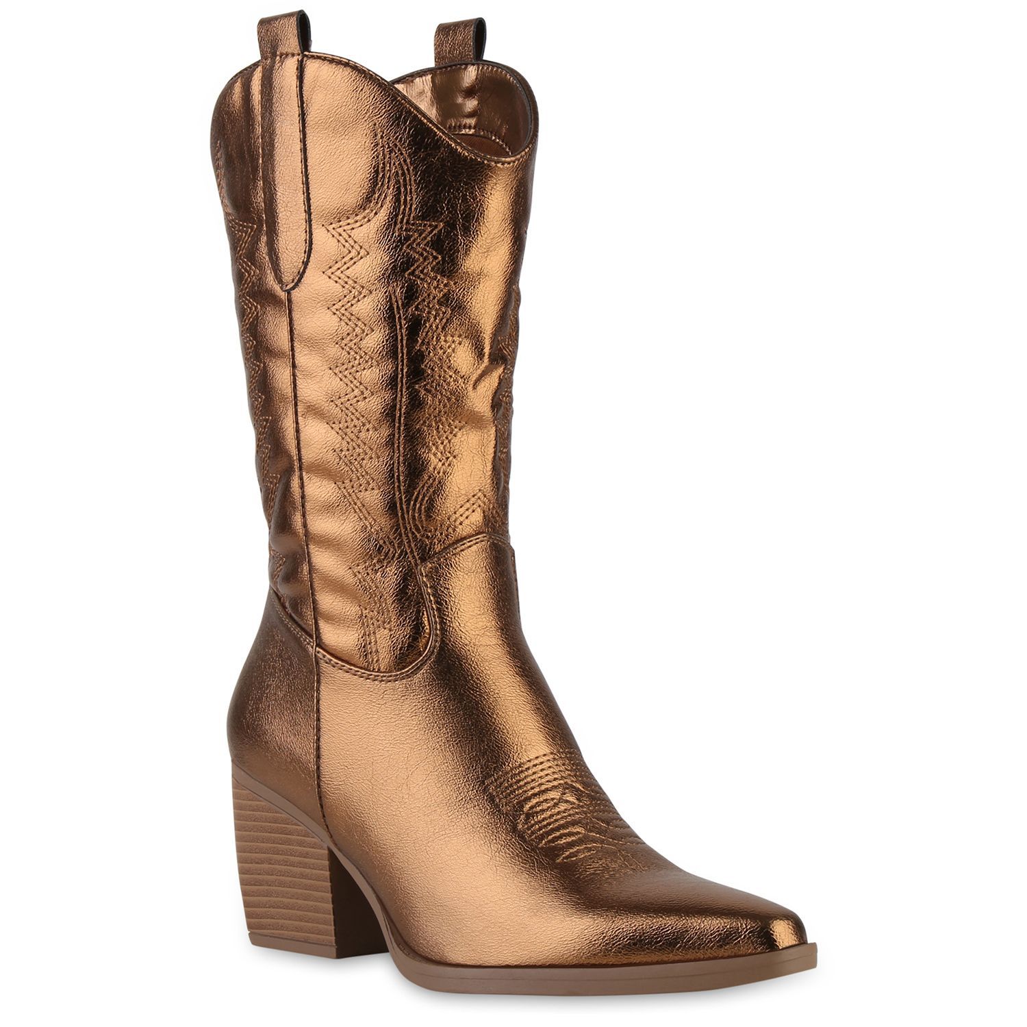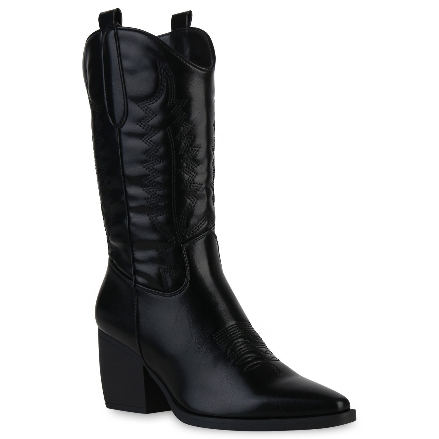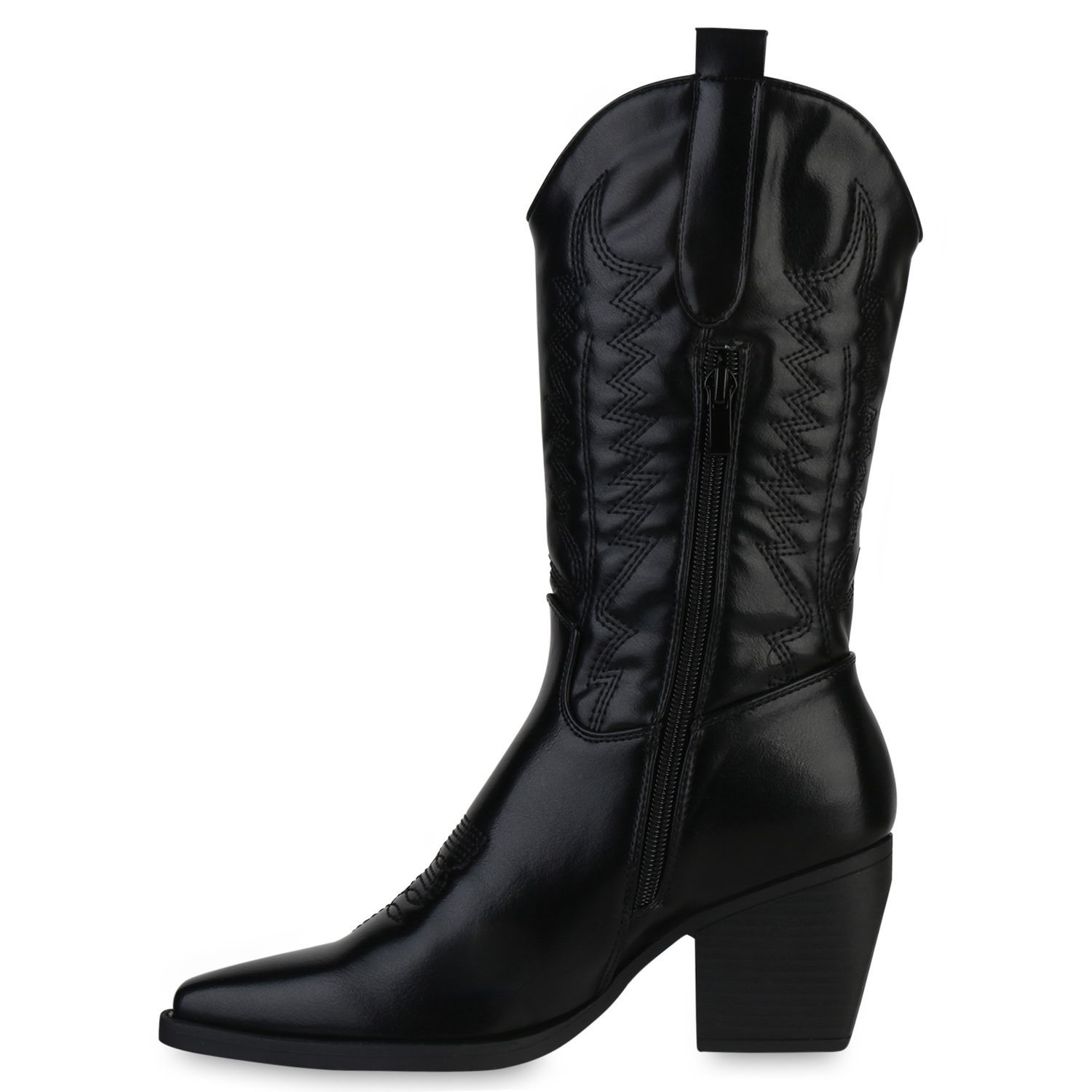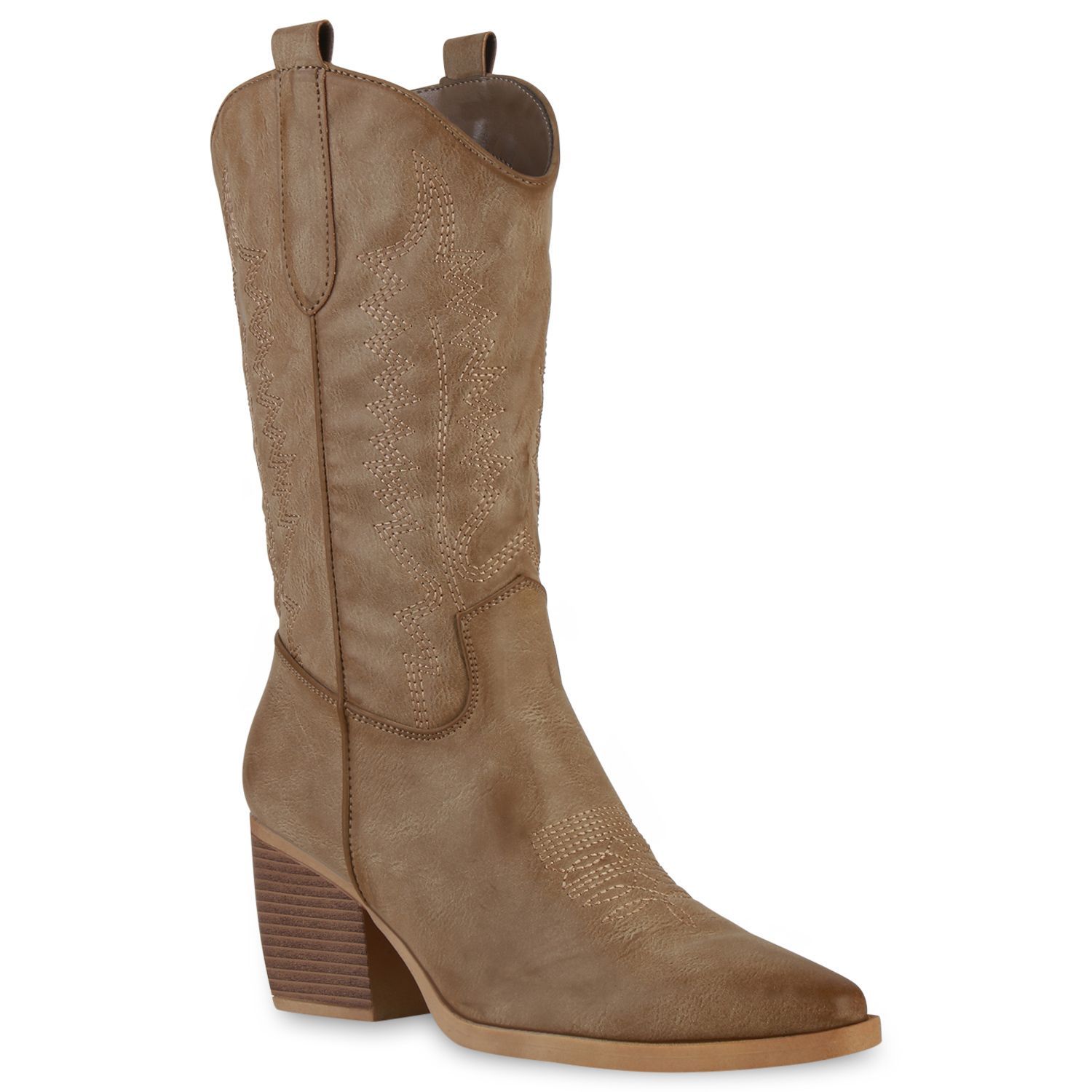 VAN HILL Damen Stiefel Cowboystiefel Holzoptikabsatz Stickereien Schuhe 838384