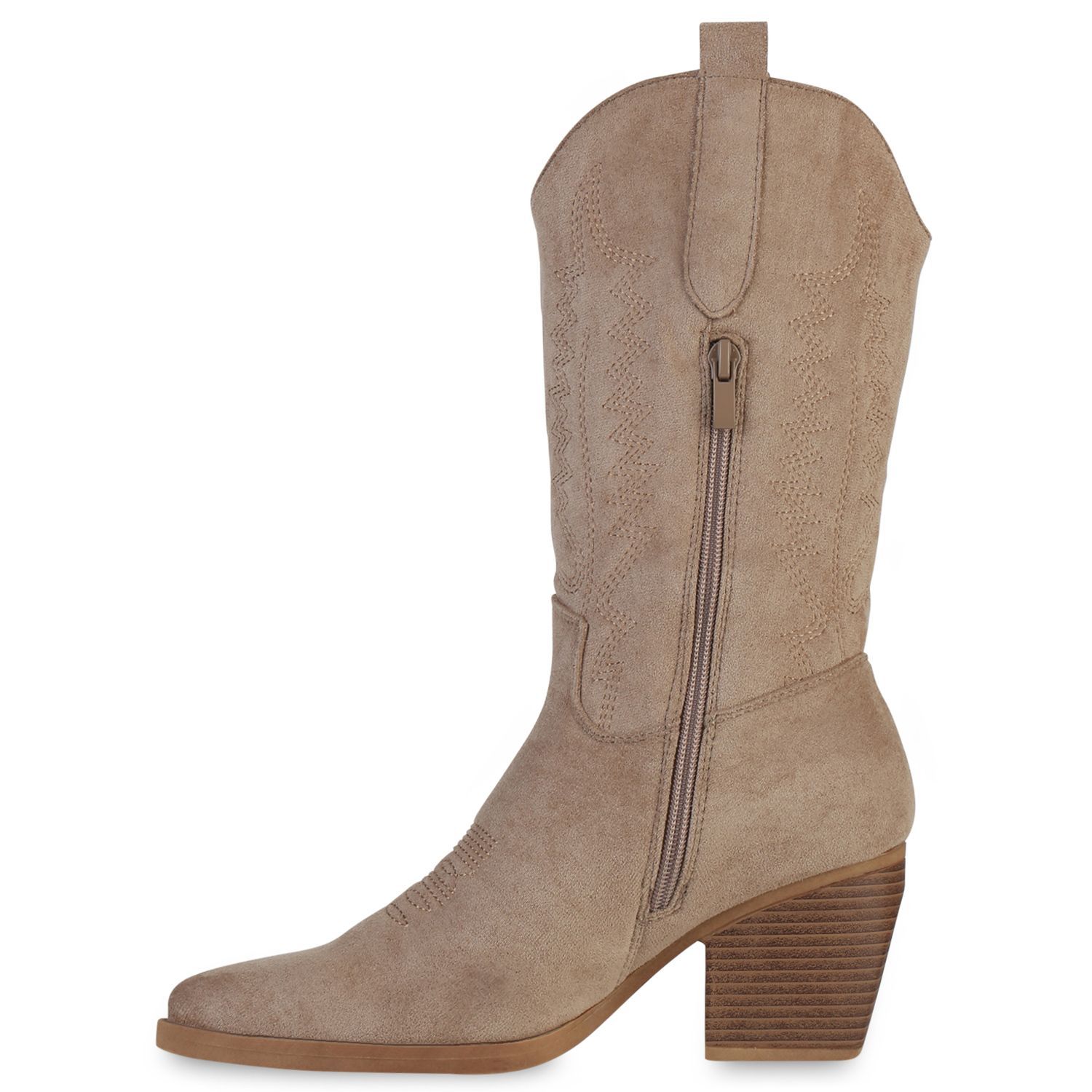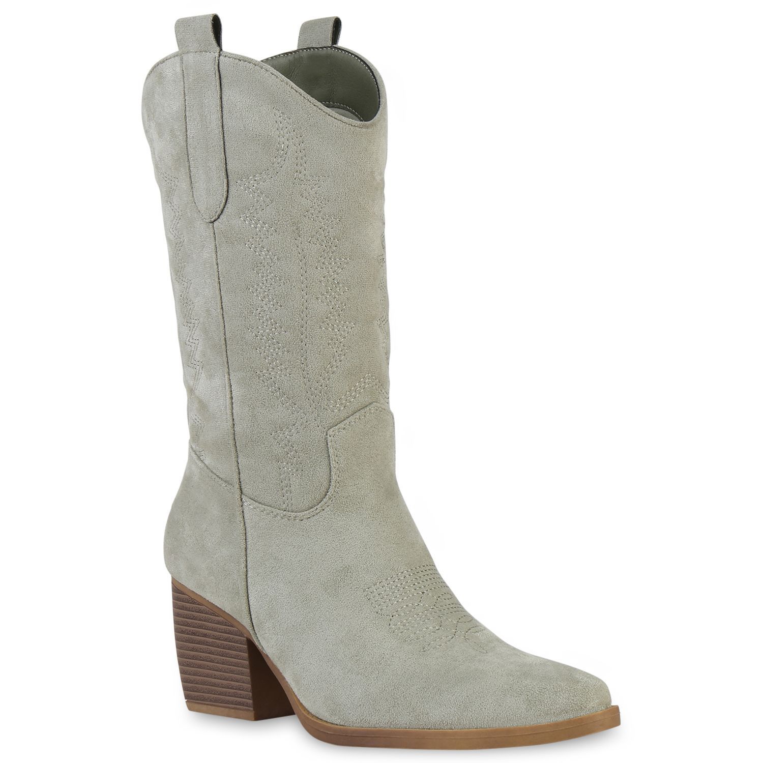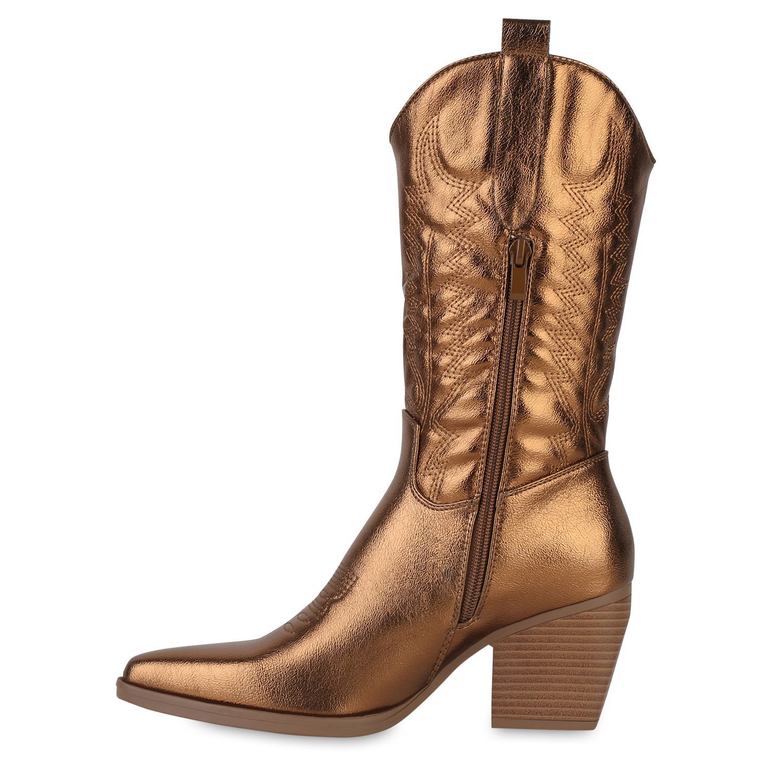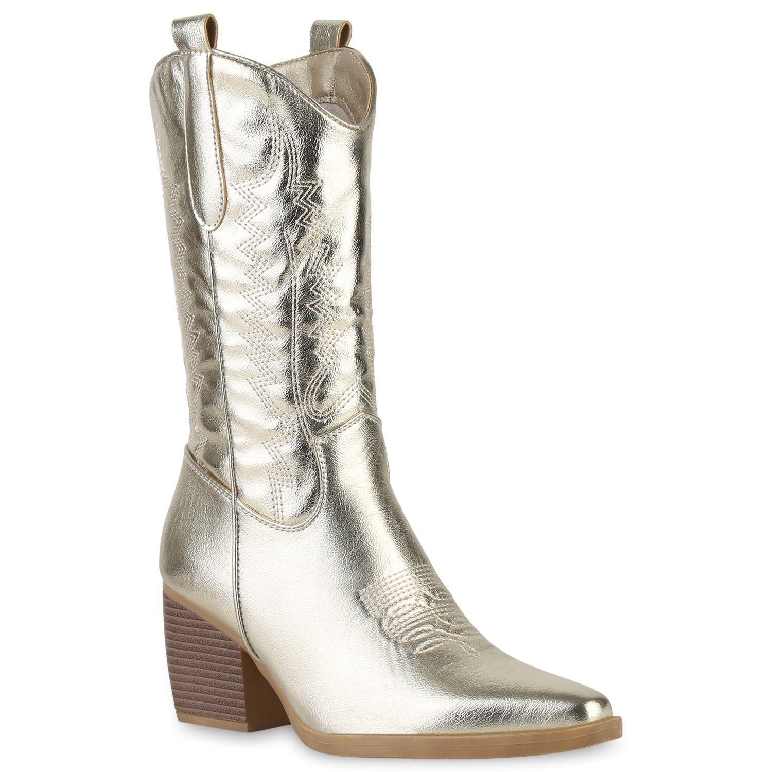 VAN HILL Damen Stiefel Cowboystiefel Holzoptikabsatz Stickereien Schuhe 838384
